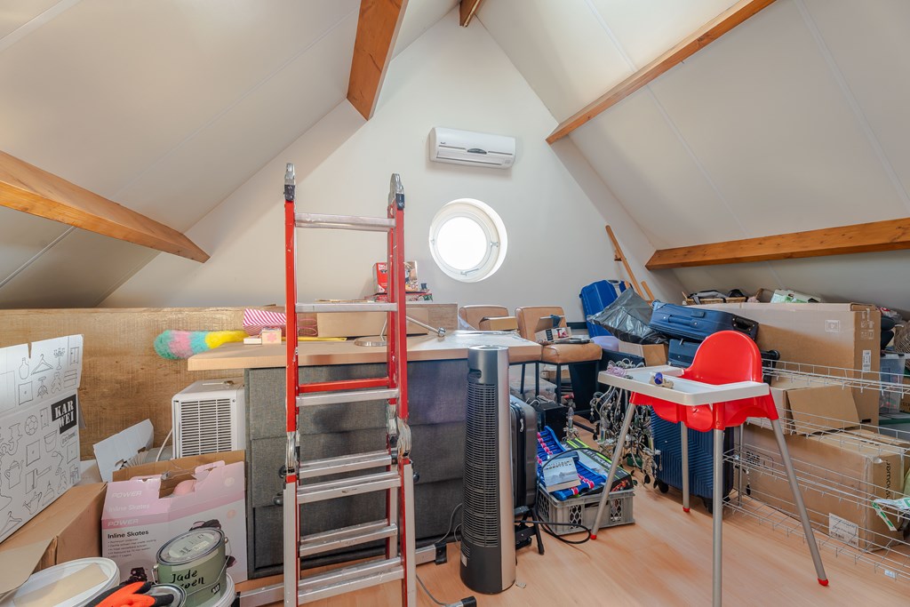 De zolderkamer is voorzien van een airco en biedt plaats aan de technische installatie van de woning. Zo is hier de opstelplaats van de cv-ketel, omvormer van de zonnepanelen, 3 thuisbatterijen, groepenkast en warmwaterboiler geplaatst. De zonnepanelen en thuisbatterijen zijn in december 2023 geplaatst.
