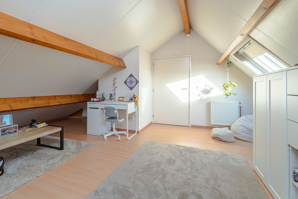 Slaapkamer 5 is gelegen aan de achterzijde van de woning. Deze kamer is gecompartimenteerd in twee ruimtes waardoor je als het ware een leef en slaapgedeelte hebt.