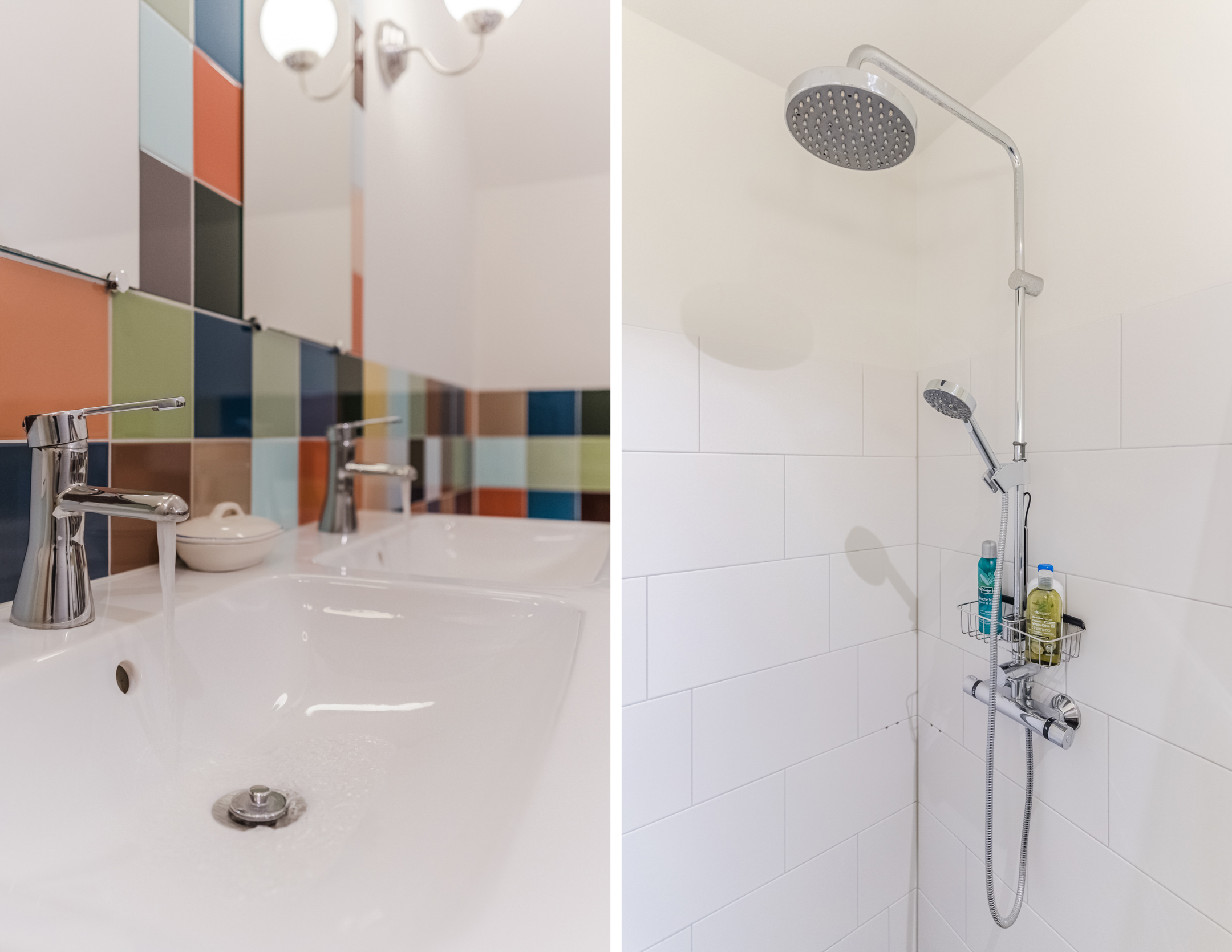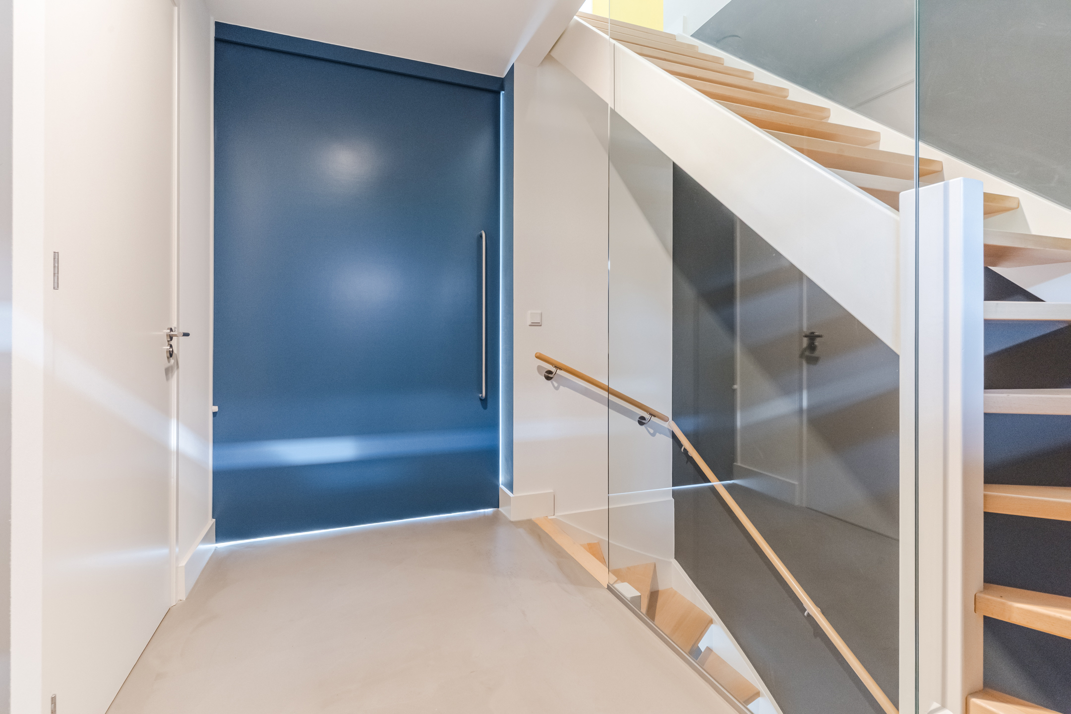 يضم القبو المجهز بالكامل غرفتي نوم وحماماً داخلياً، ولكل منهما منفذ مباشر إلى فناء خاص، بينما يقدم الطابق الأول غرفتي نوم إضافيتين وحماماً واسعاً وسقيفة. تمتاز جميع الأنحاء بمواد راقية مثل الخرسانة المصممة وإضاءة مدمجة ونظام تدفئة وتبريد تحت الأرضية مقسم إلى مناطق، مما يوفر مزيجاً من المتانة والراحة. تضمن ثمانية وعشرون لوحة شمسية، ومضخة حرارية جوفية، وزجاج عالي الكفاءة أداءً طاقياً حقيقياً فئة A++ وتوازناً دائماً للمناخ الداخلي وحياة آمنة للمستقبل.
