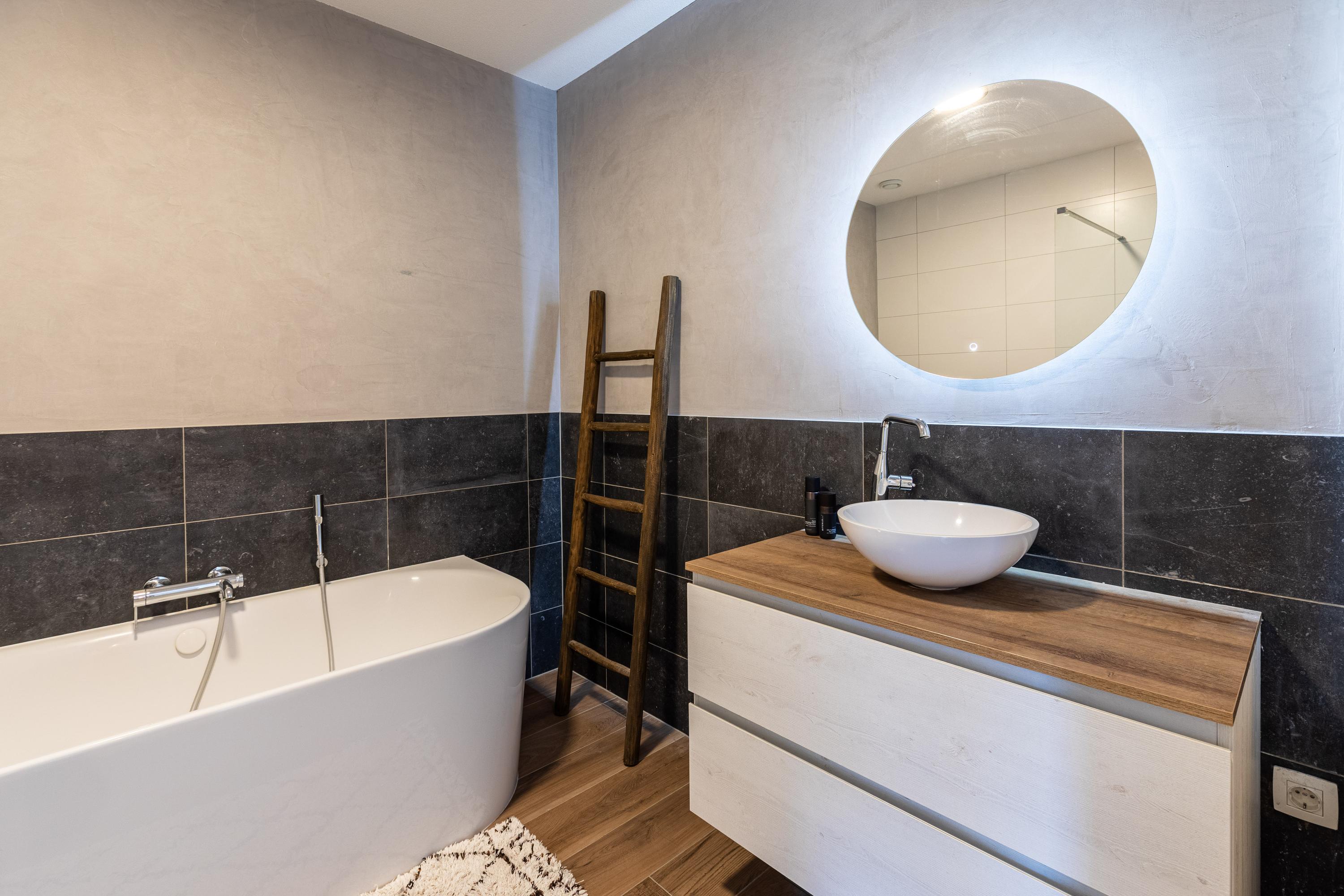 من خلال درج مضاء، يحتضن الطابق الأول أربع غرف نوم هادئة، كل واحدة تتمتع بأبواب مرتفعة وإضاءة متزنة. تقدم الحمّام المركزي دشًا دون عتبة وحوض استحمام وحوضين مزدوجين، مع مرحاض ثانٍ منفصل للراحة. يتيح الطابق الثاني مرونة، ويضم غرفة نوم خامسة واسعة وغرفة سادسة متعددة الاستخدامات، مُجهزة حاليًا للغسيل والتخزين، ولكنها مهيأة لإضافة حمام ثانٍ عند الحاجة. تكتمل العناية بالعزل بإطارات نوافذ بلاستيكية بزجاج HR++، مصحوبة بتهوية متوازنة في جميع الأنحاء.