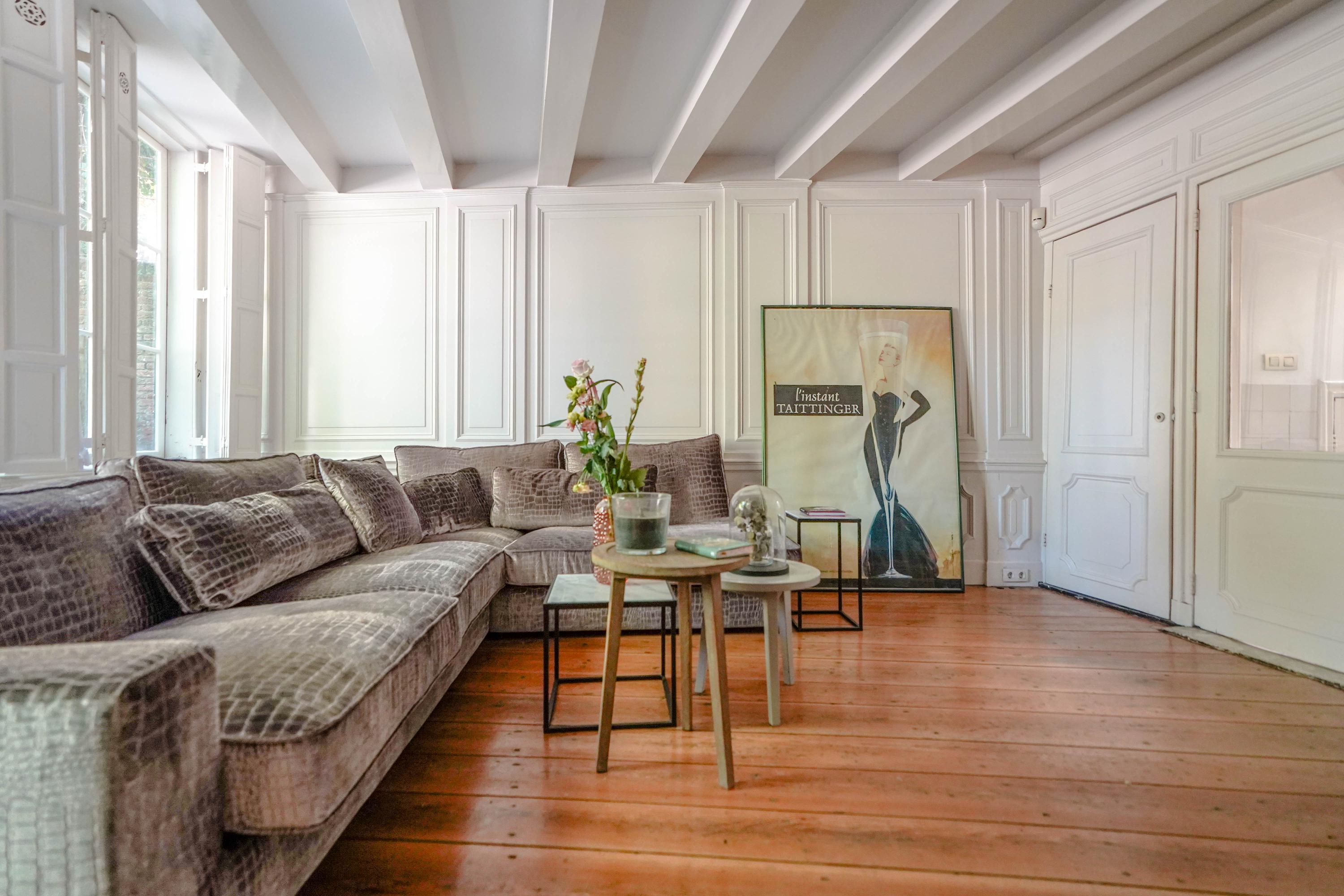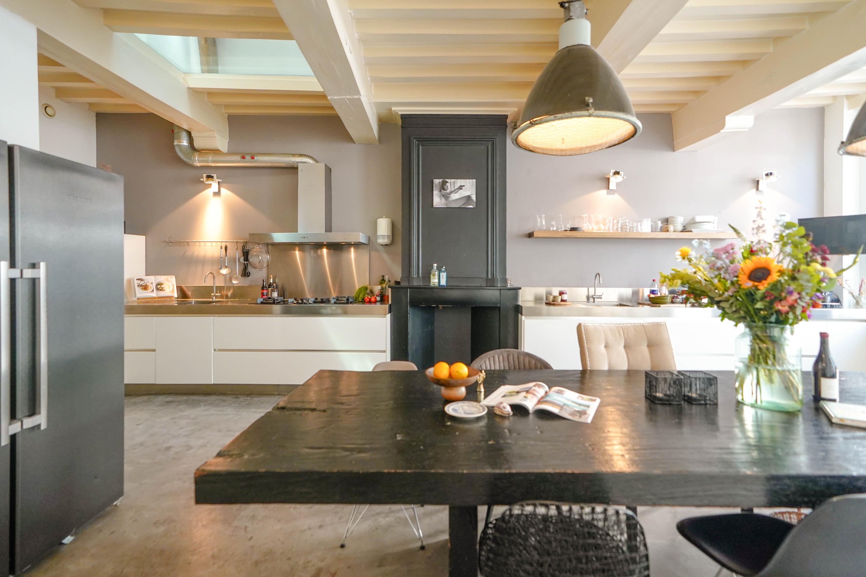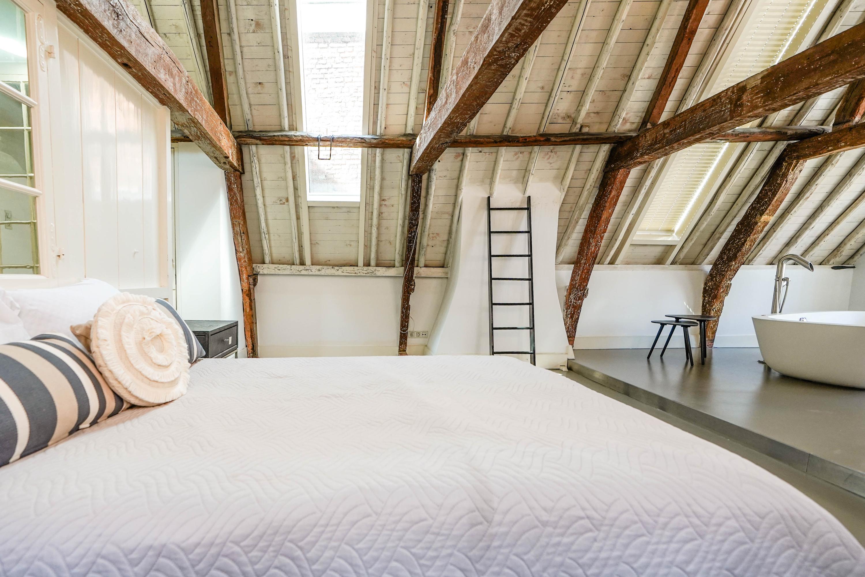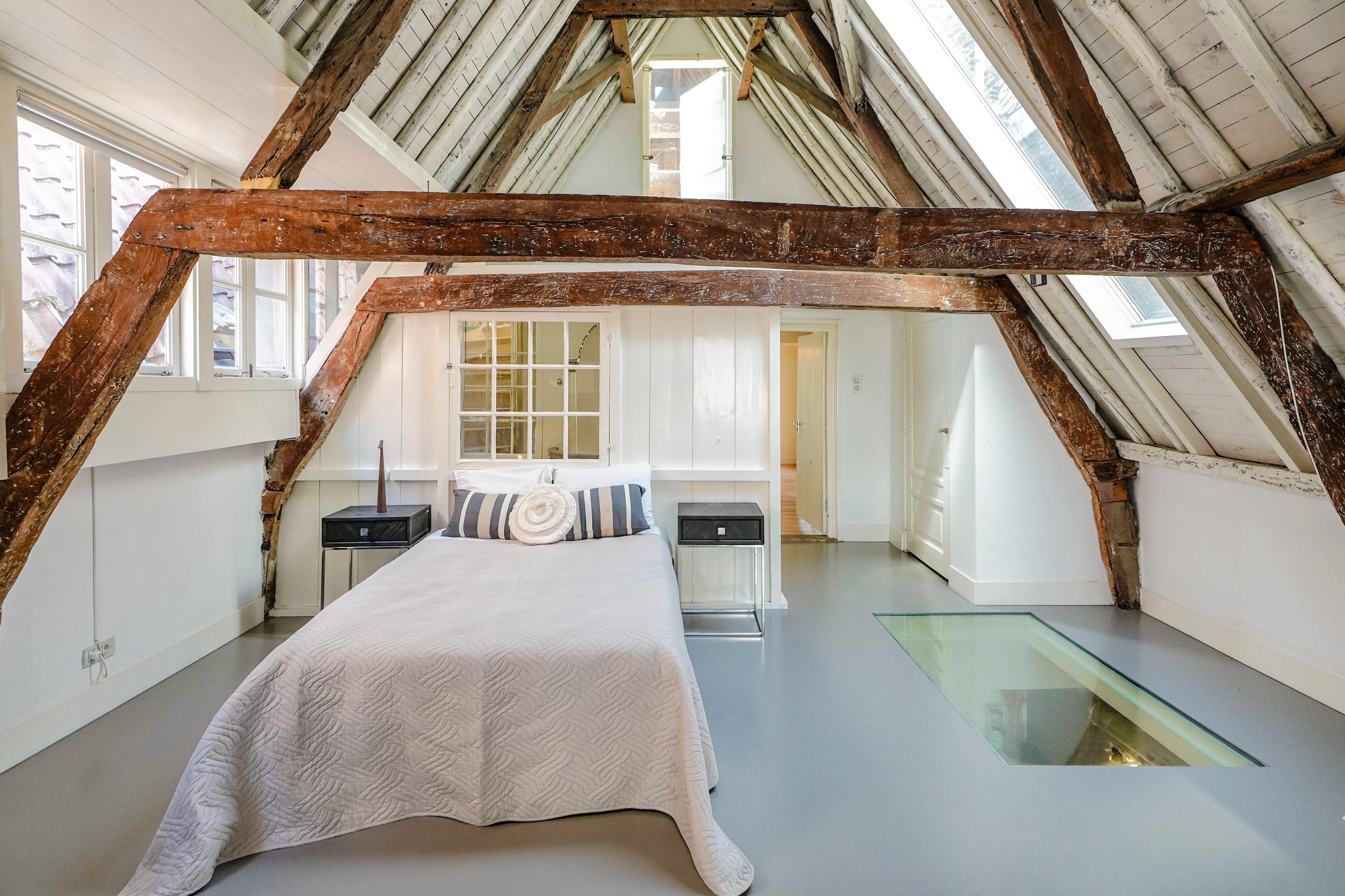 تضم الطابق الأول غرفة معيشة بمساحة 70 م² بإطلالة على الراين وساحة البلدية (Stadhuisplein)، بالإضافة إلى مطبخ/غرفة طعام لافتة للنظر بمساحة 50 م²، مع مساحة عمل واسعة وطاولة تتسع لاثني عشر مقعداً، مما يوفر أبعاداً ملائمة للقاءات والراحة اليومية. وتقع غرف النوم في الطوابق العلوية، وتضم سبع غرف وثلاثة حمامات، تتميز جميعها بنوافذ كبيرة وخزائن مدمجة ومساحات لتخزين المفروشات، بما في ذلك جناح رئيسي مع حمام داخلي تحت أسقف درامية.