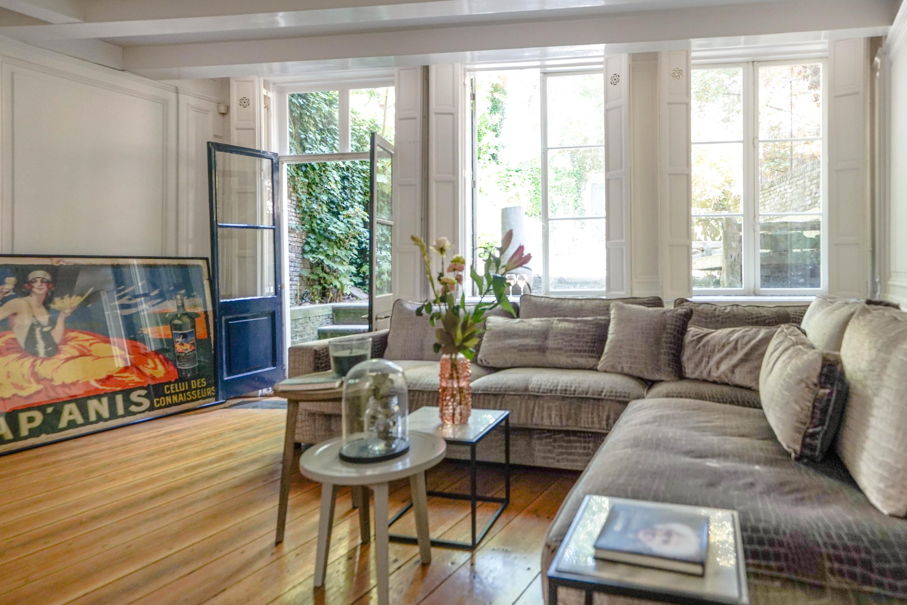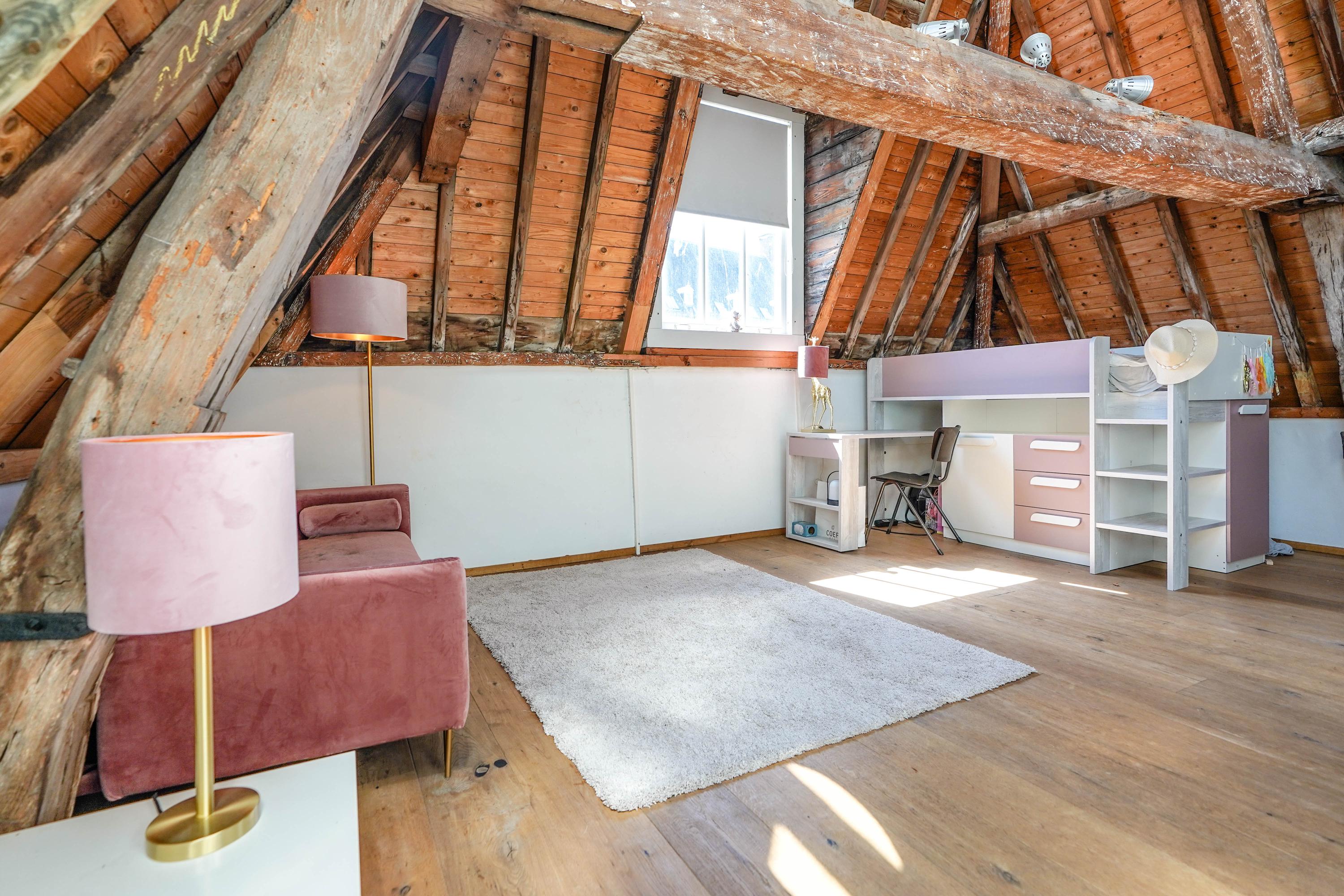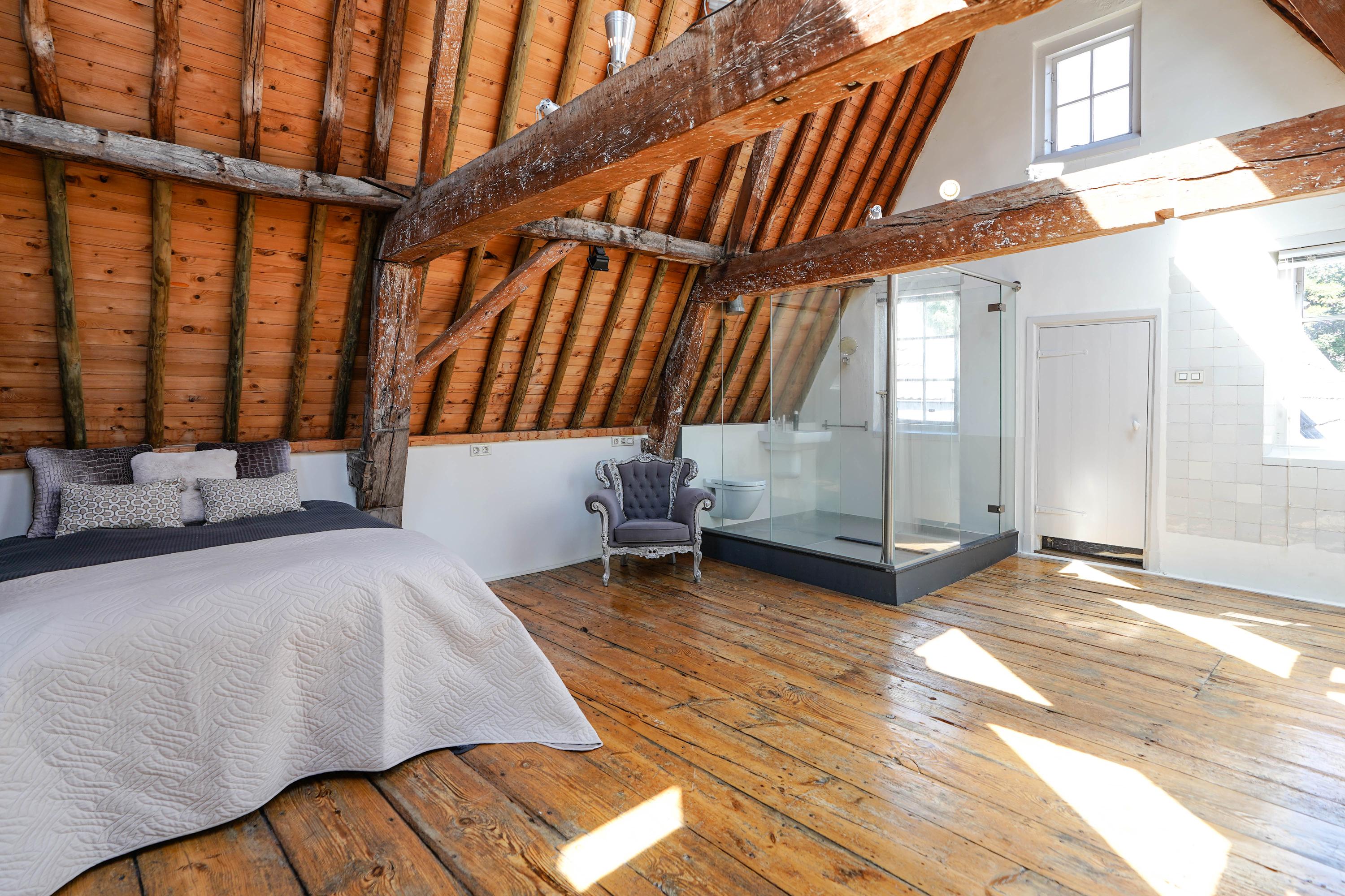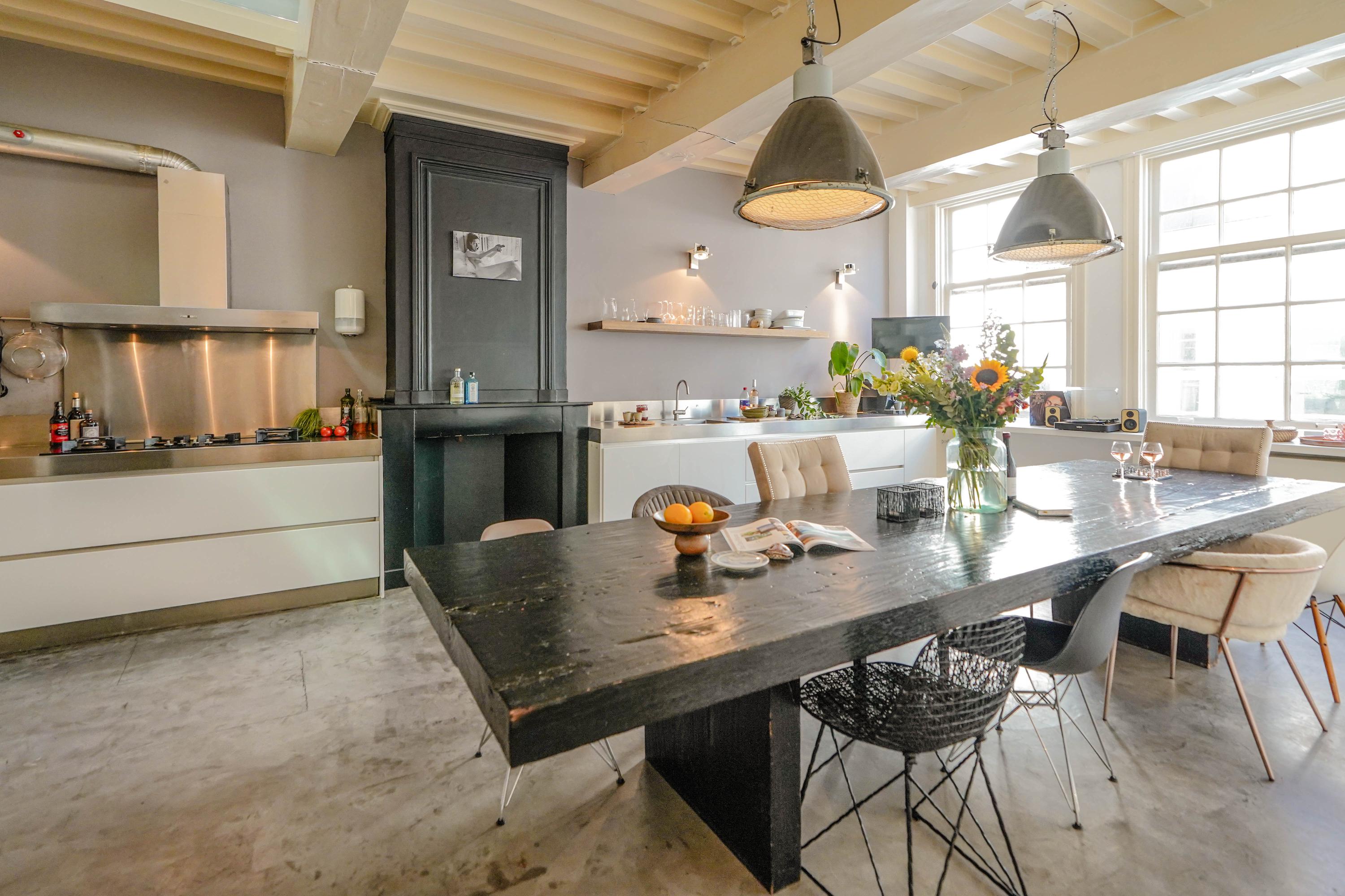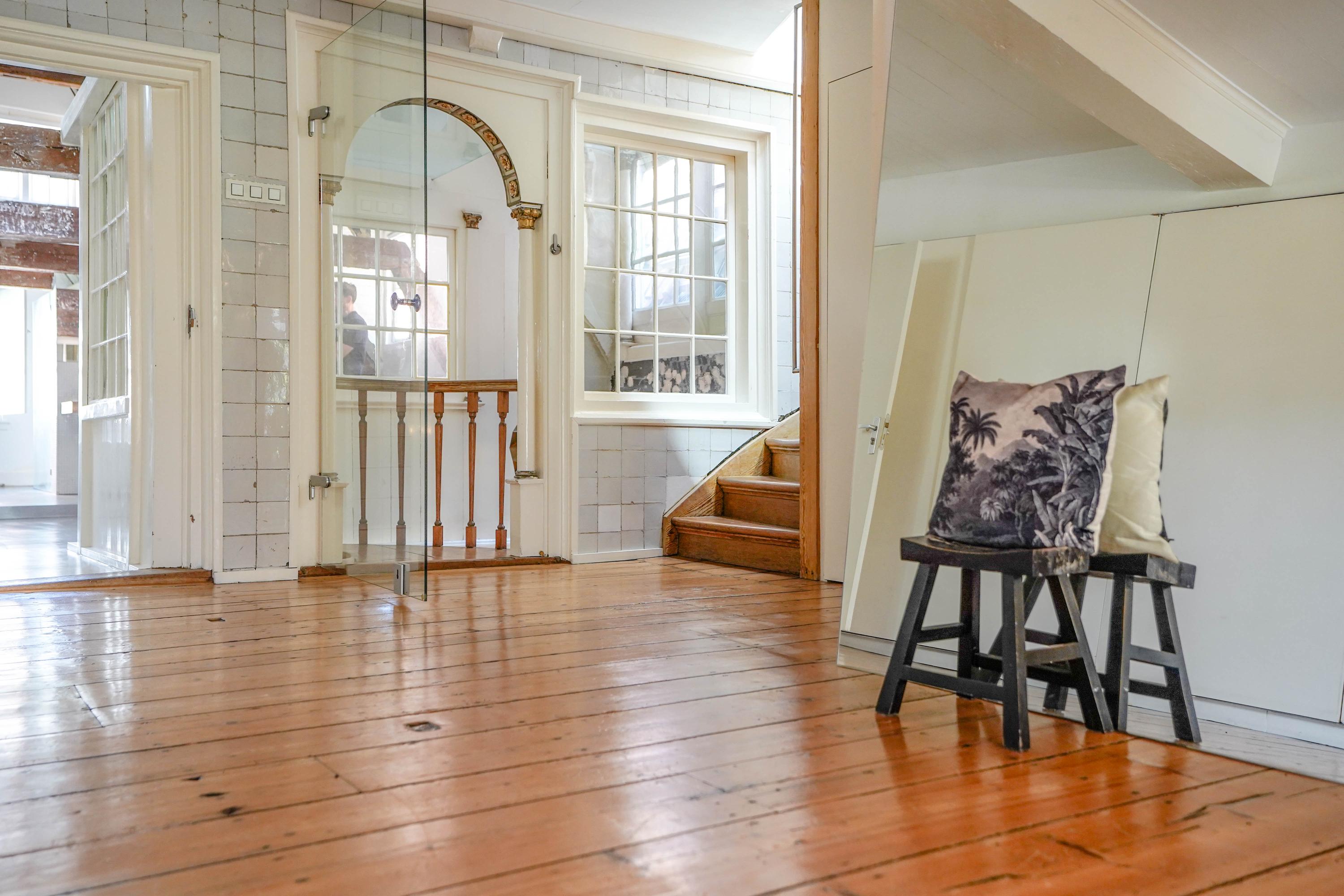 تضم الطابق الأول غرفة معيشة بمساحة 70 م² بإطلالة على الراين وساحة البلدية (Stadhuisplein)، بالإضافة إلى مطبخ/غرفة طعام لافتة للنظر بمساحة 50 م²، مع مساحة عمل واسعة وطاولة تتسع لاثني عشر مقعداً، مما يوفر أبعاداً ملائمة للقاءات والراحة اليومية. وتقع غرف النوم في الطوابق العلوية، وتضم سبع غرف وثلاثة حمامات، تتميز جميعها بنوافذ كبيرة وخزائن مدمجة ومساحات لتخزين المفروشات، بما في ذلك جناح رئيسي مع حمام داخلي تحت أسقف درامية.