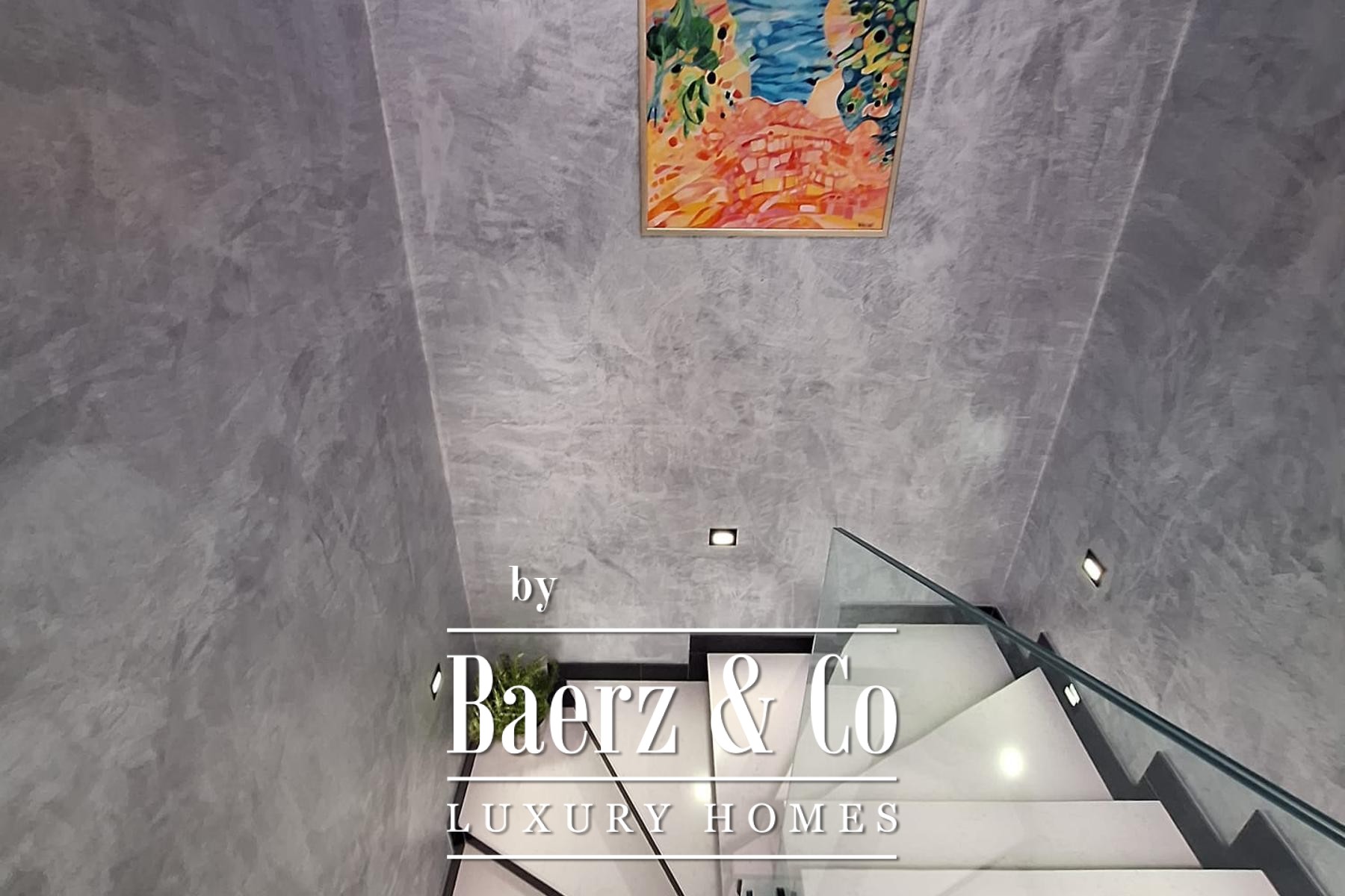 في الطابق العلوي، تستقل أربع غرف نوم كل منها بمساحتها الخاصة، وجميعها مزودة بحمامات داخلية، مما يحقق التوازن بين الاستقلالية ودفء العائلة. في الخارج، يمتد تراس واسع ليؤطر حوض السباحة ويوسع مساحة المعيشة باتجاه البحر، داعيًا إلى قضاء فترات بعد الظهر الطويلة في التأمل الهادئ أو اللقاءات الودية. تجمع هذه الفيلا المعروضة للبيع في نوفي فينودولسكي بين وضوح التصميم وموقع ساحلي مُحسد عليه.