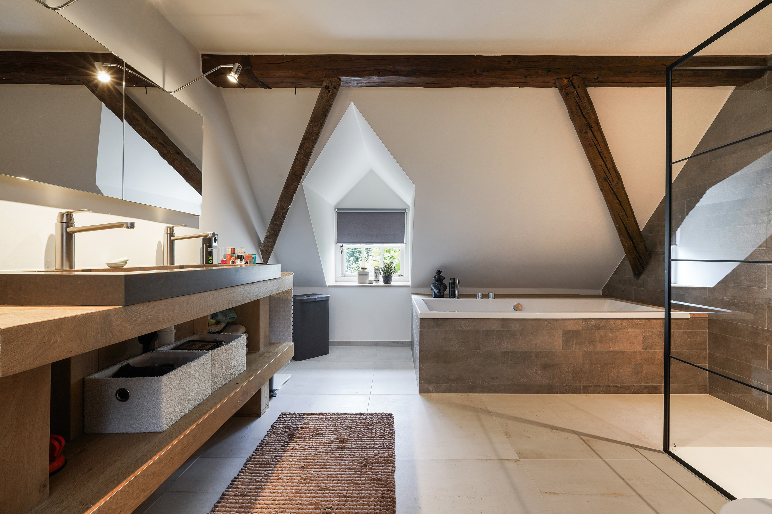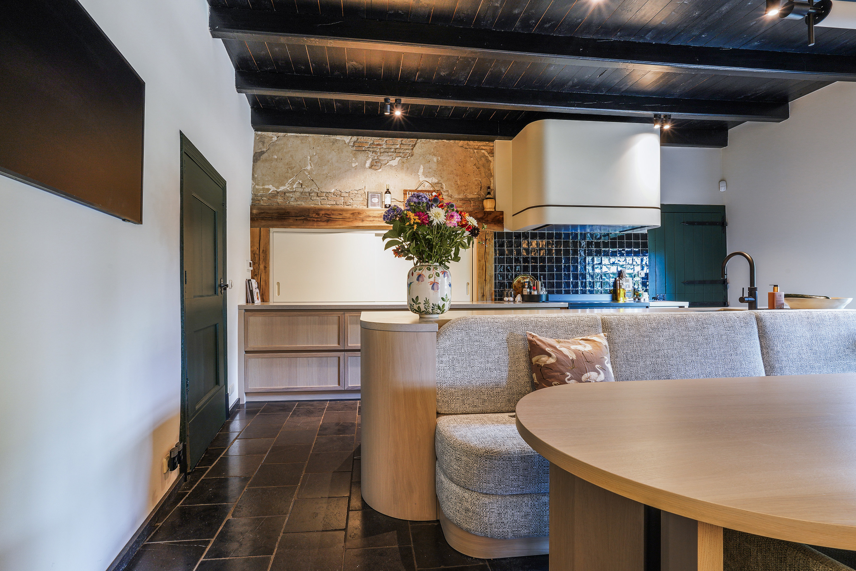 يحتضن المنزل التراثي في Sprang-Capelle التاريخ والتجديد المدروس، حيث يوفر مساحة معيشة نادرة تبلغ 420 م² ضمن قطعة أرض تبلغ مساحتها 658 م². يتميز هذا العقار الوطني المسجل بأصوله الاستثنائية، إذ تعكس عوارض الخشب المكشوفة والأسقف المقببة روح القرن السابع عشر، مما يمنح إحساساً رائعاً بالفخامة عند الوصول. تتوسط غرفة المعيشة الرئيسية التي تبلغ مساحتها نحو 90 م² مدفأة بيليه وتغمرها النوافذ العالية بالنور، في حين تخفف الجدران الجصية البيضاء وأرضيات الخشب من حدة المساحات. ويتجسد قلب المنزل في مطبخ حسب الطلب أنجز عام 2024، مع خزائن مصممة خصيصاً من Ecker Interieurbouw ومساحة واسعة للطعام والتجمع والاستمتاع بهدوء الحديقة.