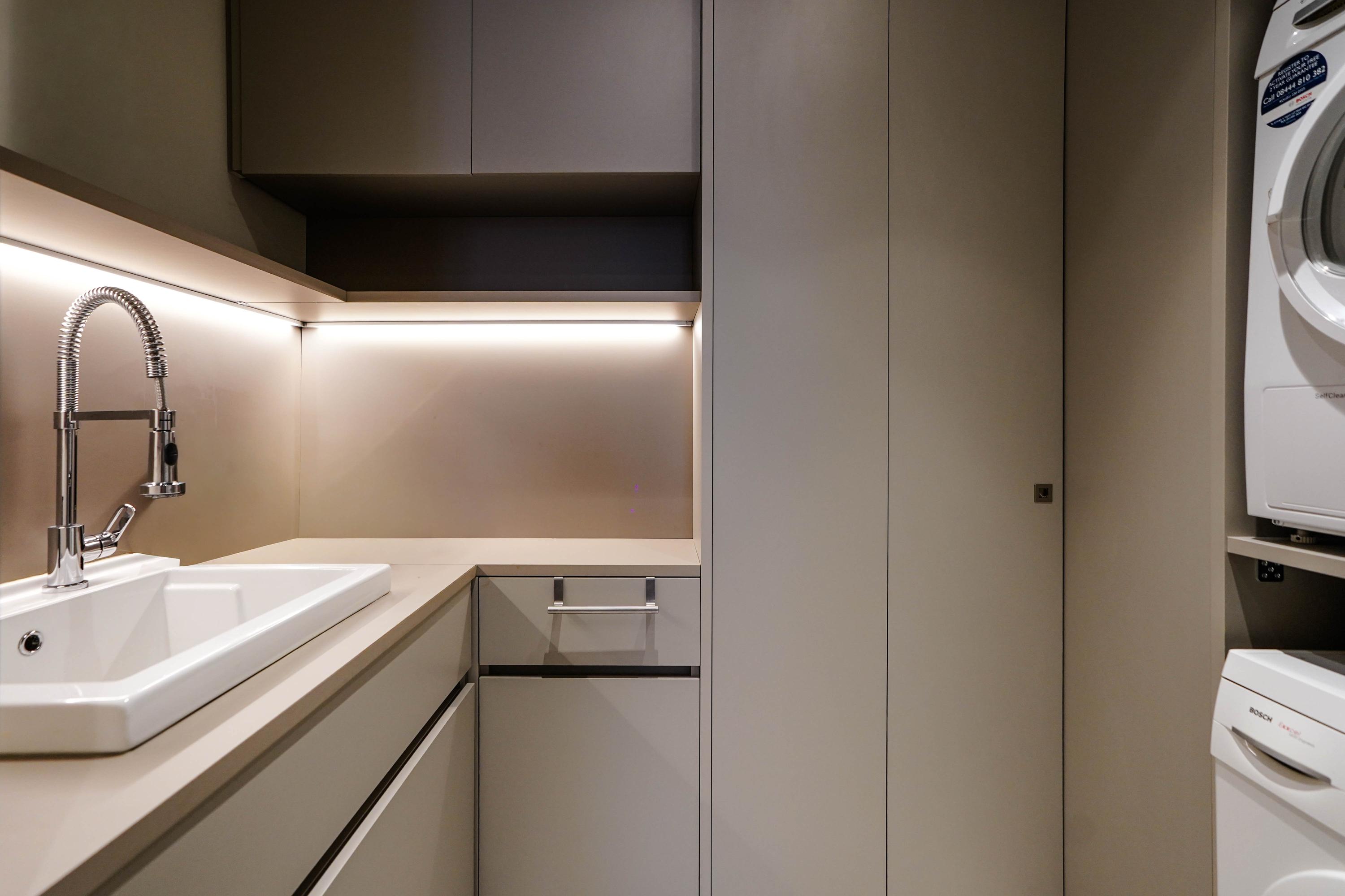 The luxurious kitchen truly forms the heart of the home and is fitted with a large island, high-end built-in appliances and ample storage space. Adjacent is a practical utility room.