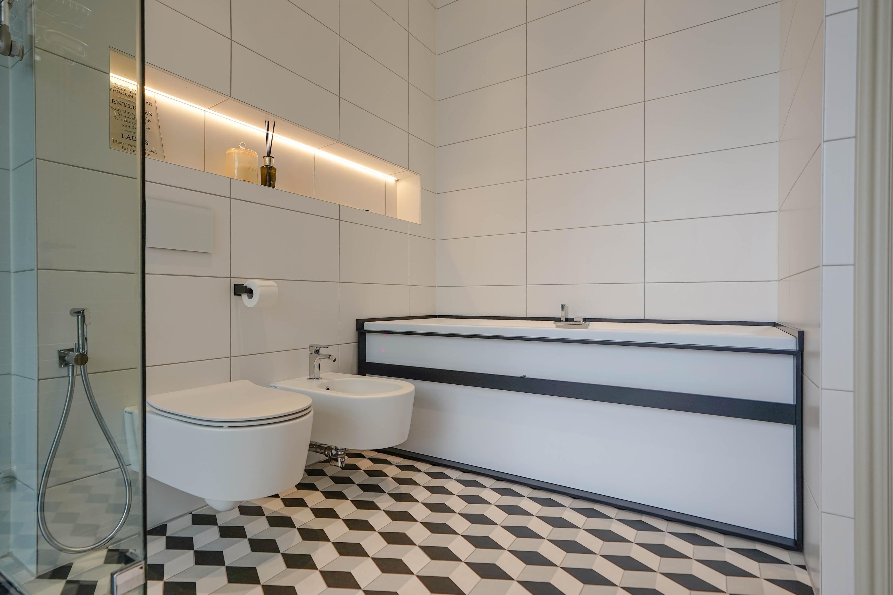 This floor also features two bathrooms, both modern and finished to a high standard. The main bathroom is generously sized and fitted with luxury sanitary ware and a sleek, stylish design. A second balcony is also located on this floor.