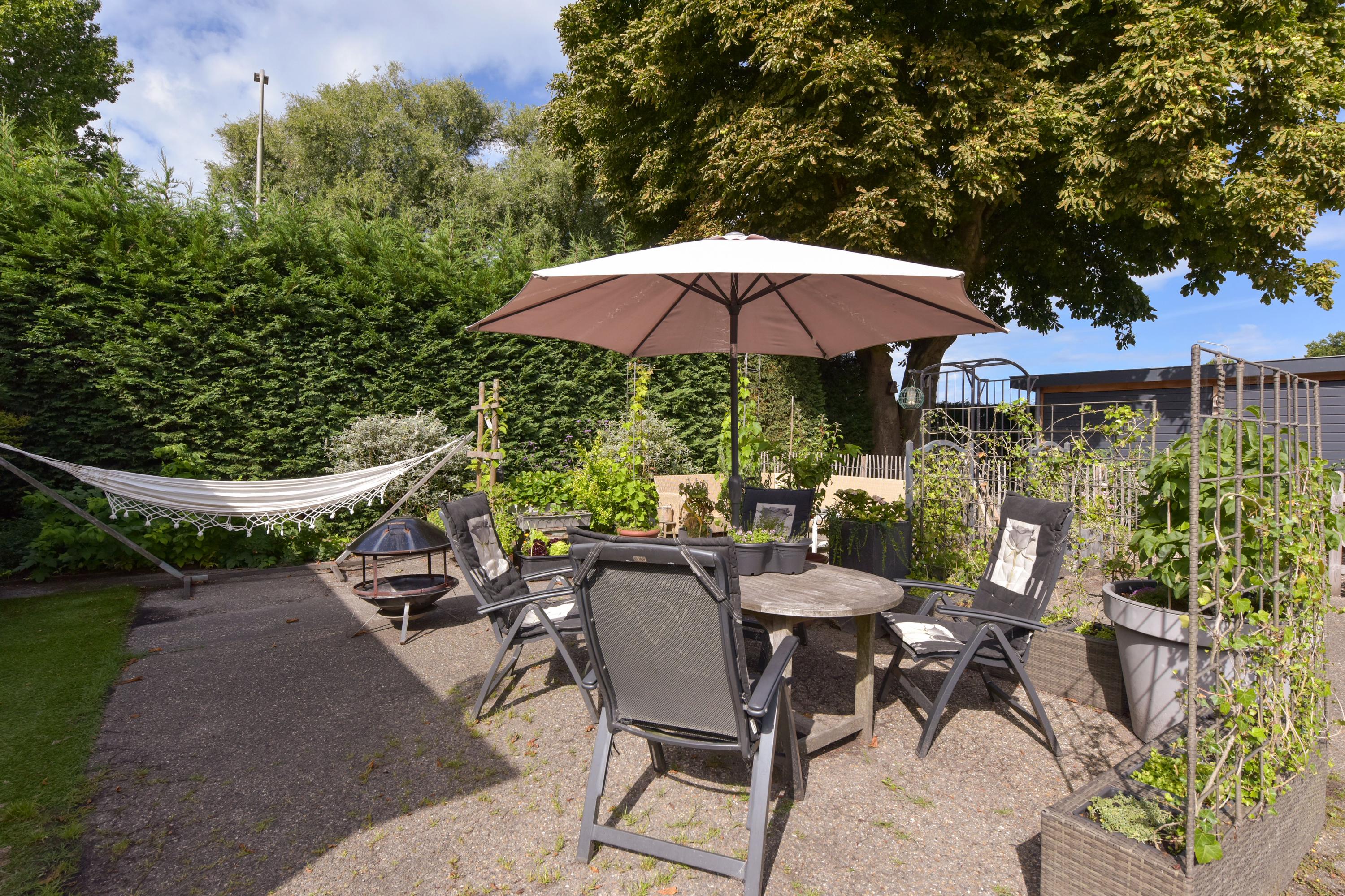 Whether you enjoy gardening, outdoor cooking, relaxing in the shade or sunbathing on the terrace — this garden has it all. Thanks to the wraparound layout, you can follow the sun or retreat into the shade as you please. A thoughtfully designed outdoor space that perfectly matches the character and quality of the home.