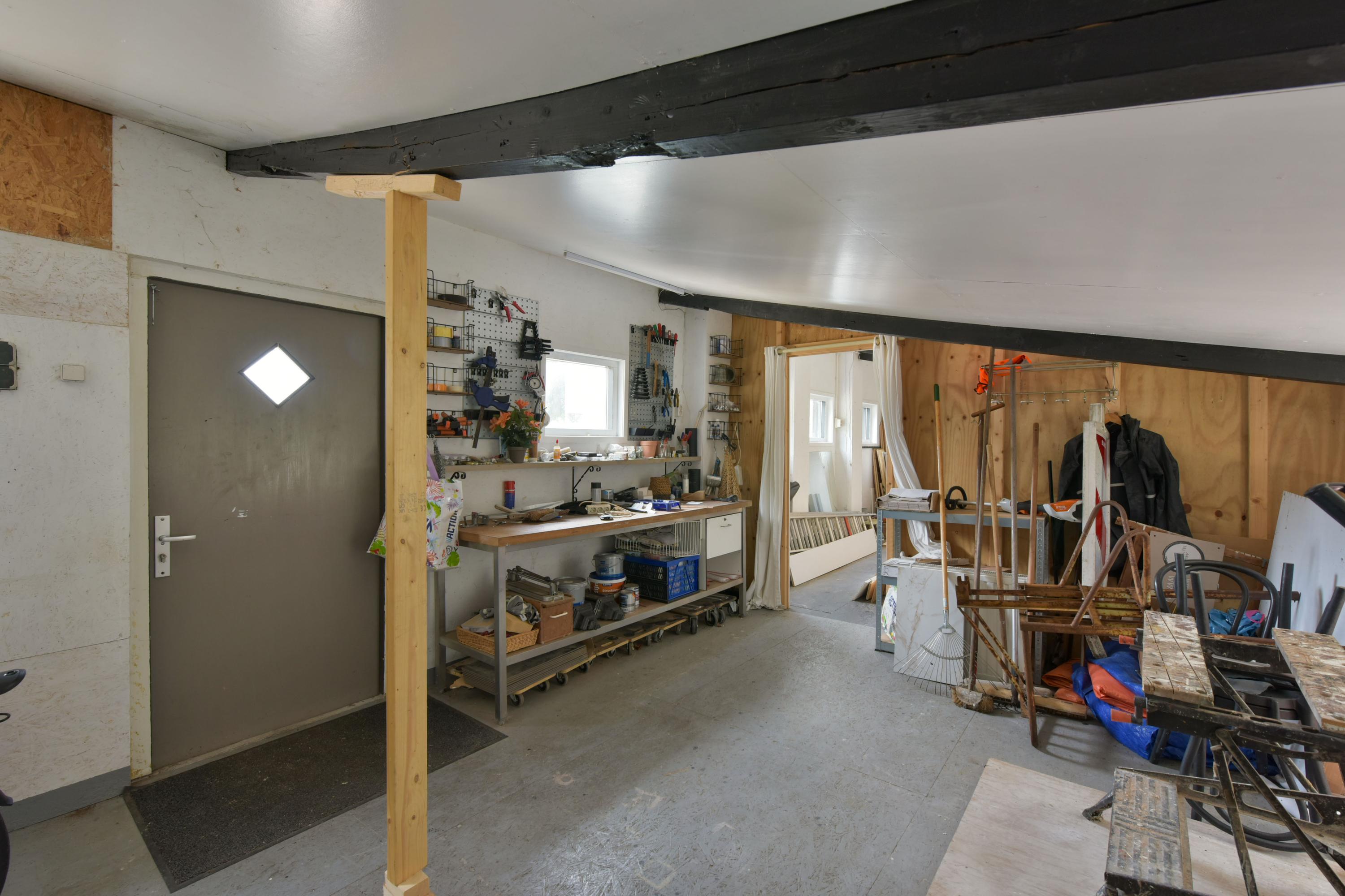 A doorway in the studio provides direct access to the former cattle shed, now used as a workshop. The combination of studio and workshop makes this building perfect for creatives, makers or entrepreneurs wanting to combine living and working in one location. Converting it into an extra living unit — for example, a B&B or au pair quarters — is also possible.