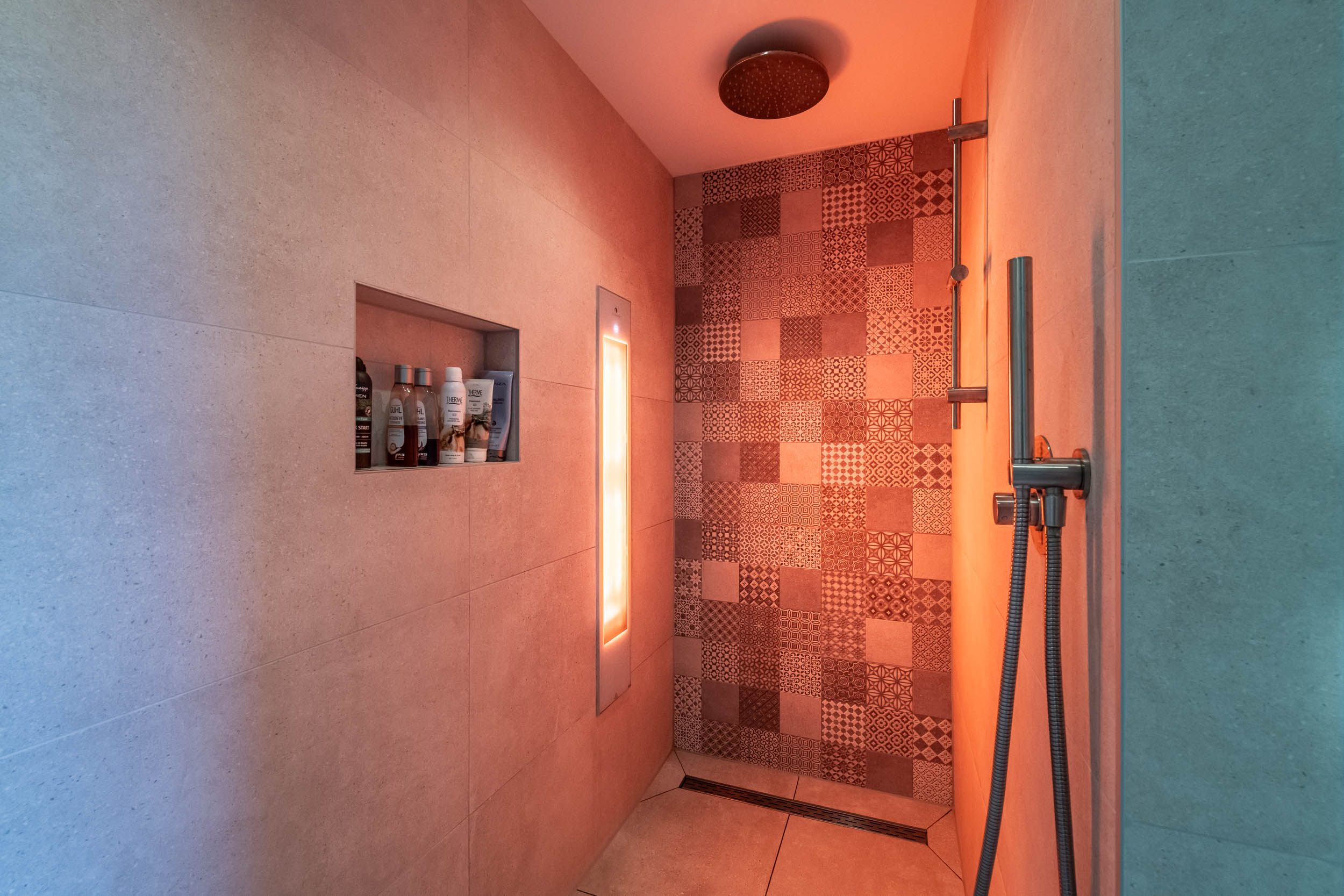 This semi-detached villa, with the feel of detached living, is easily accessible via the driveway. The grounds are enclosed by an electric gate. The driveway has space for several cars, features a charging station and provides access to the indoor garage.