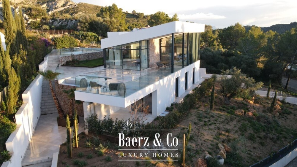 Modern villa Alcúdia defines understated luxury within Paraiso de Bonaire, completed in 2024 and set on a plot of 1,153 m². The property offers 312 m² of refined living area, organized across three floors with floor-to-ceiling windows framing panoramic bay and mountain vistas.