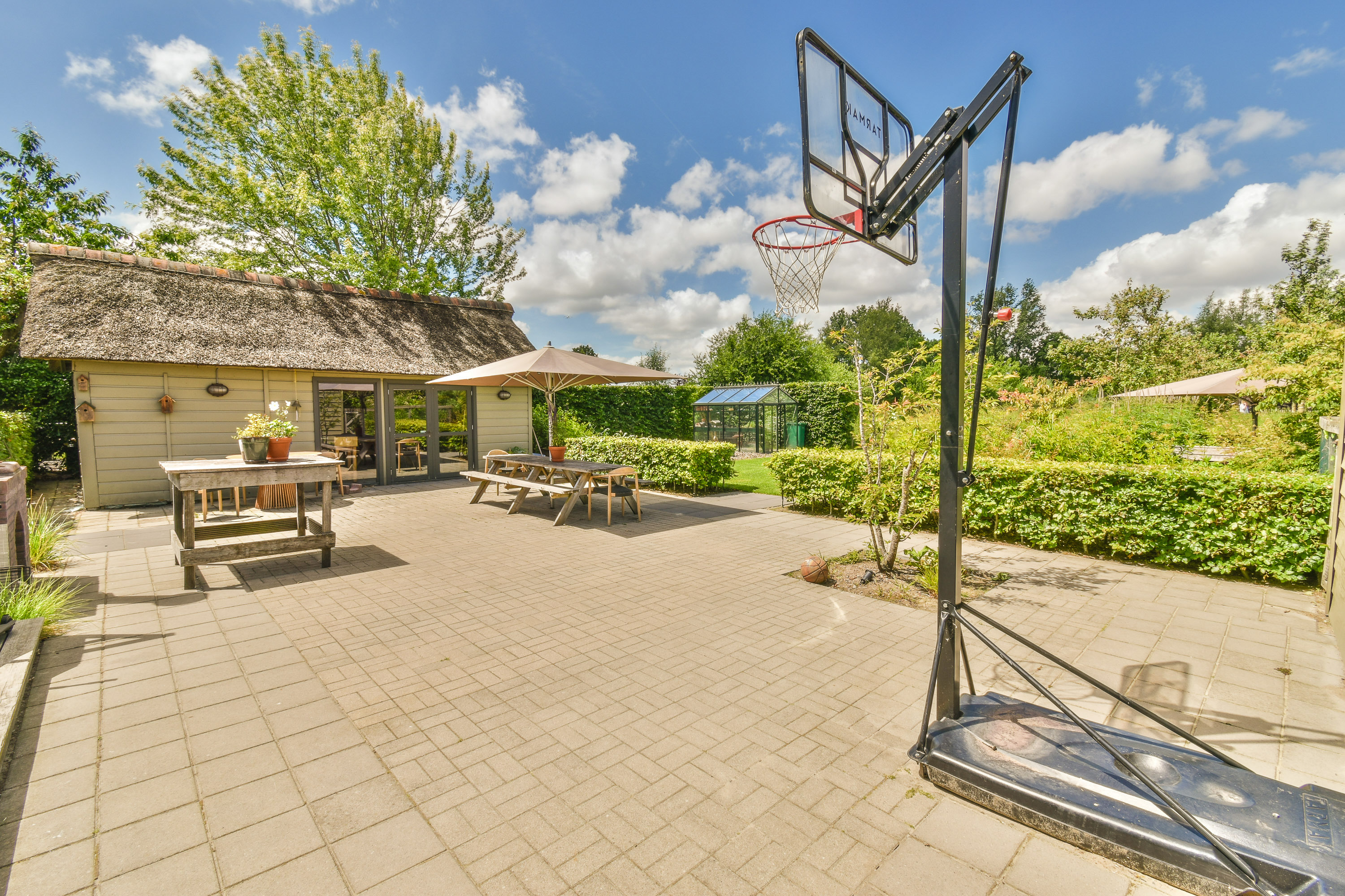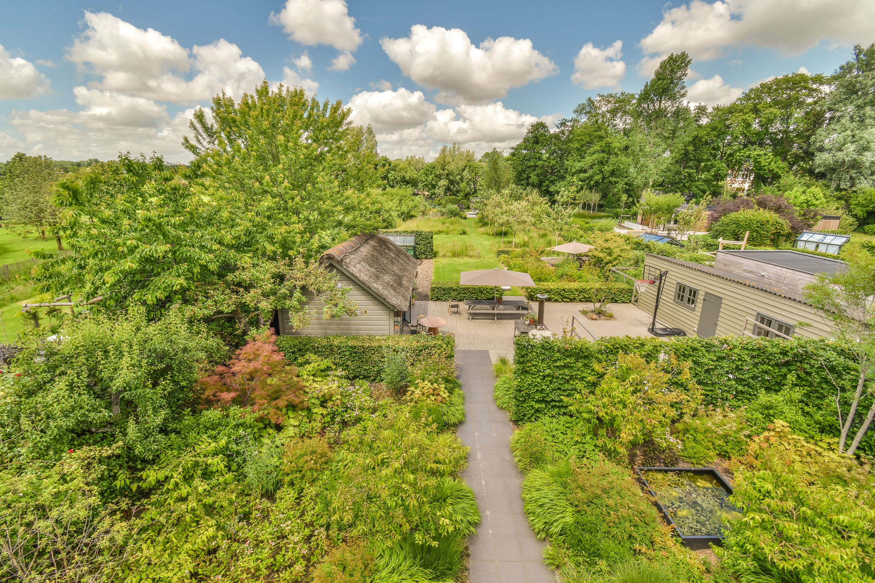 -	Outbuildings include a 26 m² garden room with kitchen