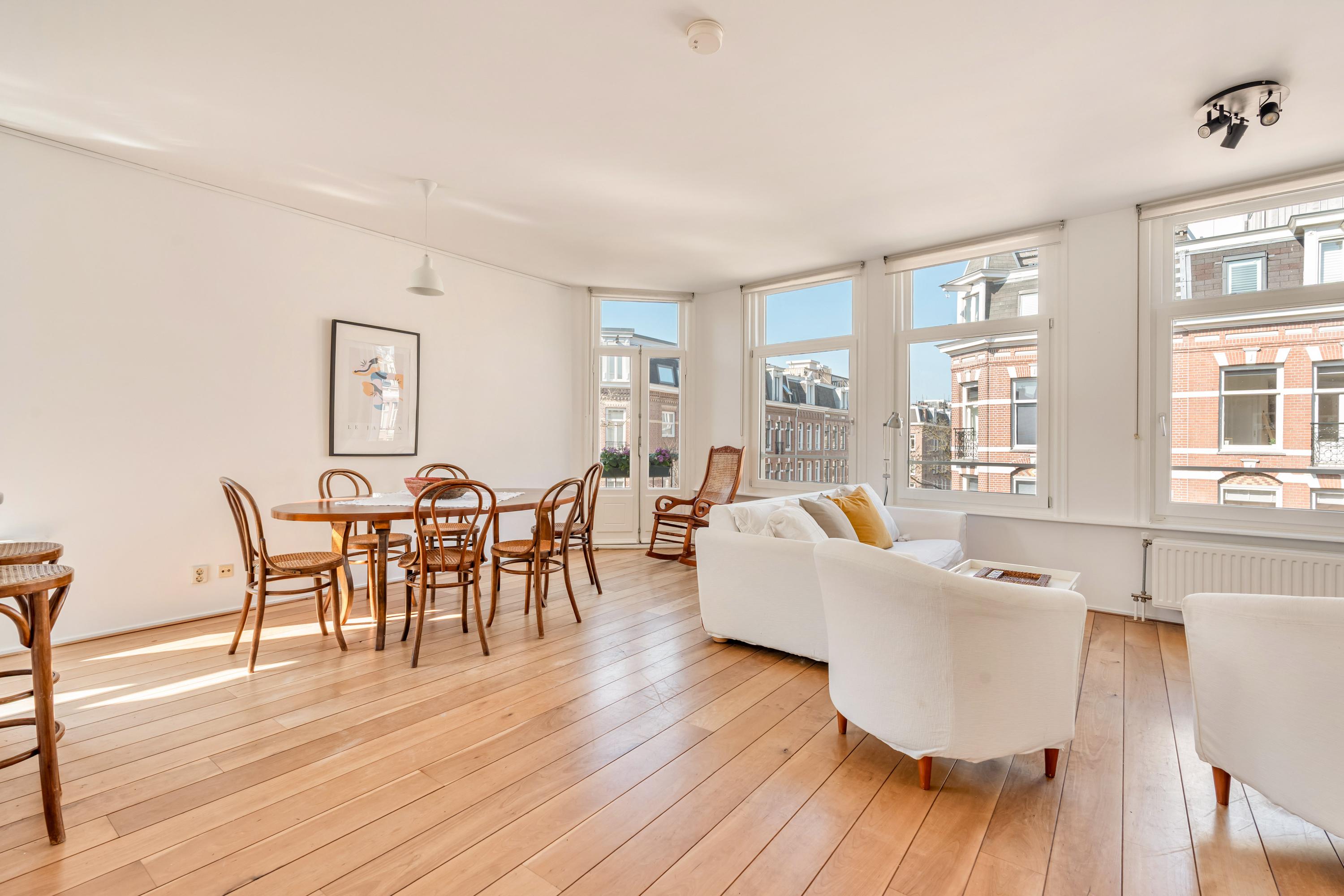 Situated in the highly sought-after Amsterdam Oud-Zuid, we are pleased to offer this charming and well-laid-out corner apartment of approximately 89 m². The apartment is located on the third and fourth floor and features a bright and inviting living room with a modern open-plan kitchen, a French balcony, two spacious bedrooms, and a bathroom with a bathtub on the second floor, as well as a generous rooftop terrace of approximately 12 m². The property is situated on freehold land (no ground lease). With a wide range of shops, restaurants, and cafés within walking distance, you will find yourself in one of Amsterdam’s most vibrant and desirable neighborhoods.