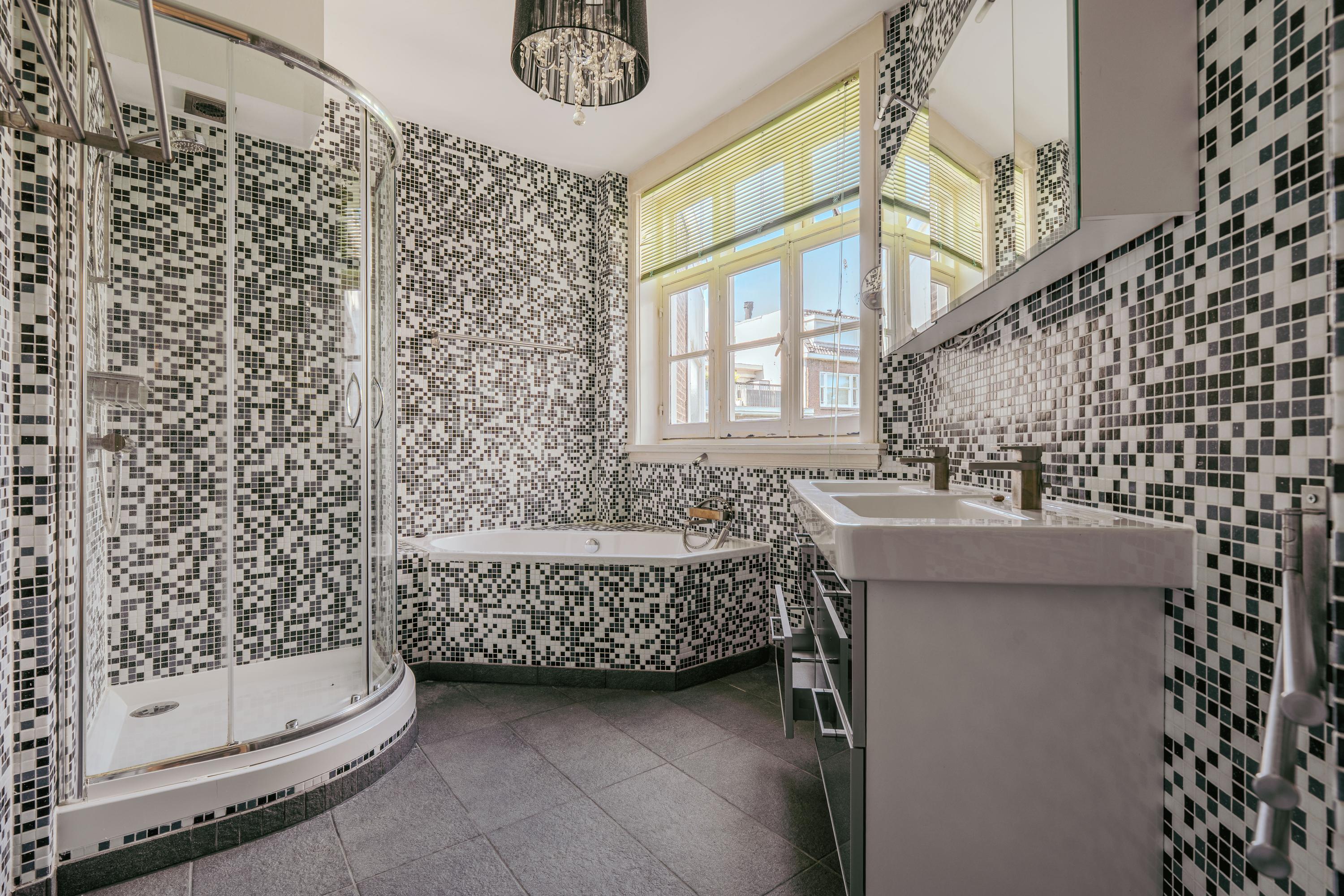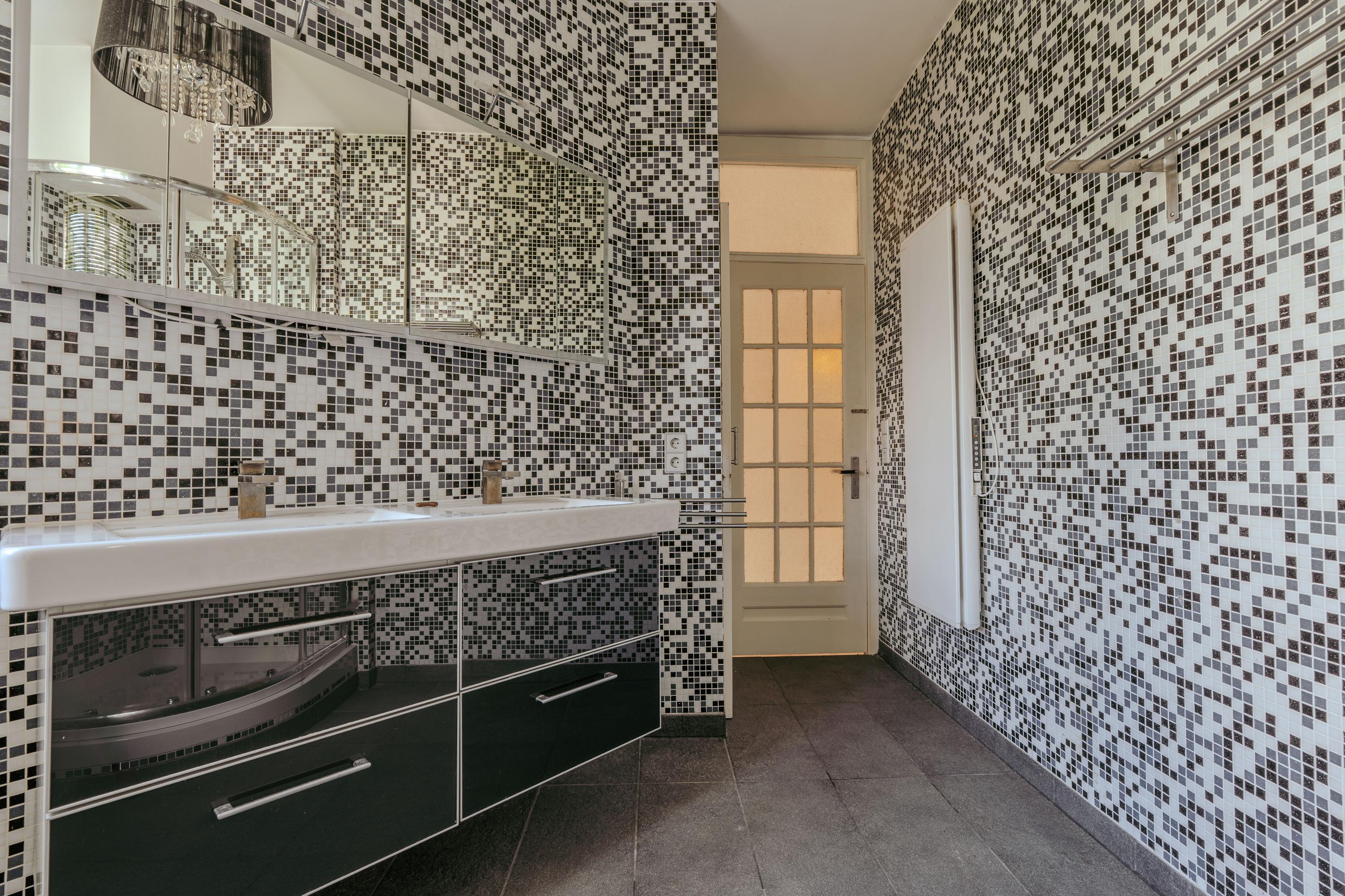 A unique feature is the separate studio on this floor, complete with its own kitchen and bathroom, making it ideal as a guest suite, nanny quarters, or an independent workspace. At the rear is the delightful roof terrace, facing west. Here you can enjoy peace and quiet while basking in the afternoon and evening sun, with views over the surrounding greenery.