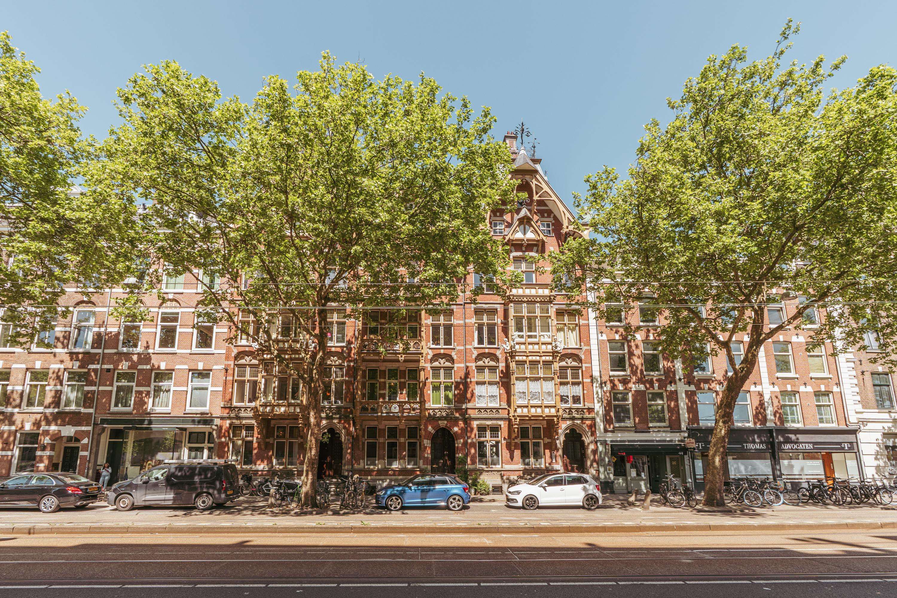 Elegant and very spacious apartment (approx. 241 m²) across the top three floors of a magnificent national monument on the Ceintuurbaan! This exceptionally spacious residence spans the top three floors of a beautifully preserved Rijksmonument and features a generous open-plan living area with wood-burning stove, four bedrooms, two bathrooms, and a wonderfully sunny south-facing balcony. Enjoy stunning views towards the Amstel River and the added benefit of owning freehold property—no leasehold involved.