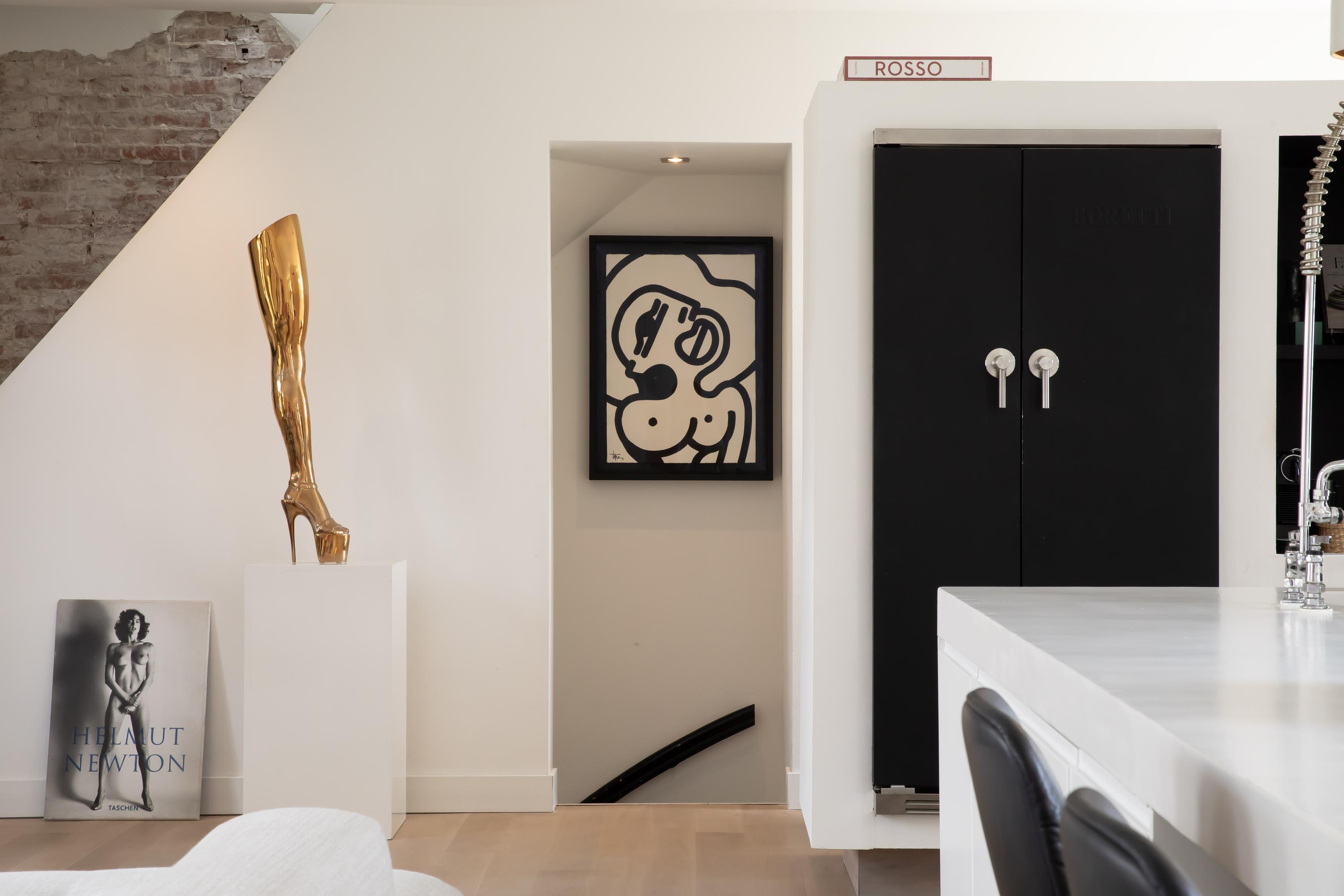The modern open kitchen is equipped with an impressive cooking island with dining area and high-end built-in appliances from Boretti, including an oven, fridge-freezer, 8-burner gas stove with extractor hood, dishwasher, and wine cooler. Ample storage space is also provided. From the kitchen, you have access to the wide, cozy balcony (approx. 4 m²), facing east.
