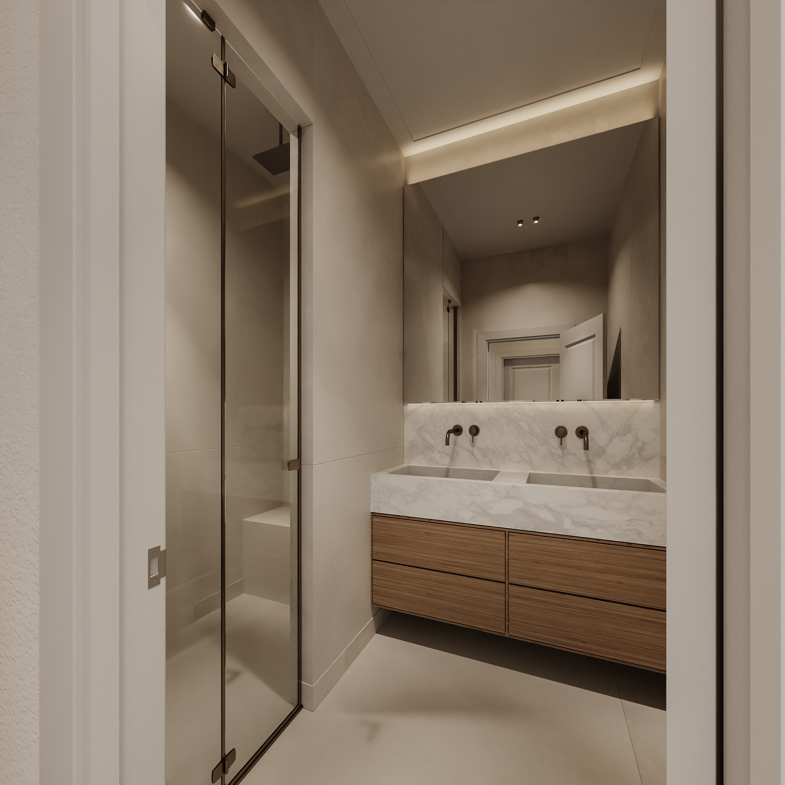 Please note: the photos shown are artist impressions (renders) and are intended to provide an impression of the atmosphere and possibilities of the home. The apartment will of course be delivered fully and high-end finished, including kitchen, bathrooms, and all fixed fittings.