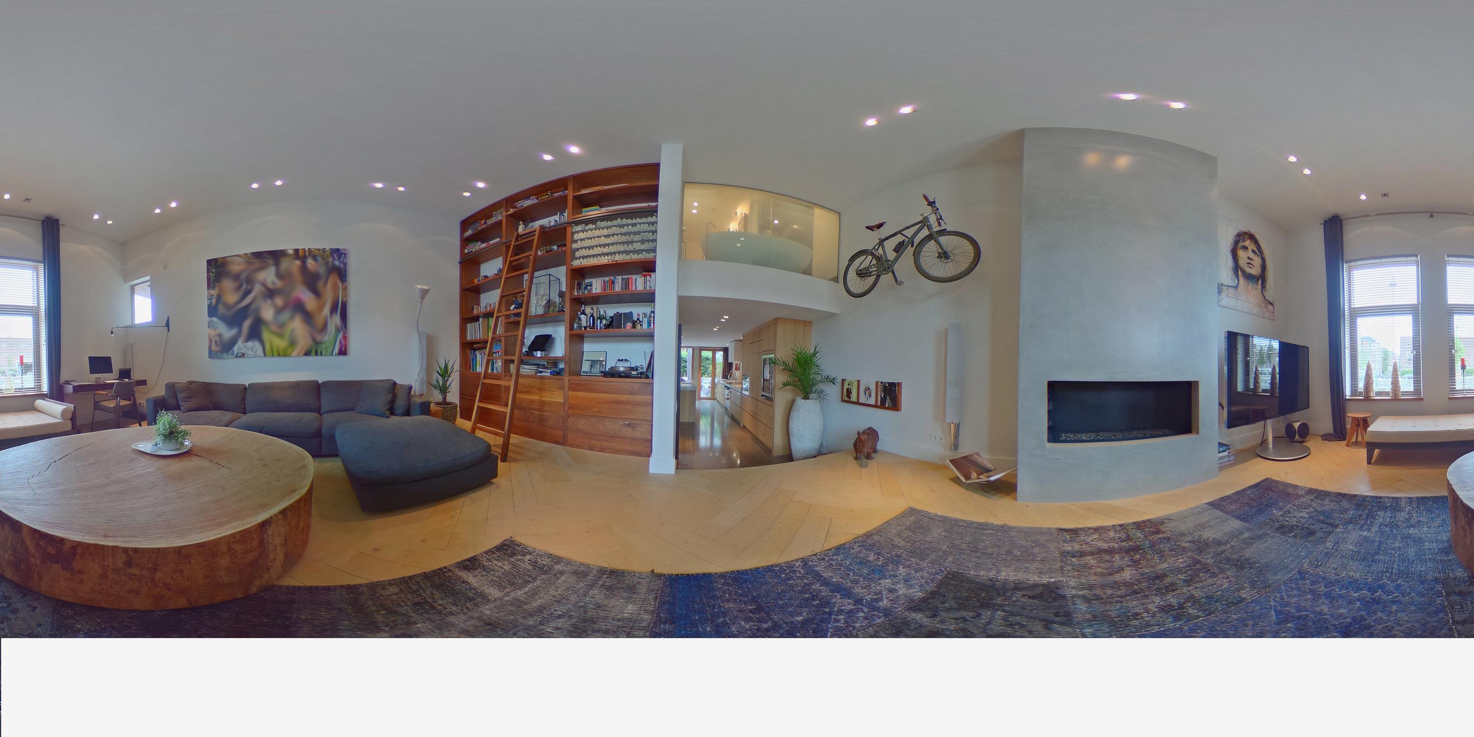 The living room is on the street side of the building and this means it has a gorgeous view out over the waters of the Boerenwetering. This area has a ceiling height of 3.90 metres and is fitted with a gas fireplace. There is a lovely view through from this space to the kitchen and garden, as well as to the freestanding bath.