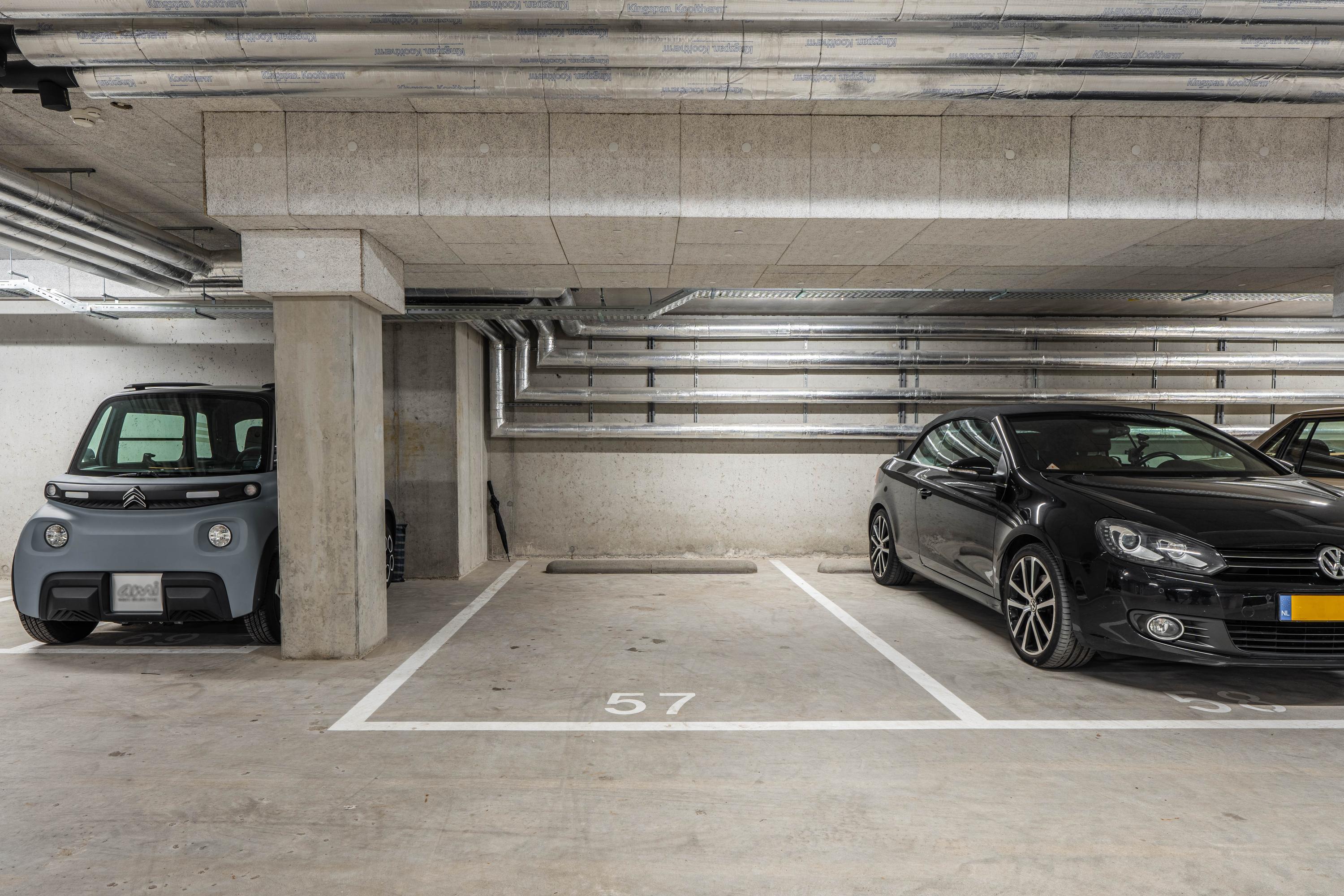 In the basement, the apartment has a private parking space and a separate storage unit.