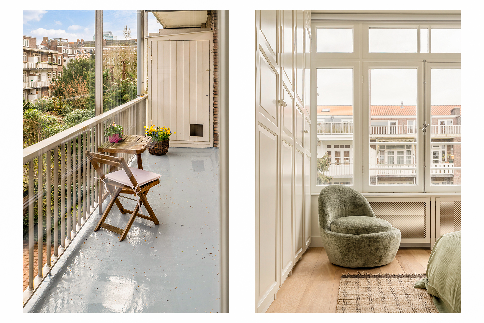 Apartment Amsterdam Zuid brings together period charm and contemporary comfort in a coveted Amsterdam-Zuid address. This residence spans approximately 112 m², offering three well-proportioned bedrooms and a spacious living area infused with character. The apartment’s heritage features, including original sliding doors, custom cabinetry, and iconic bay windows, are complemented by thoughtful renovations such as floor insulation and double glazing.