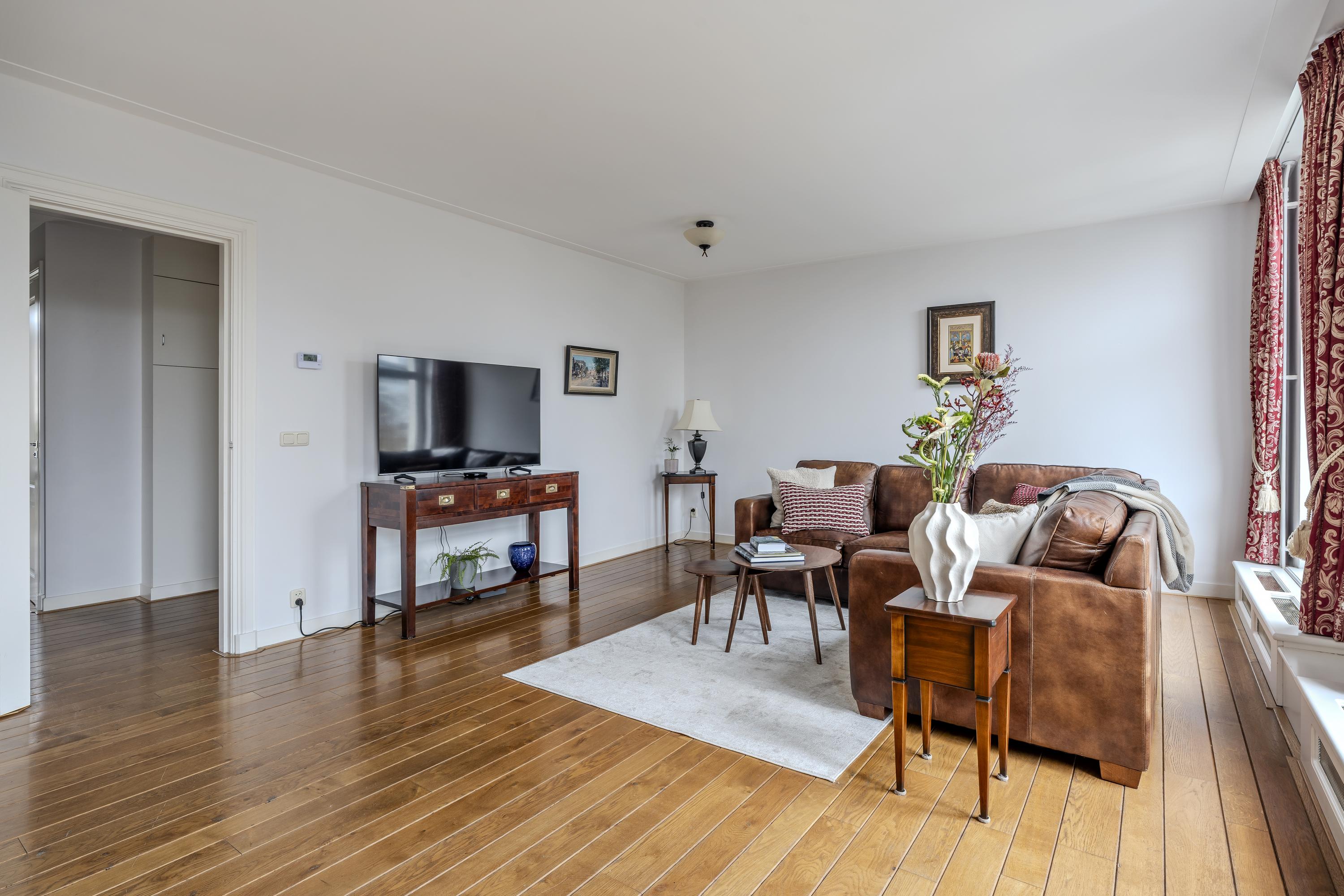 Apartment Amsterdam Vossiusstraat offers a rare confluence of space, privacy, and enduring craftsmanship along one of Amsterdam's most revered addresses. This 130 m² duplex resides in a monumental building directly adjacent to Vondelpark, enveloping you in verdant views and the cultural pulse of Oud-Zuid. From the expansive living room with fireplace and wide French balconies, the lushness of the Vondelpark and the curve of the Singelgracht become part of daily rhythm. The dining area, with an open kitchen and island, flows onto a south-east facing balcony of approximately 4 m², where morning light reveals glimpses of the Rijksmuseum and the energy of P.C. Hooftstraat below.