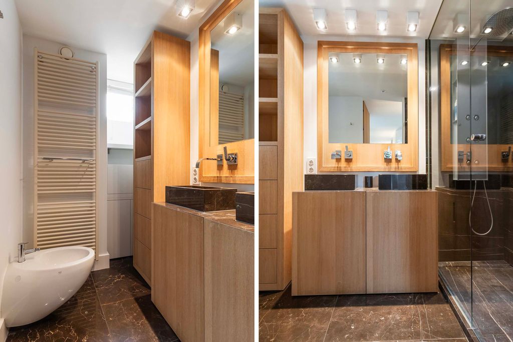 Every space exudes quality. The floors are laid with wide American oak planks by Ebony and Co., lending both authenticity and grandeur. The three bathrooms are bespoke creations in luxurious Italian marble, complete with Alessi designer fittings – offering each resident a hotel-chic experience perfectly aligned with the boutique concept.