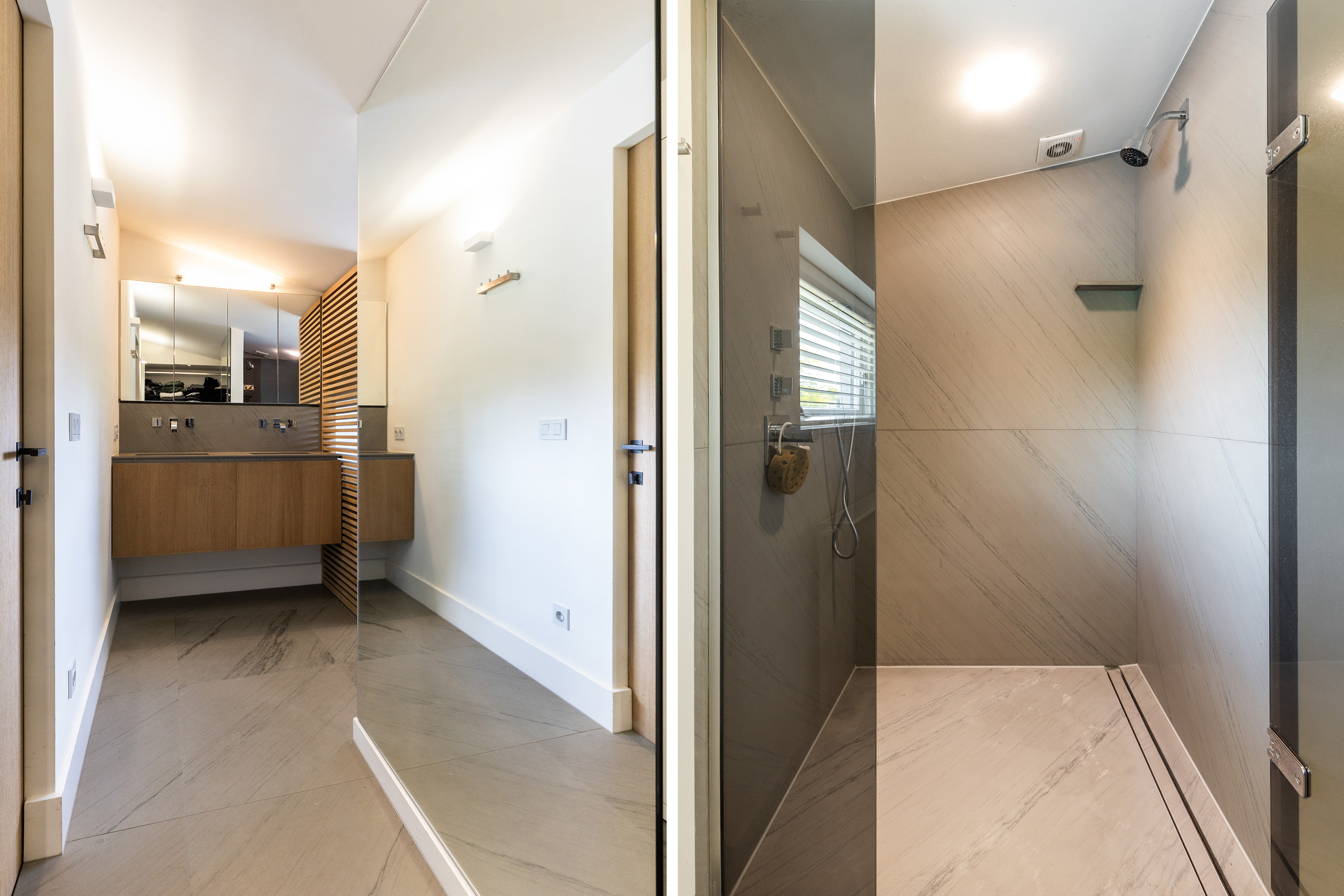 The villa is built on a split-level design, creating intriguing sightlines and playful height variations that together form a dynamic yet harmonious whole. The abundance of natural light and open views create a true sense of freedom and space. All oak interior doors are frameless with concealed hinges, giving a clean and minimalist aesthetic.