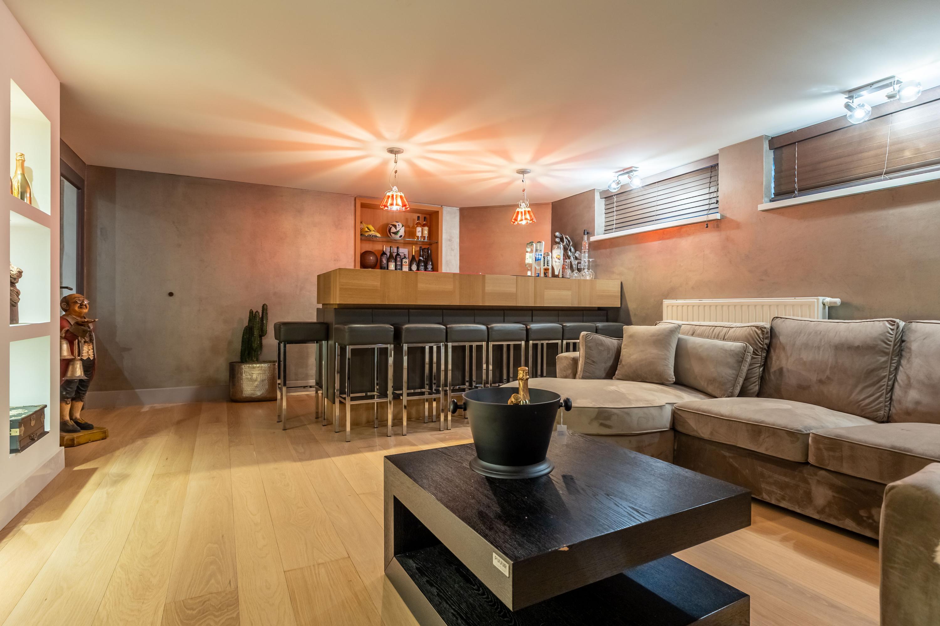 Thanks to its design, you can enjoy the outdoors in every season, with the open fireplace, heater and windscreen providing comfort all year round. Two balconies offer more intimate outdoor retreats. The garden is equipped with automatic irrigation and lends itself perfectly to barbecues or long summer evenings.