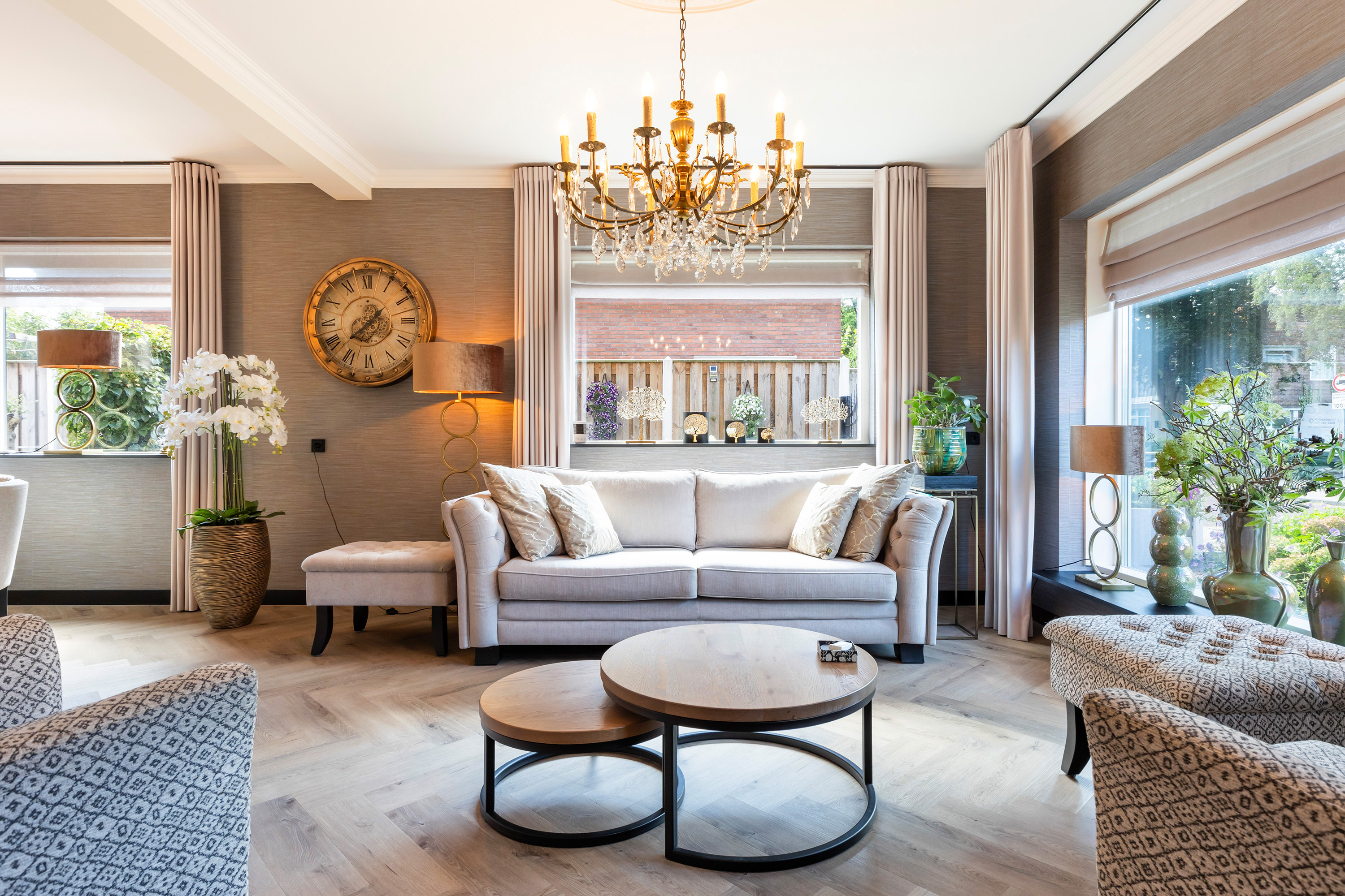 In 2024 is de vloer van de woonkamer vervangen door een Faber gasbetonvloer en voorzien van vloerverwarming, aangesloten op de HR-combiketel. De woonkamer en entree zijn stijlvol afgewerkt met een PVC-vloer in visgraatmotief in de tint white-wash eiken. Wanden en plafonds zijn strak gestuct en voorzien van sierlijsten en ornamenten die de woning extra allure geven.