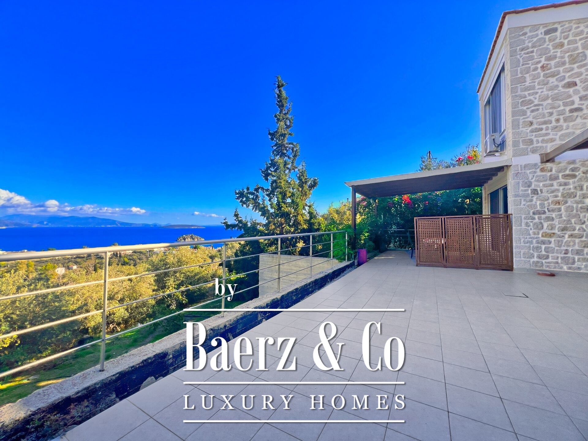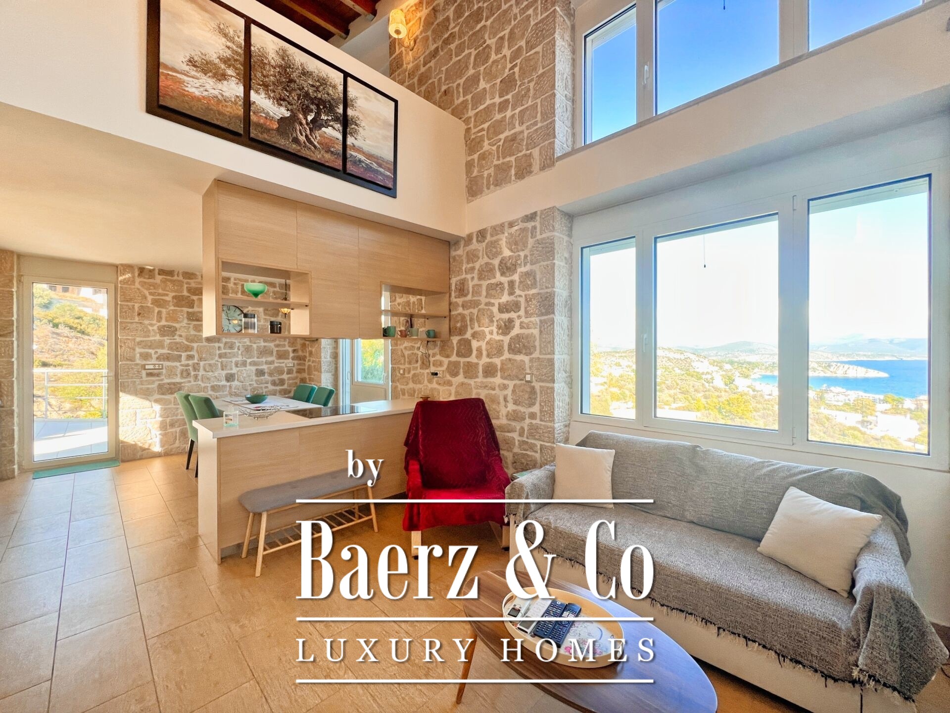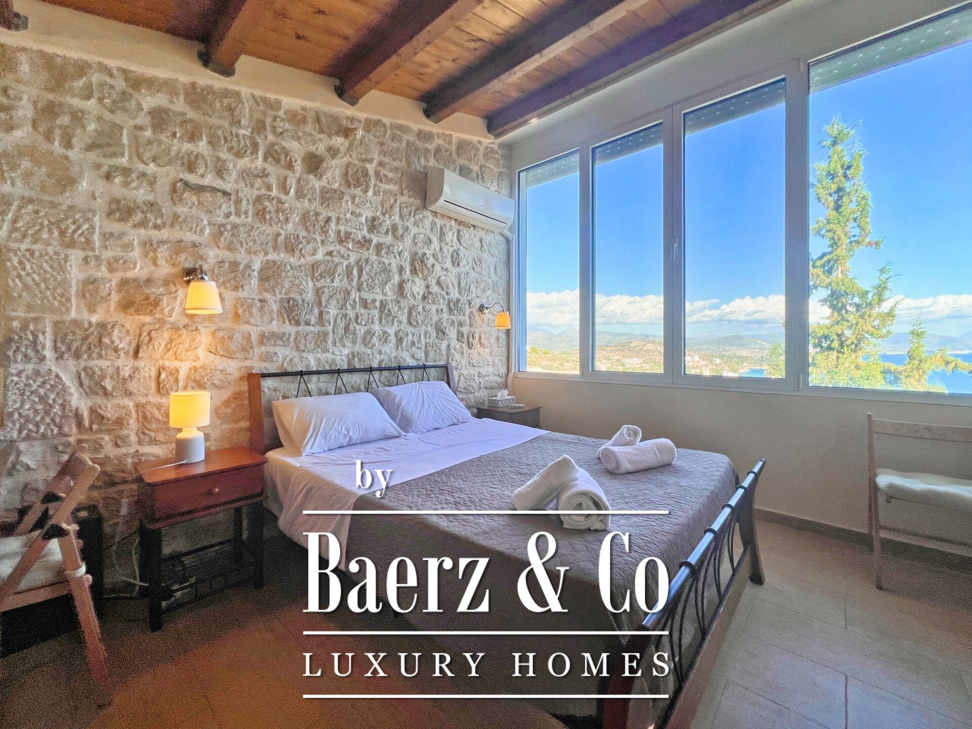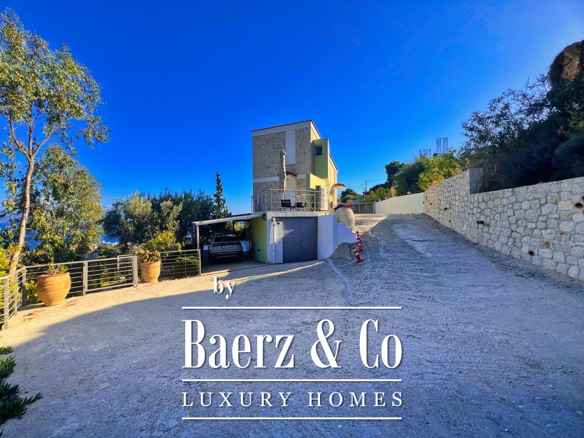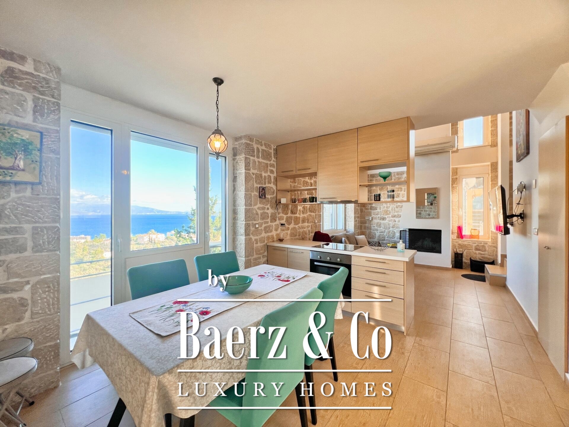 Stone residences Asini are introduced as an exclusive opportunity, set on a tranquil hillside above Tolo and offering far-reaching 180° panoramic views over the Argolic Gulf and surrounding mountains. The property forms a discreet complex of three autonomous homes, totaling 158 m² of living space on a 2,410 m² plot, harmoniously grounded in the landscape through the use of local stone and wood.
