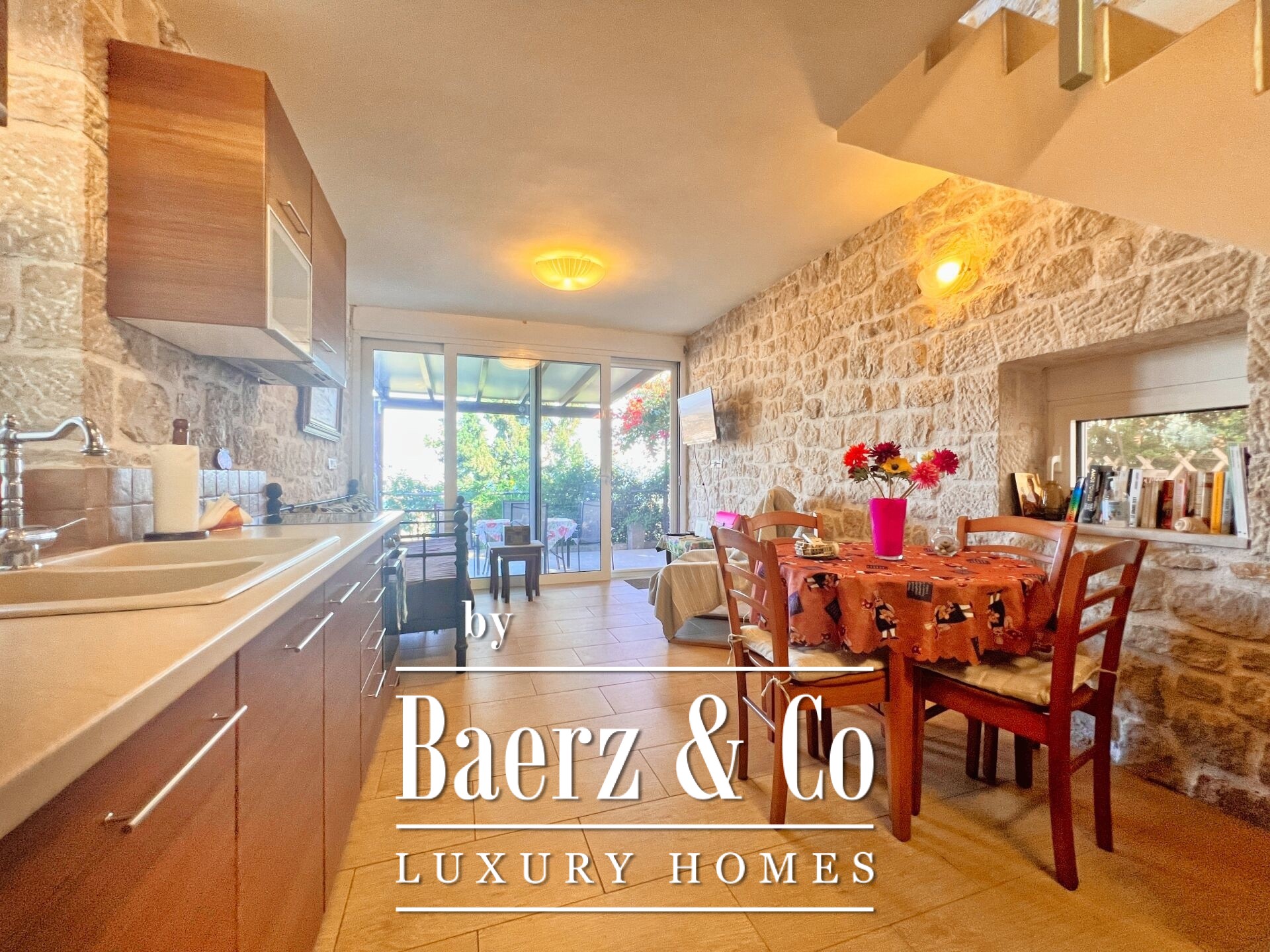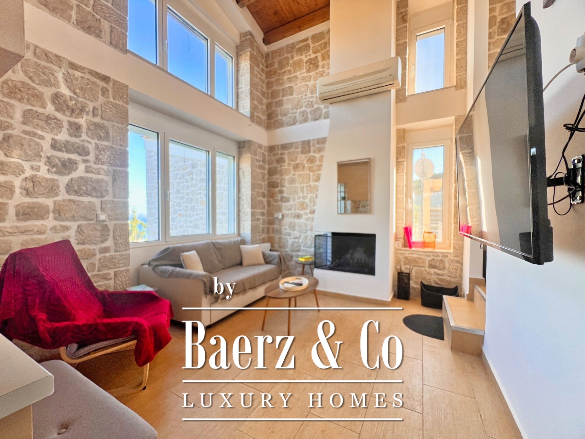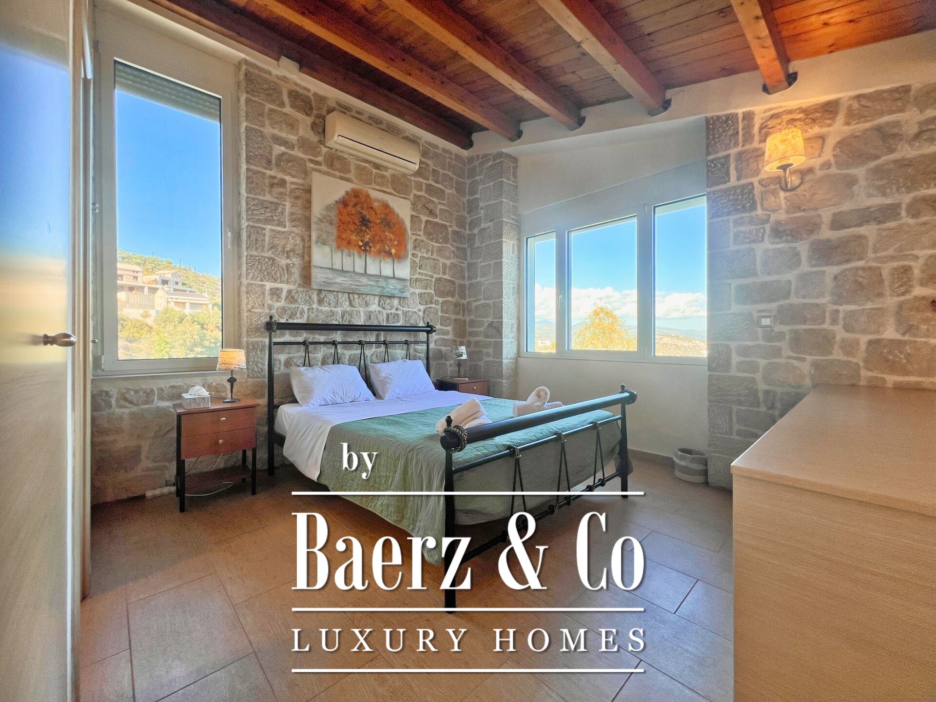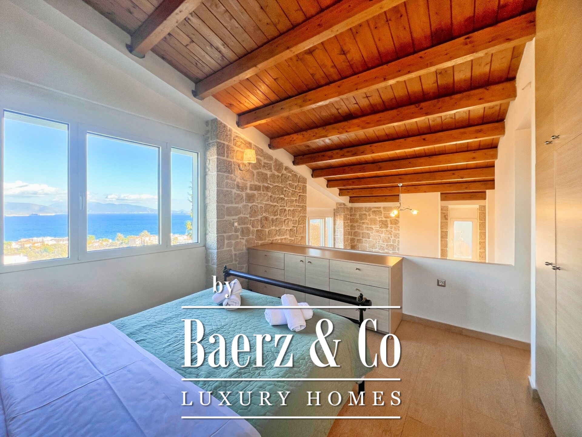 Stone residences Asini are introduced as an exclusive opportunity, set on a tranquil hillside above Tolo and offering far-reaching 180° panoramic views over the Argolic Gulf and surrounding mountains. The property forms a discreet complex of three autonomous homes, totaling 158 m² of living space on a 2,410 m² plot, harmoniously grounded in the landscape through the use of local stone and wood.