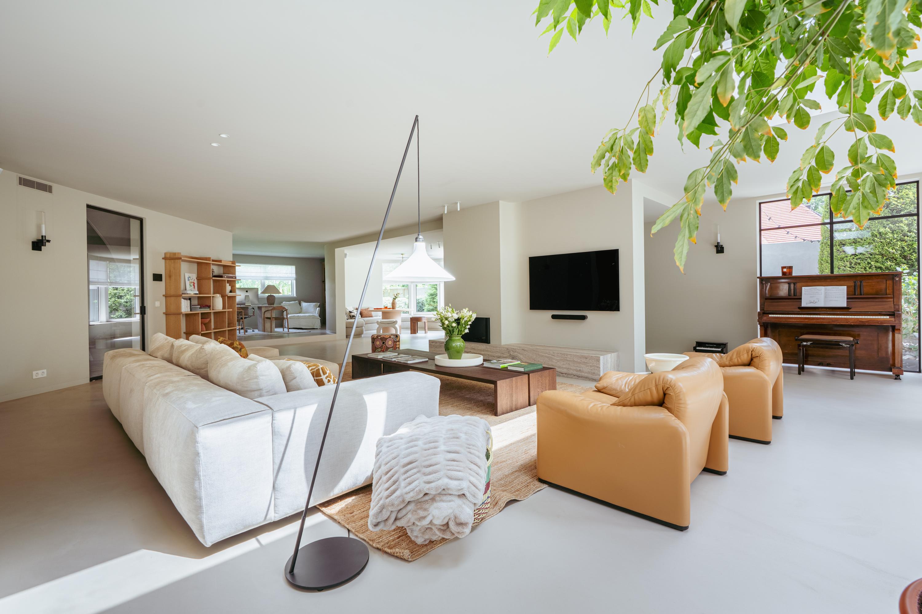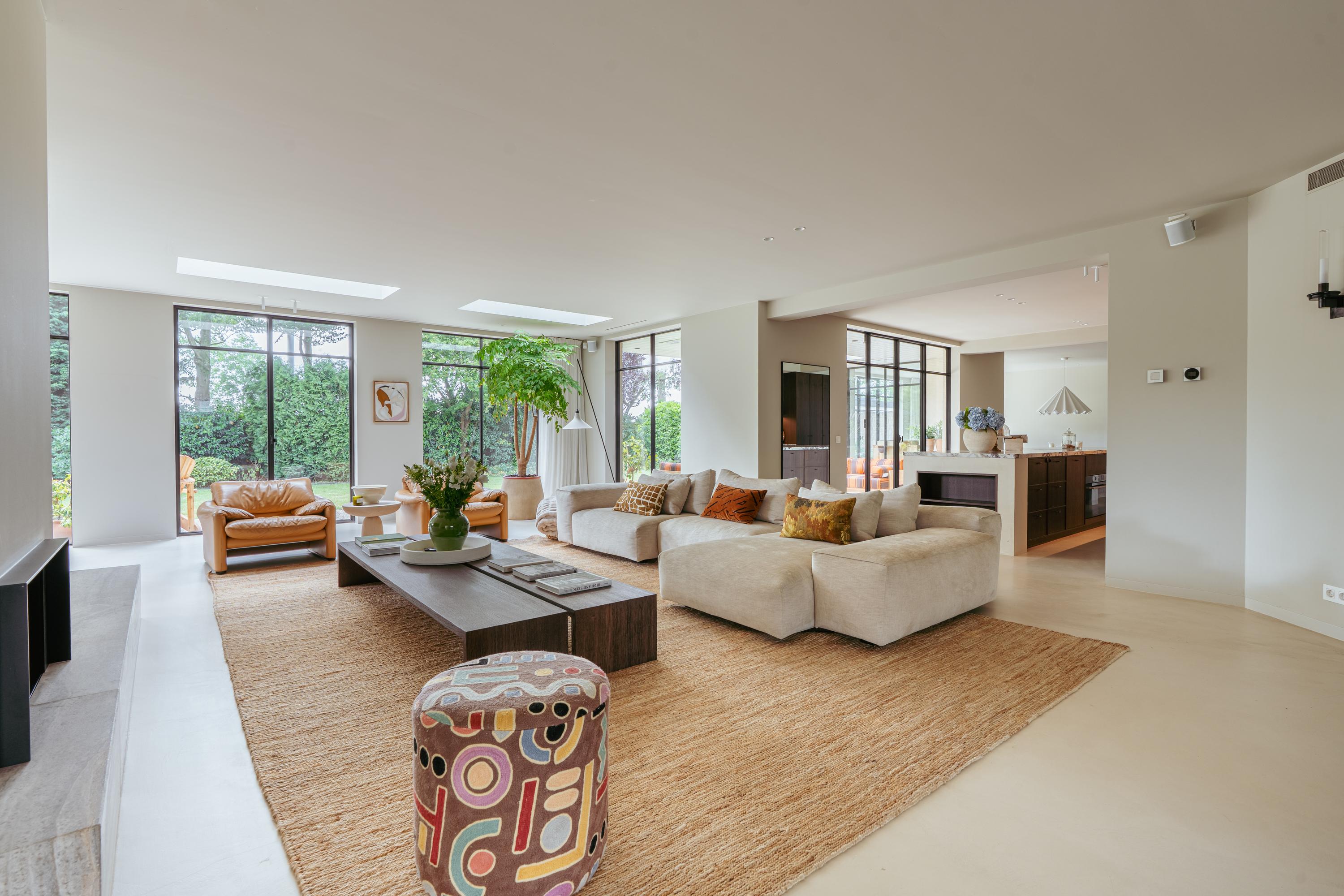 Exclusive, fully renovated villa of approximately 359 sqm, spread over two floors plus a loft attic, set on a generous plot of around 1,064 sqm. This elegant home, redesigned by renowned architect Anne Claus, boasts a beautifully landscaped garden (approx. 617 sqm), a stunning covered terrace (approx. 22 sqm), three spacious bedrooms, two luxurious bathrooms, a garage, a large internal storage room, and a private gym. The villa holds an energy label A and is equipped with a full home automation system for optimal living comfort.