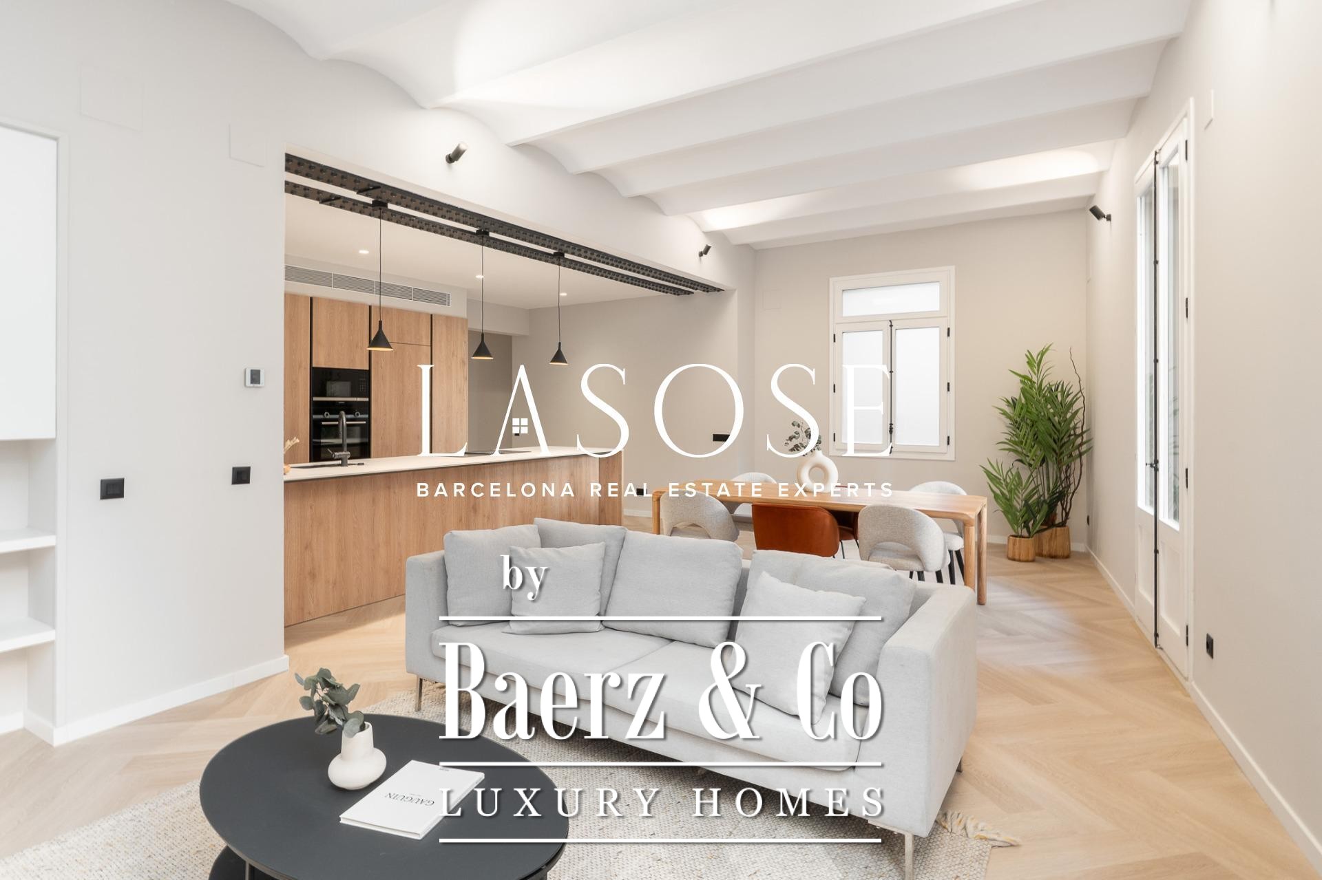 offering a perfect combination of style and functionality. The large central island not only organizes the space, but also makes it the social heart of the house.. . In the sleeping area, there are three spacious bedrooms, including an elegant master suite with private bathroom and separate dressing room. The other two bedrooms also have excellent dimensions and fitted closets.. . The whole house has air conditioning by aerothermal and wooden carpentry with double glazing.. . . *Location*. . The property is situated in a privileged location in Barcelona, where culture, architecture, art and gastronomy intertwine to offer a unique experience. A few steps away are the Palau de la Música, an architectural jewel, and the Cathedral of Barcelona, in an enclave that connects the Eixample, the Born and the Gothic Quarter. . . It is an ideal area for day-to-day living, with easy access to public transportation, a wide variety of supermarkets and the Santa Caterina market, known for its fresh produce. Living in the center of the city eliminates the need for a private car, as everything is close at hand: schools, kindergartens, the Ciutadella Park is a 10-minute walk away and the beaches and the new port are just two bus stops away. . . It is difficult to find a better location to enjoy all that Barcelona has to offer. . . Do not hesitate to contact us to arrange a visit and personally discover the magic of this apartment. We are available to answer all your questions and help you every step of the way. . . At LASOSE, we don't just sell properties; we offer exceptional living experiences and look forward to welcoming you soon to your new home! .