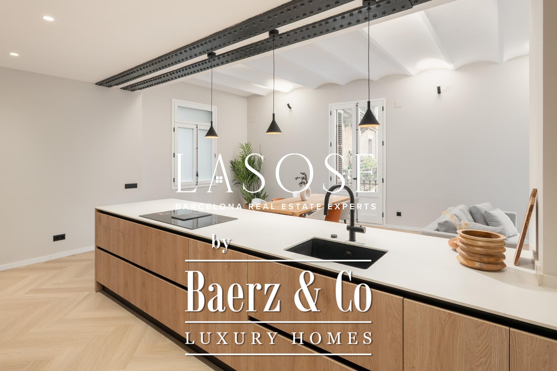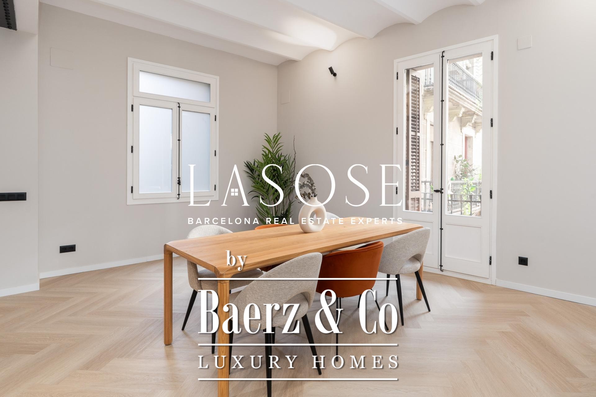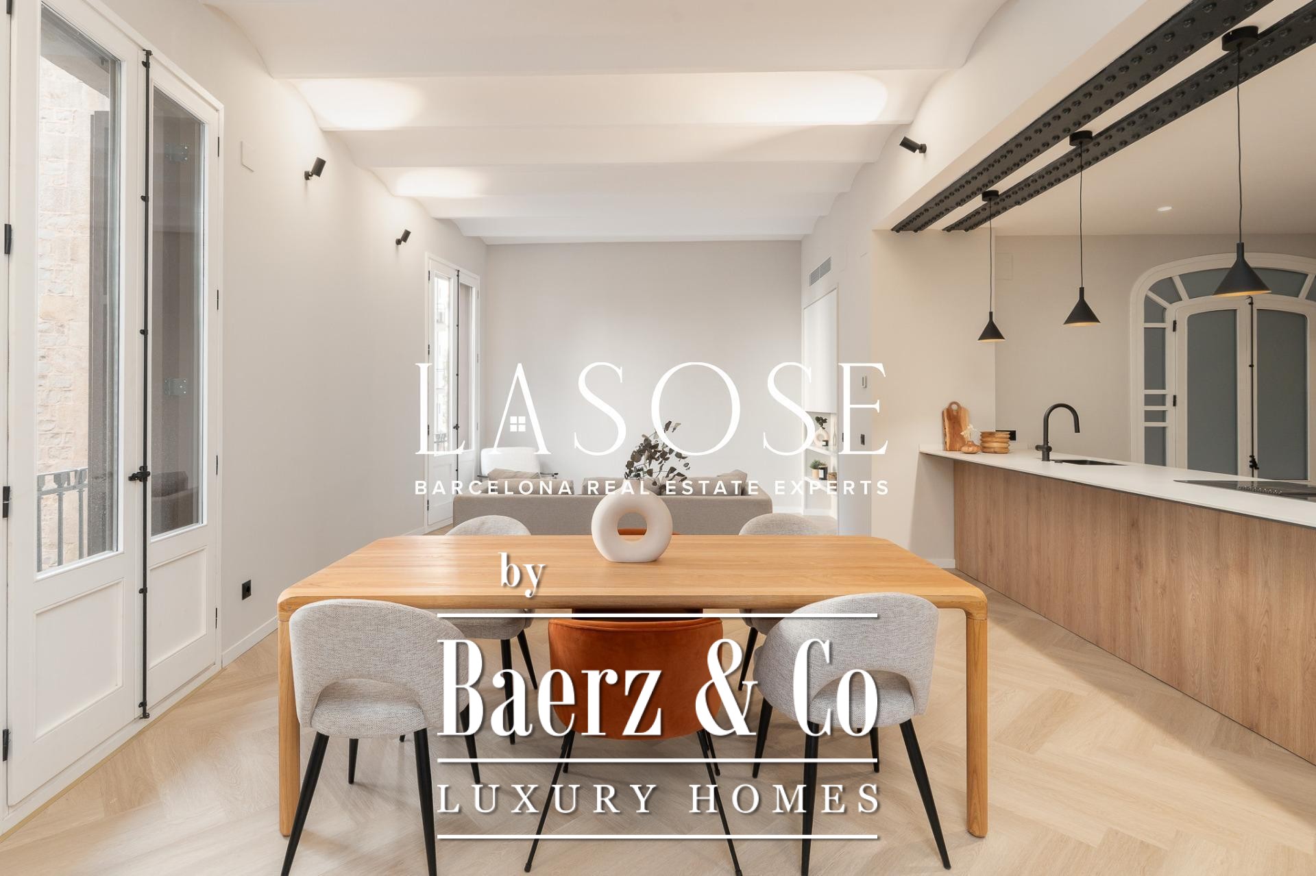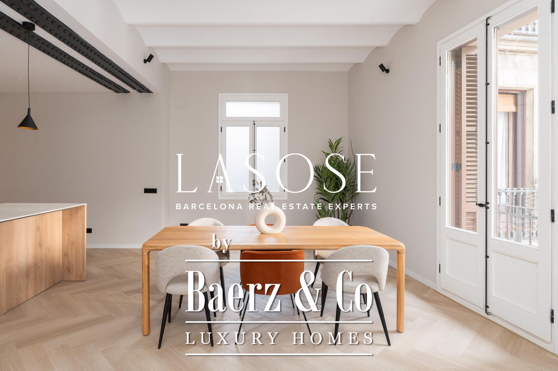LASOSE presents in one of the best areas of Barcelona, next to the Cathedral and the Palau de la Música, this charming apartment of 140 meters built, completely renovated located in a classic building in the area, with elevator and concierge. . . Exclusive renovated house with original charm and modern design in the historic center of Barcelona, next to the Cathedral and the Palau de la Música.. . Discover this magnificent apartment located in a classic building in the heart of the city, completely renovated with high quality materials and taking care of every detail. With a living area of 119.72 m² and a built area of 140.15 m², this property combines the charm of traditional architecture with comfort and functionality.. . The apartment has three bedrooms, one en suite and two doubles sharing a bathroom. The spaces have been designed to maximize comfort and aesthetics, creating a cozy and modern atmosphere. . . The house has been completely renovated with high quality materials, while respecting original architectural elements, such as wooden shutters and the emblematic Catalan vault. The floor is herringbone vinyl parquet.. . Upon entering the property, a spacious entrance hall opens onto an impressive day area. . . The living-dining room, spacious and cozy, stands out for its warmth, thanks to the high ceilings with Catalan vault and for its extraordinary luminosity, enhanced by a pleasant balcony overlooking a beautiful and quiet square. This space is ideal to enjoy both day-to-day life and gatherings with friends or family.. . The open-plan kitchen, integrated into the living room, has been equipped with Siemens furniture and appliances,