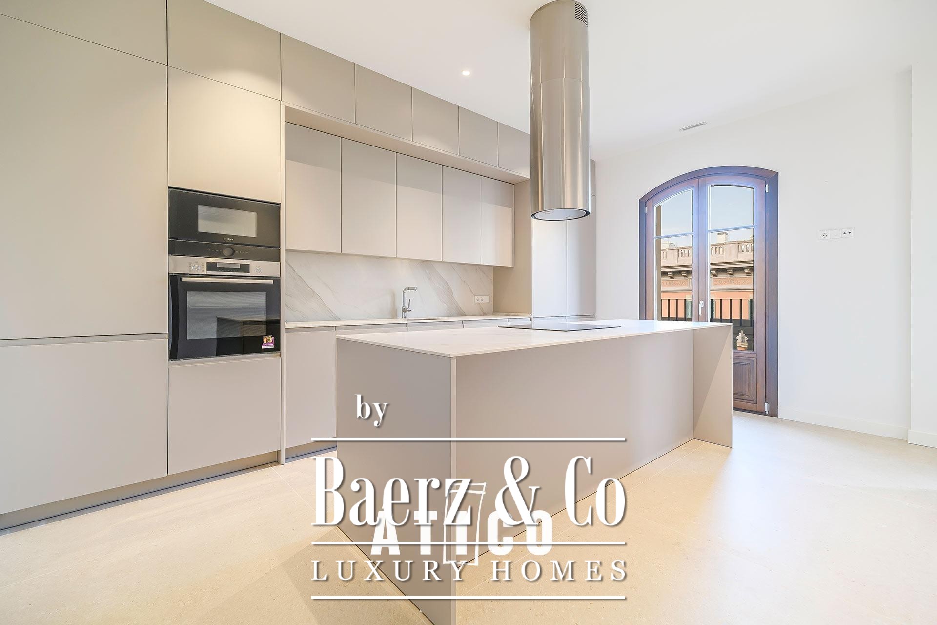 This duplex apartment Barcelona stands as a testament to refined urban living, offering 212.51 m² of newly renovated space across two distinct floors. Designed with flexibility in mind, its independent entrances provide options for privacy, work, or hospitality, allowing seamless transitions between day and night zones or dual-purpose living. Upon entry, a modern staircase defines the interior, lending the home a confident architectural rhythm and connecting both levels.