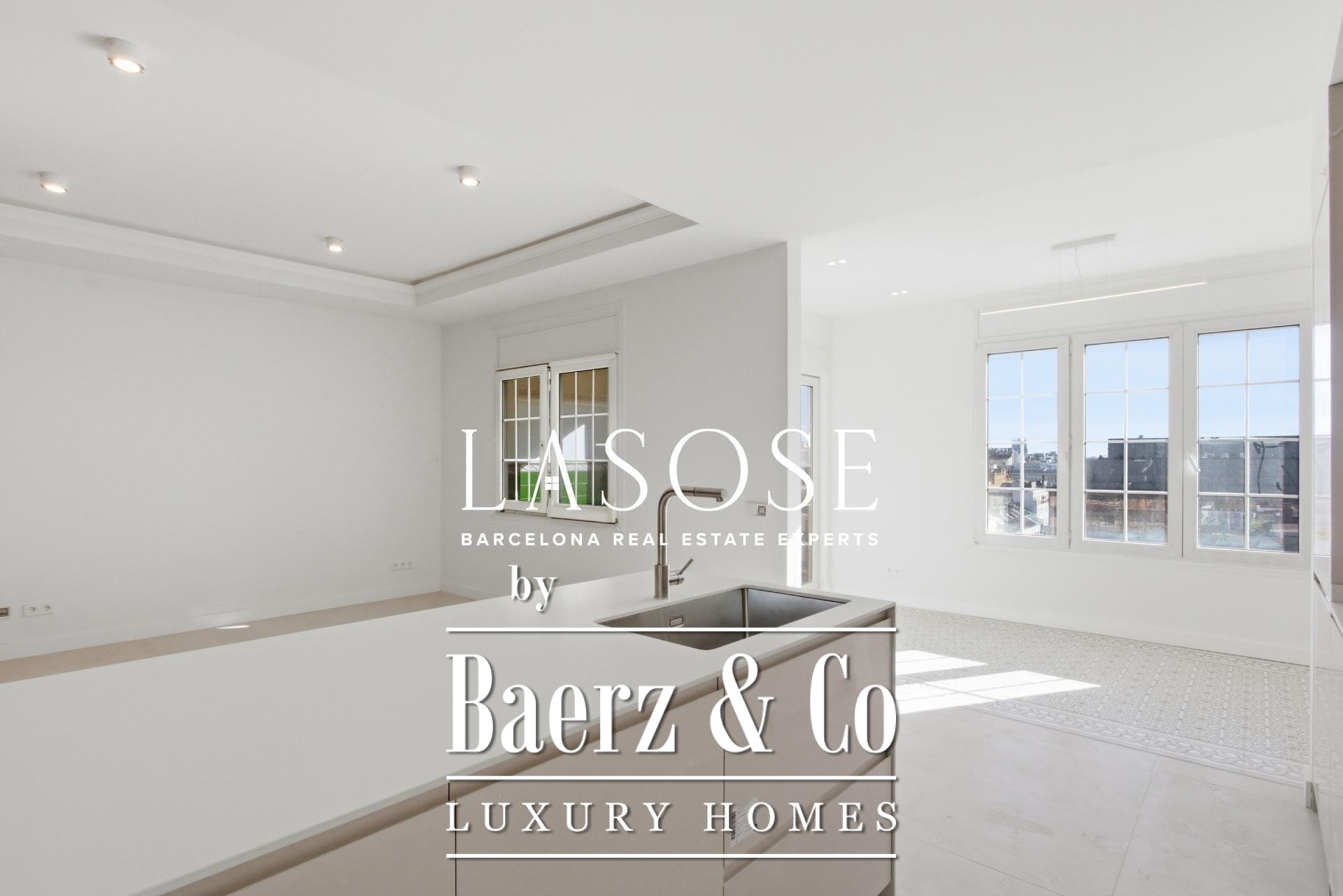 Penthouse Dreta de l'Eixample Barcelona presents a rare intersection of architectural heritage and refined contemporary space. This 131 m² residence unfolds within a stately 1910 building located between Rambla de Catalunya and Carrer de Balmes, a setting acclaimed for its modernist façades, tree-lined boulevards, and discreet vibrancy.
