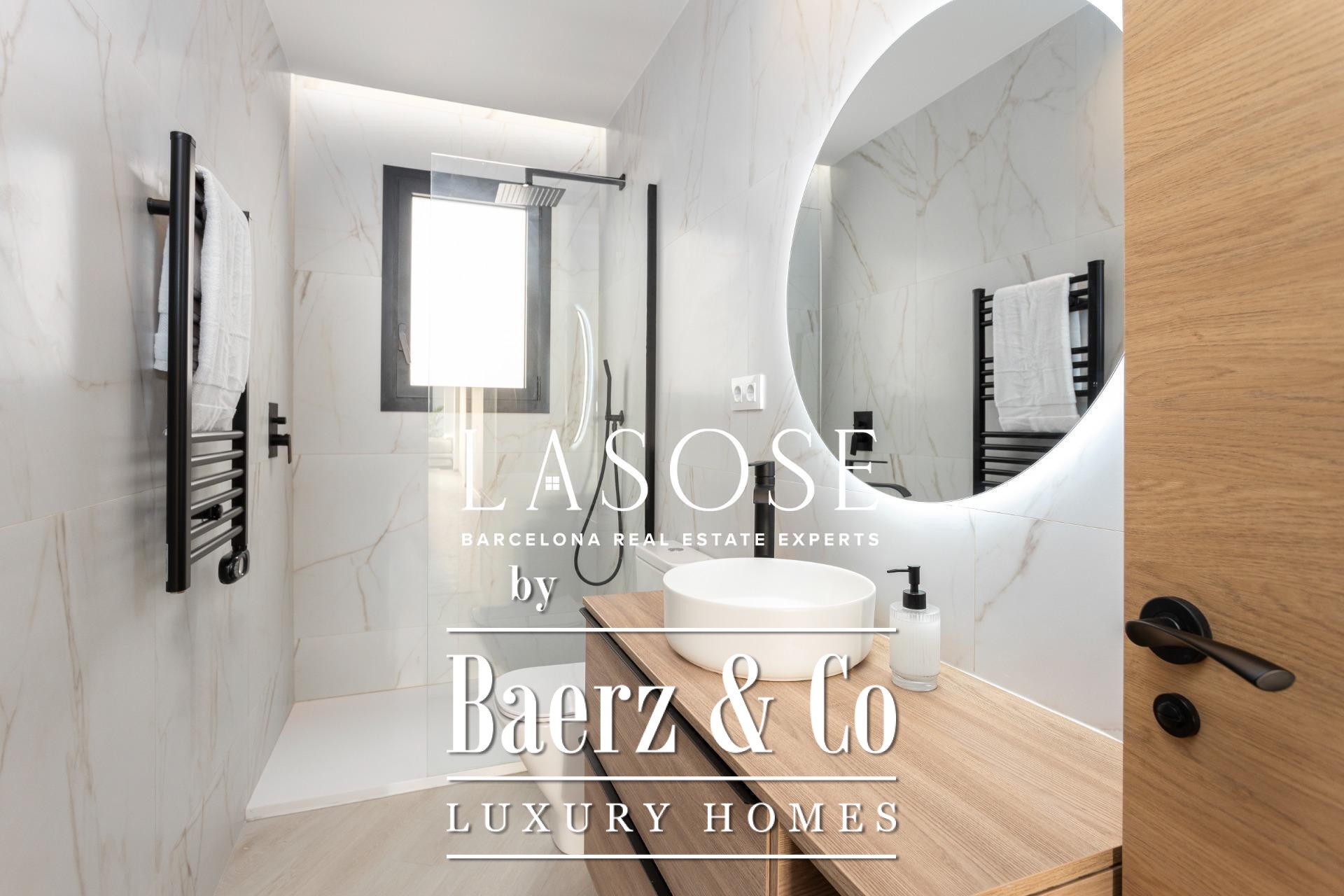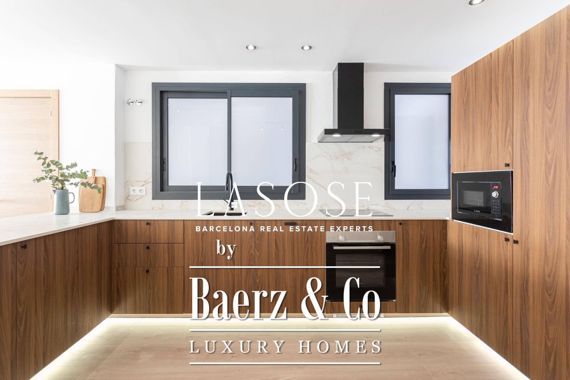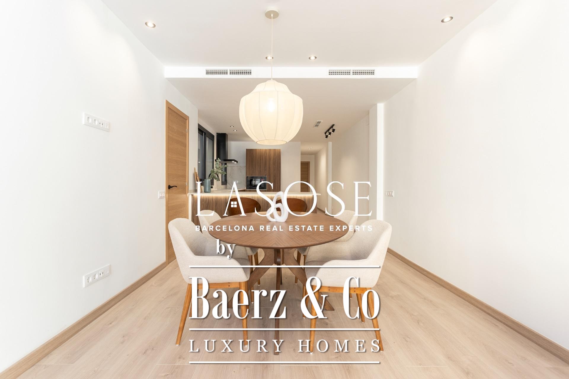 Three bedrooms include a main suite with terrace access, fitted wardrobes, and a private bathroom, complemented by a double and single bedroom. Both bathrooms feature concealed taps, LED illumination, and porcelain detail. Amenities include ducted Mitsubishi air conditioning, advanced insulation, laundry room, and a parking space in the building for a small car or motorbike, offering discreet comfort in the core of Barcelona. This luxury apartment for sale in Barcelona presents the equilibrium of modern design and metropolitan lifestyle.