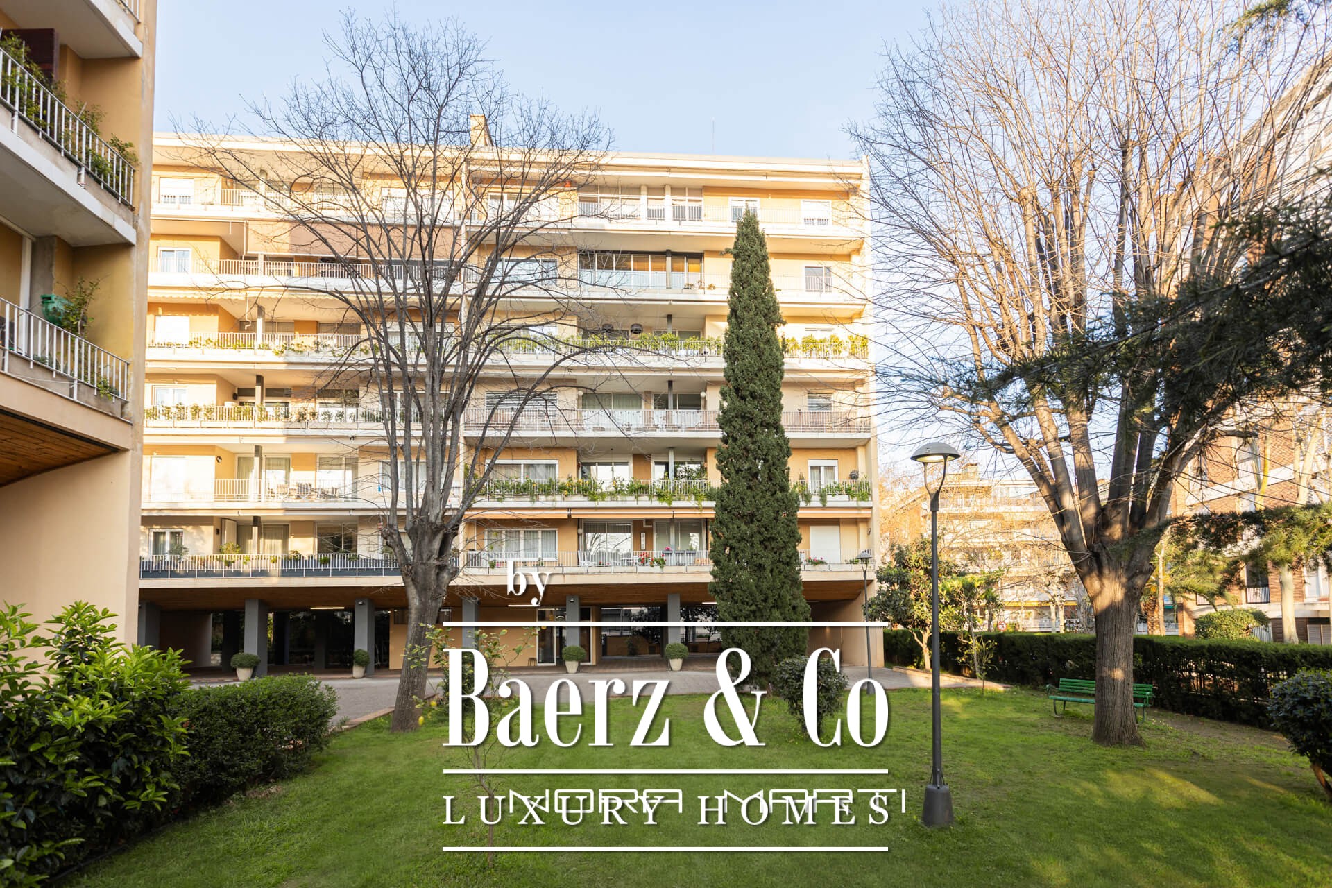 The apartment’s interior features parquet floors, double-glazed windows, and a furnished, well-equipped kitchen. The living and dining spaces are climate controlled with hot and cold air conditioning, while communal heating ensures seasonal comfort. Everyday life is enhanced by the inclusion of a private parking space in the building, an essential asset in Barcelona.