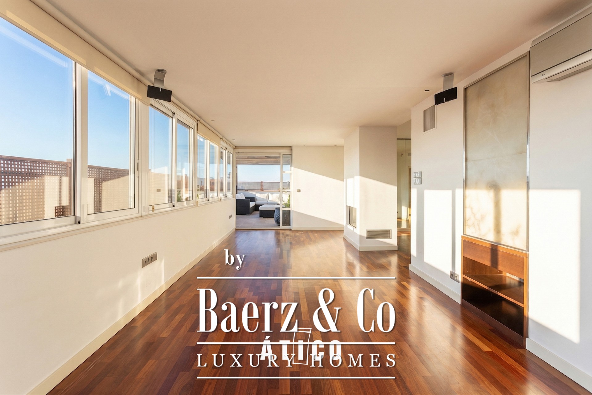 Penthouse apartment Barcelona is set in the upper part of the city, offering an elevated perspective and a sense of tranquil privacy. This exclusive residence stretches across 180 m² and is distinguished by spacious rooms that are bathed in natural light, a quality enhanced by its unique orientation. The layout includes three suites, each suffused with daylight, and a luminous living-dining area designed for gatherings or relaxation.
