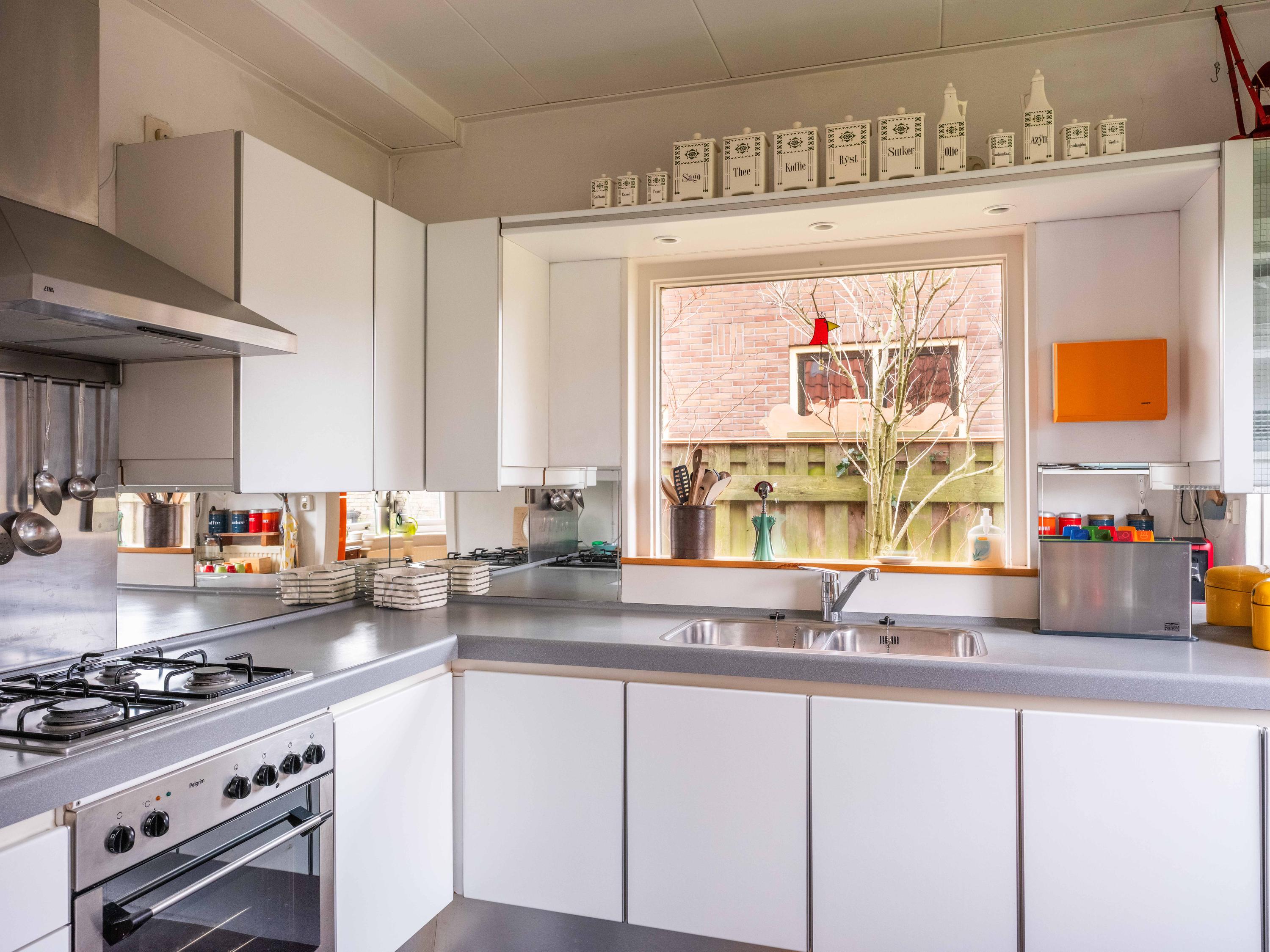 Upon entering, you immediately experience the spaciousness. The generous hall provides access to the toilet, the meter cupboard, the stairs to the upper floor, and a handy storage space under the stairs. The bright living room overlooks the greenery on the other side and is a nice place to relax. From the hall, you also reach the dining room and the kitchen, which is equipped with various built-in appliances and direct access to the garden.