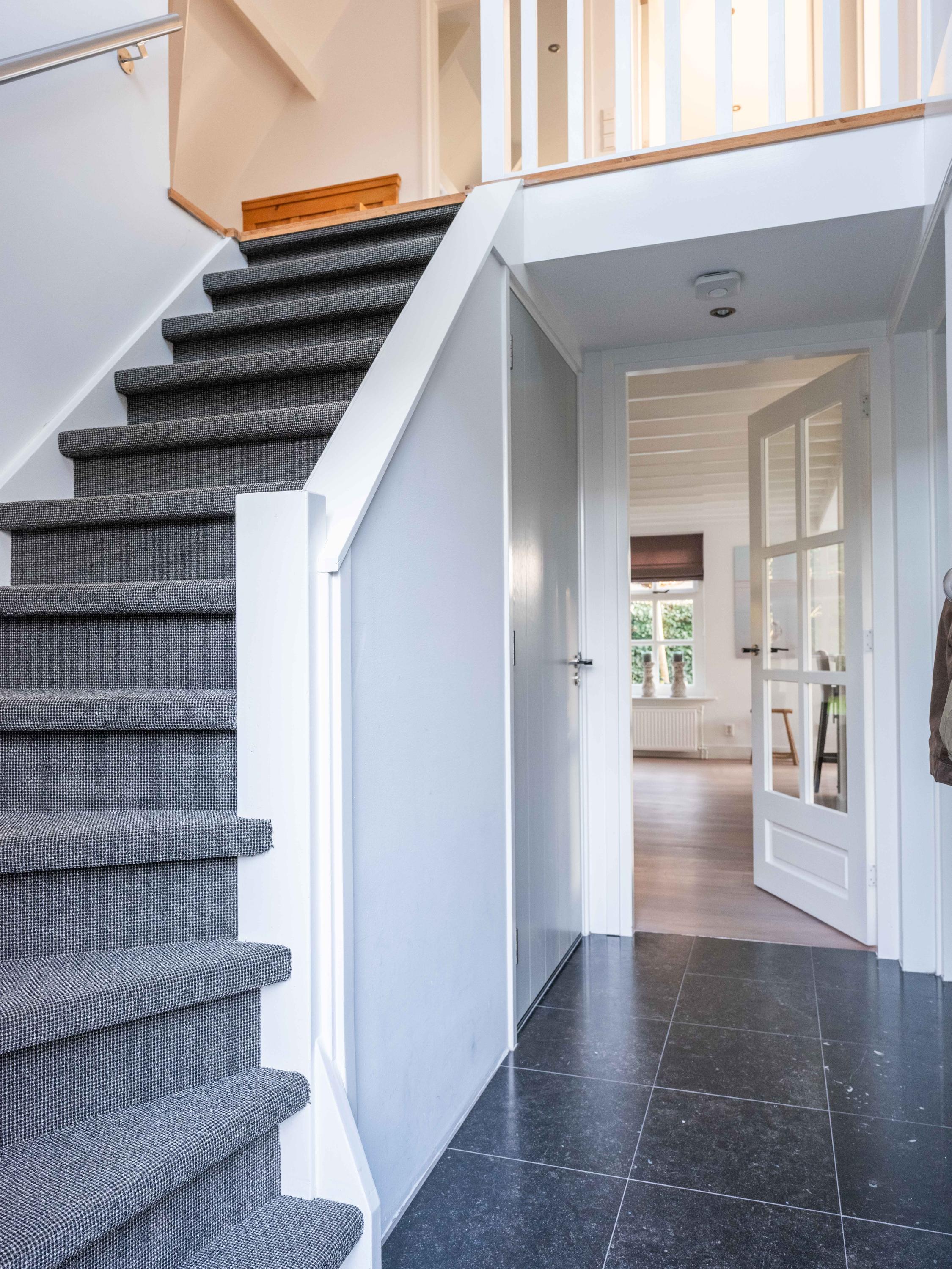 The first floor offers three well-sized bedrooms, each with its own atmosphere and fitted with custom wardrobes. The luxurious bathroom is stylishly finished with natural materials, and here too, quality and tranquility have been chosen. Throughout the house, it is clear that care and taste have been taken to create a harmonious whole.