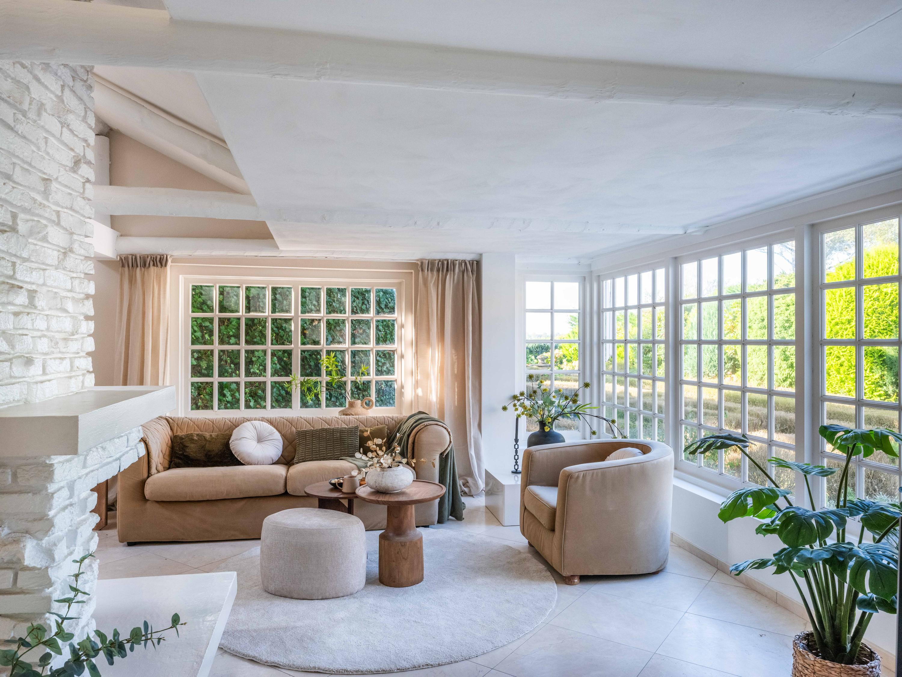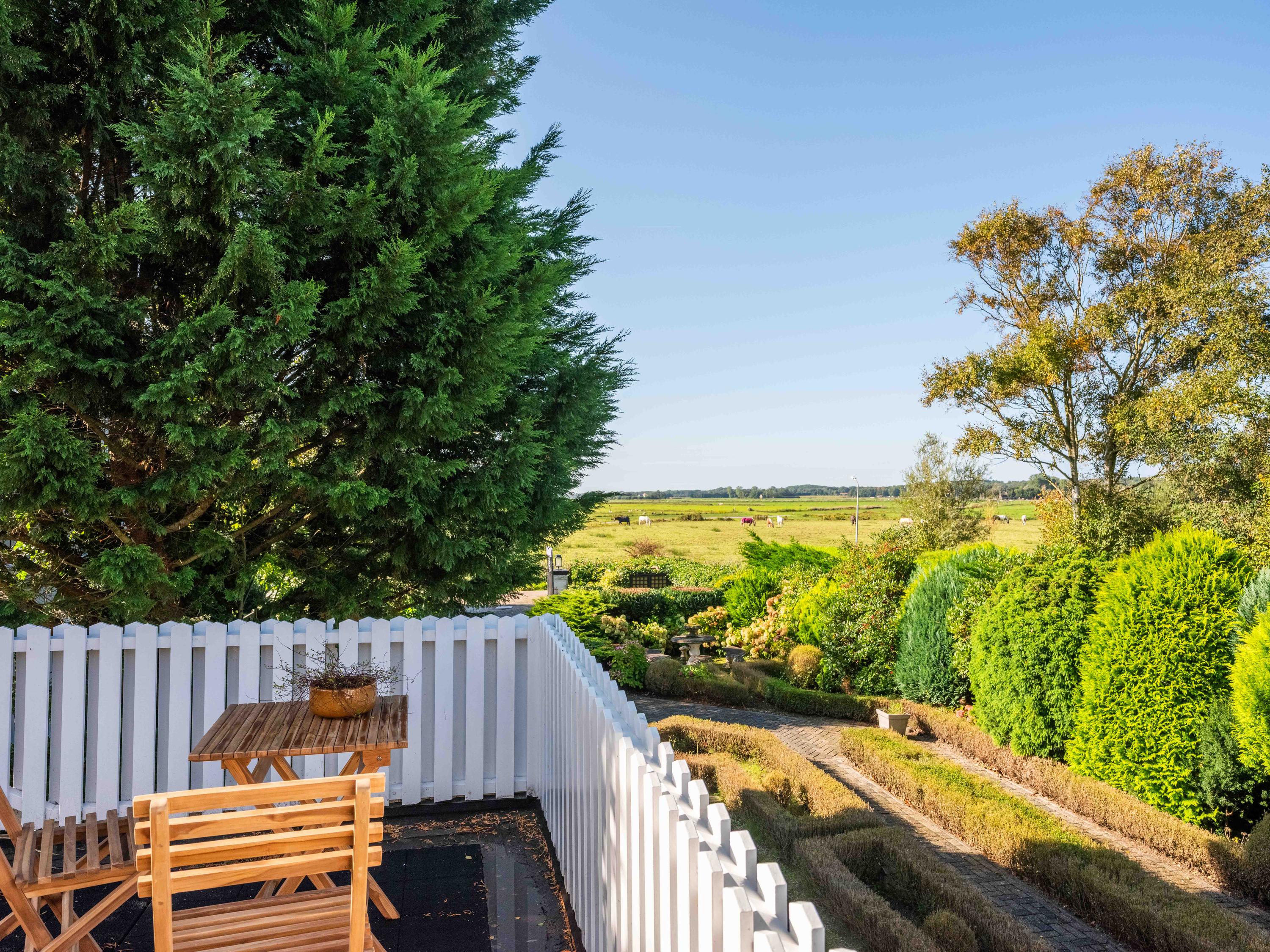 Because the house is at the very back of the plot, the front garden is very generous and offers a surprising amount of privacy. We find a lovely terrace facing south / west, so in the summer months until late in the sun and the sunset can be enjoyed. In front of the plot is parking for several cars and the whole is closed with a gate.