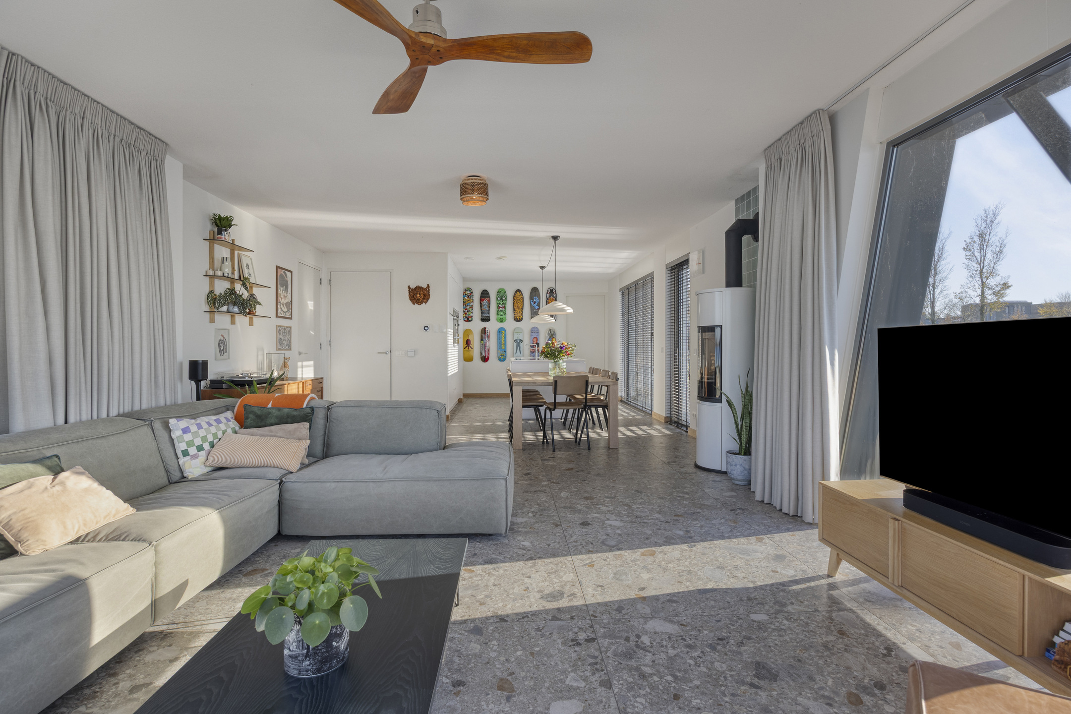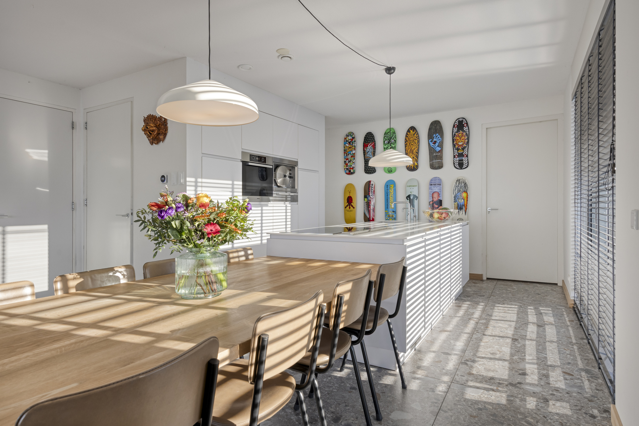 Outdoor living is pure enjoyment. The large deck offers ample space to relax, entertain, or dine with friends while enjoying the evening sun. Want to spend some time on the water? You can step straight into your own boat from the terrace and sail directly onto the Binnenschelde.