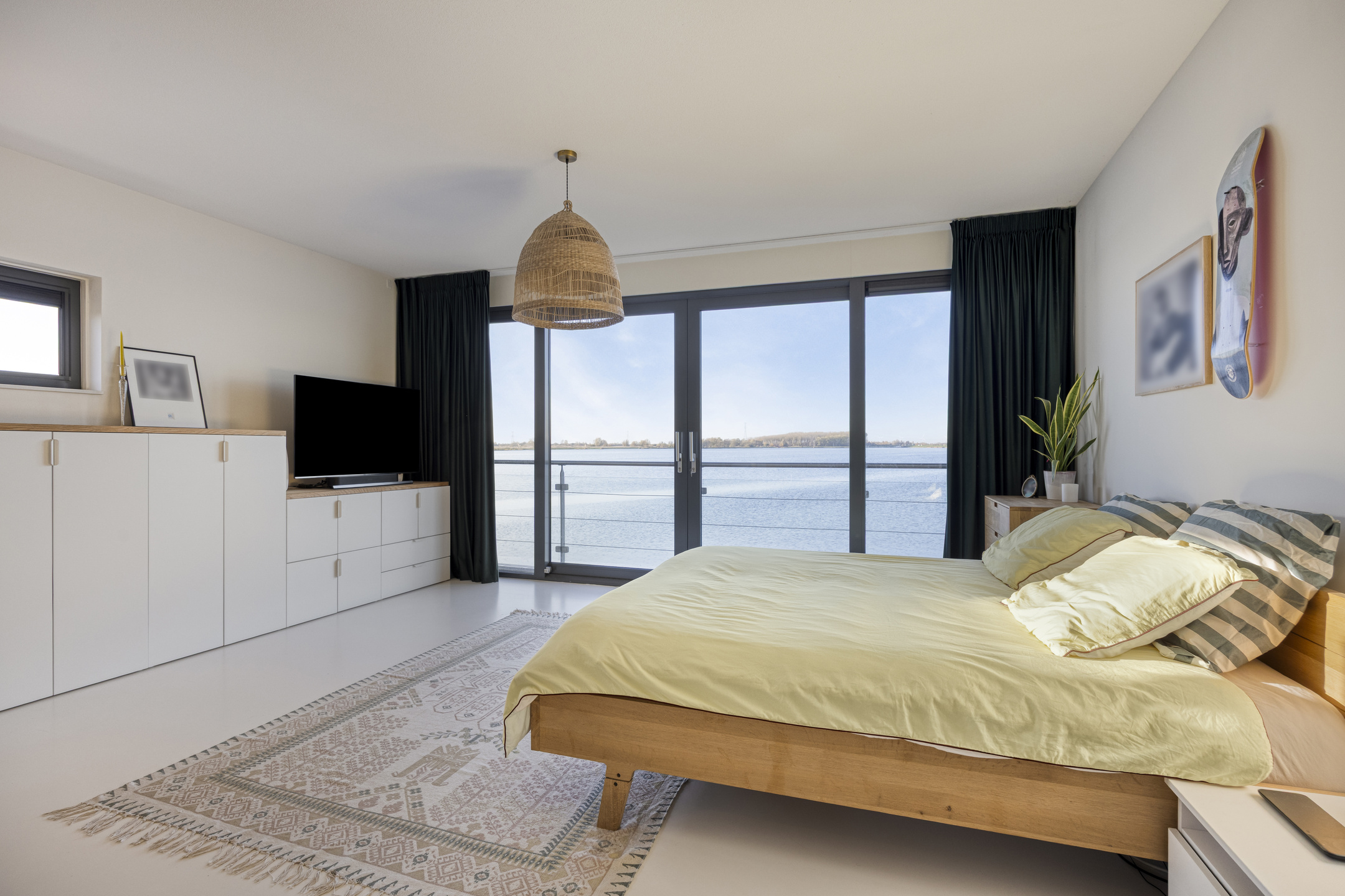 The view is truly unique, and every season has its own charm. Spring and summer bring lively scenes with boats, surfers, and birds. In the evening, the sun sets directly in front of the house—creating breathtaking colours every time. Autumn and winter, with their rain, wind, and cold, offer a completely different but equally stunning landscape. Kitesurfers often put on quite a show. And when temperatures drop low enough, you can even skate straight from your terrace!