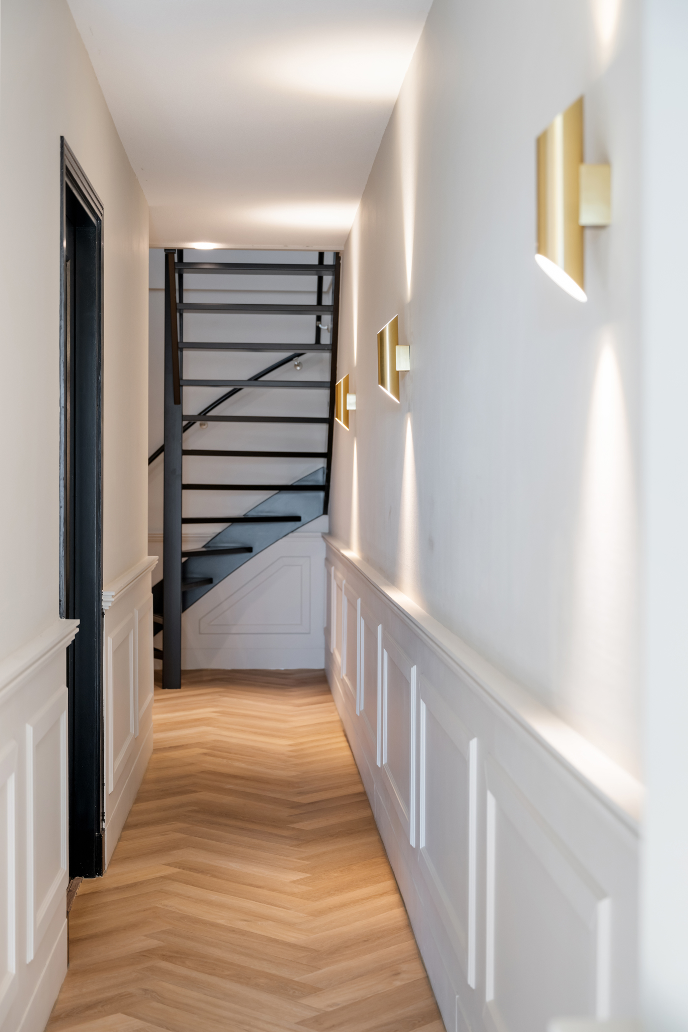 A long hallway provides access to an office space with sliding doors to the rear garden and an additional storage room.