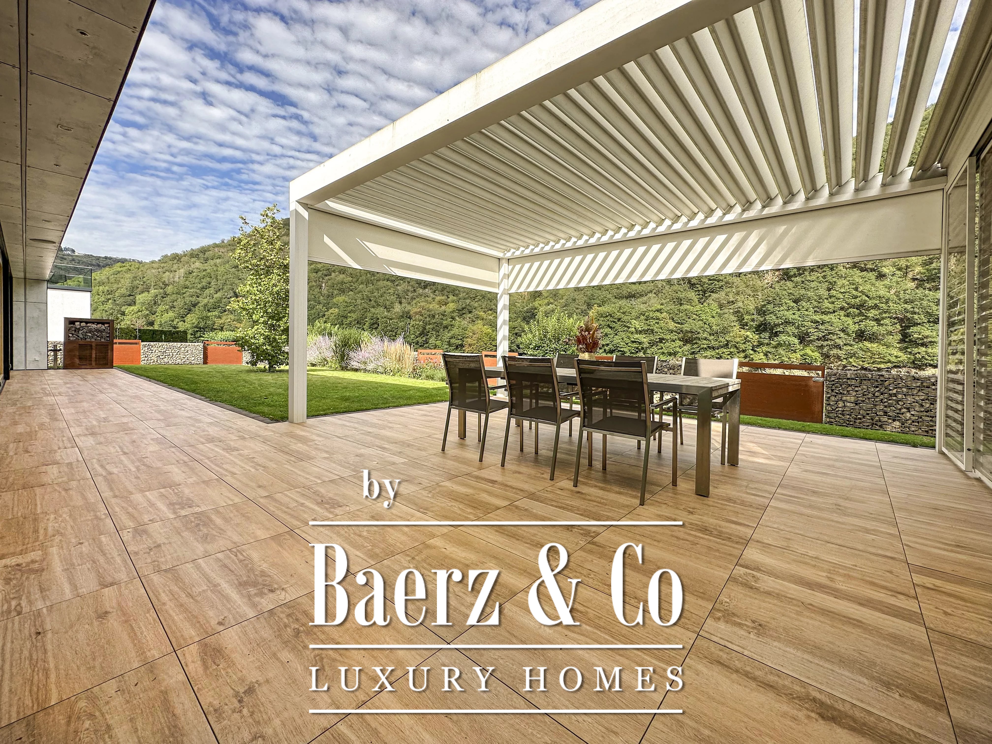 This bungalow Bivels Luxembourg offers a measured approach to riverside living. Arranged across 138 m² and set within a 600 m² plot, the property comprises three bedrooms and six rooms, providing a calm and refined environment. Large sliding windows welcome light and open to river and countryside views that form the rhythm of daily life.