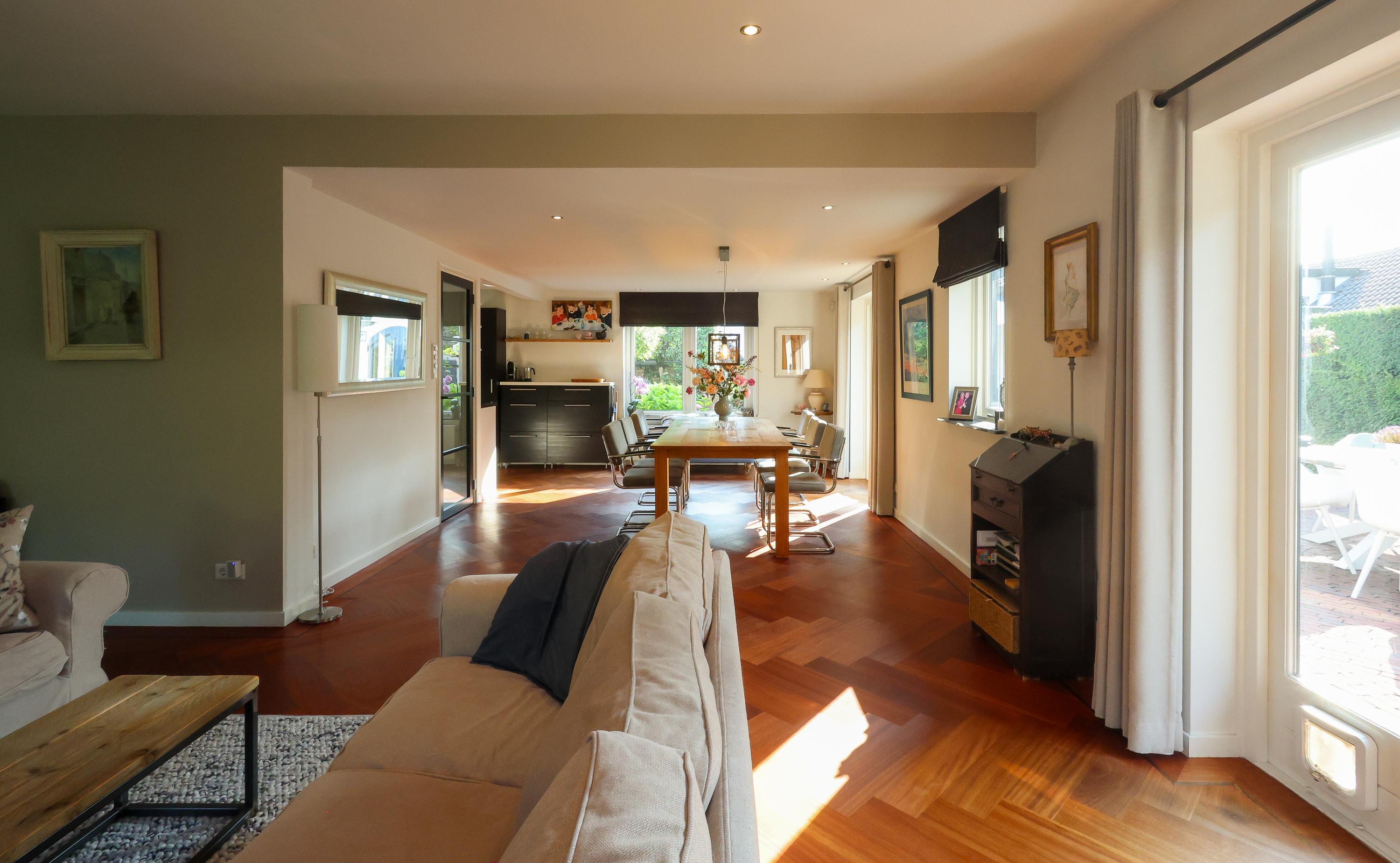 Family home Blaricum blends mid-century charm with thoughtful modernisation on a tranquil, tree-lined avenue. This villa offers 144 m² of living space, where original 1950s character coexists with contemporary comfort. The landscaped 540 m² plot provides privacy and a south-facing garden, enveloping the house in greenery and light.