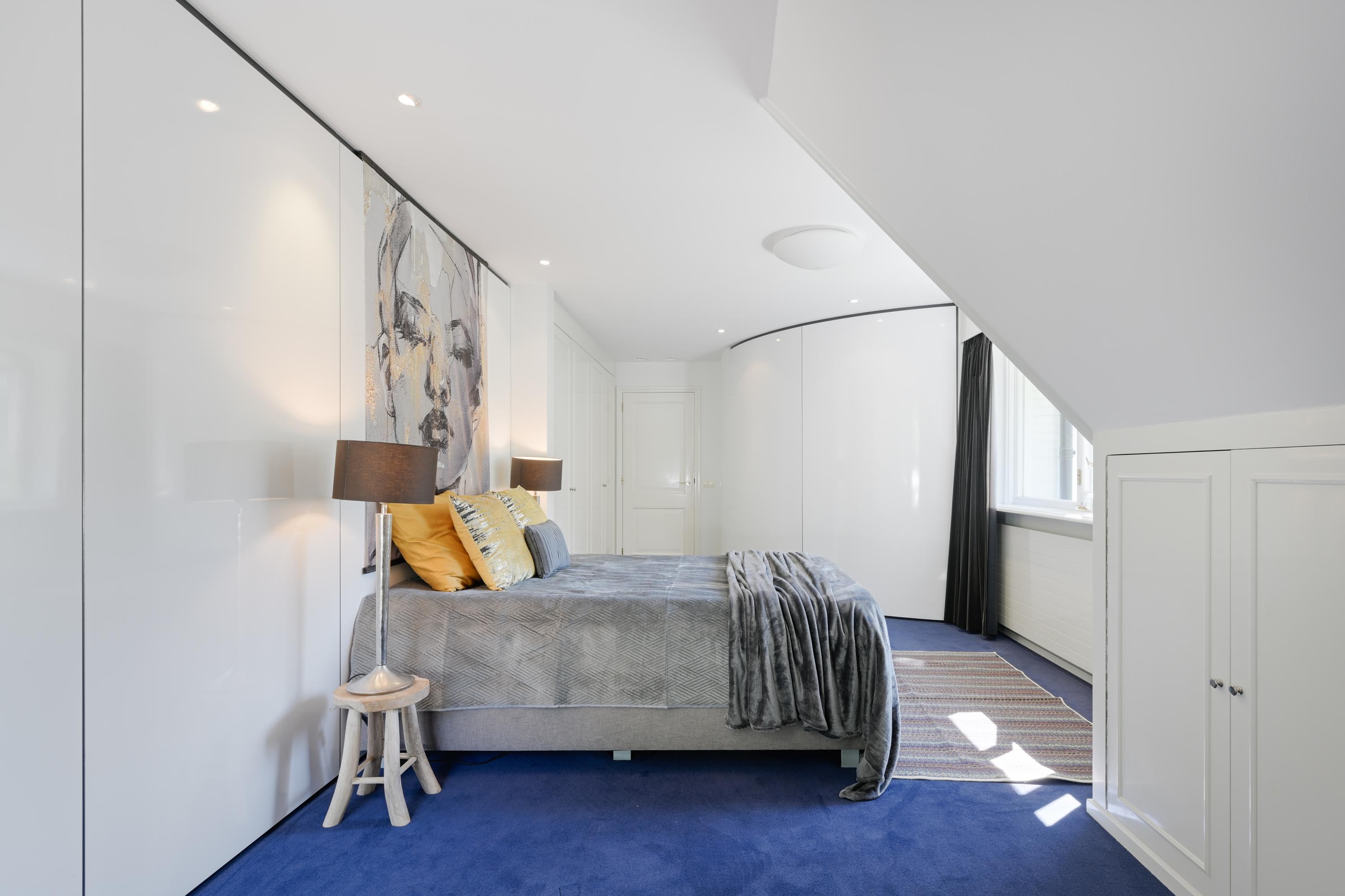 Hallway with staircase and lift, study with round bay window offering beautiful views, spacious bedroom with access to balcony, second large (master) bedroom with sheltered balcony offering beautiful views of the garden, hallway leading to dressing room and en-suite bathroom with bath, shower, double washbasin, urinal and toilet, underfloor heating. Third and fourth bedroom, both with dormer windows and both with access to a bathroom with bath, shower, toilet, urinal, washbasin and underfloor heating.