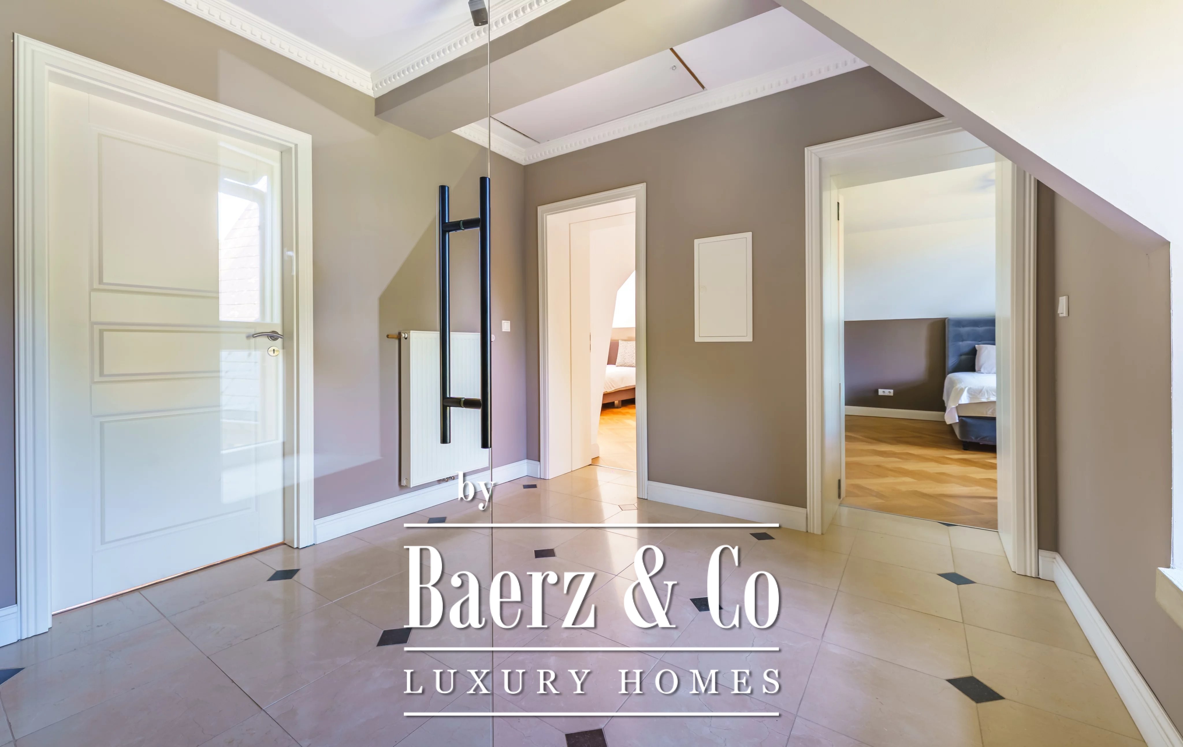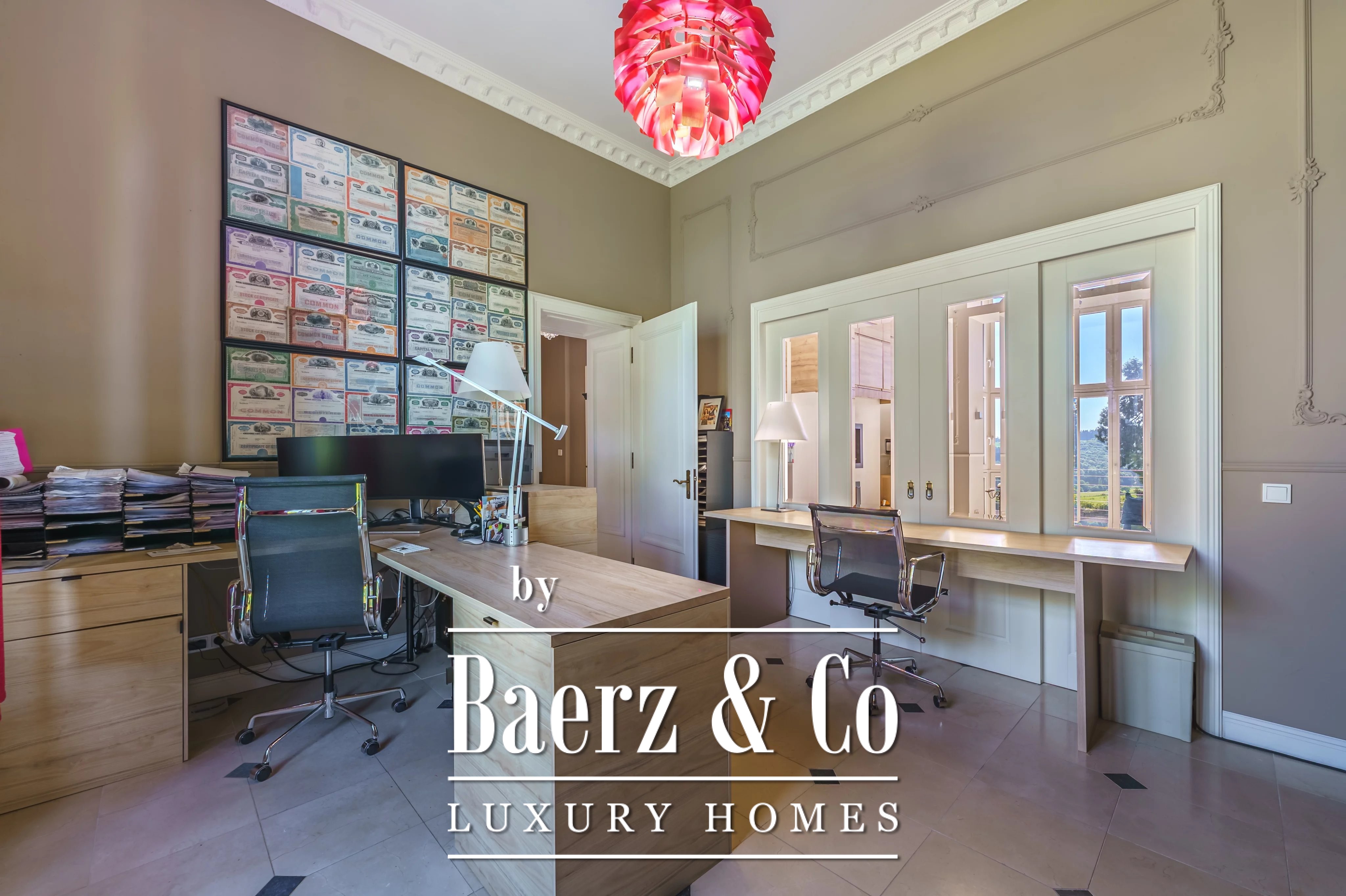 Office Boevange stands as an early twentieth-century manor house reimagined for contemporary professional life. The property, originally built in 1909 and fully renovated in 2022, merges the dignified presence of its historic form with the comfort and utility demanded by modern standards. Surrounded by 1.2 hectares of tranquil grounds and offering 500 m² total surface, including 375 m² of living space, this office invites both focus and calm through its spacious 4-meter-high ceilings and thoughtfully arranged interiors.