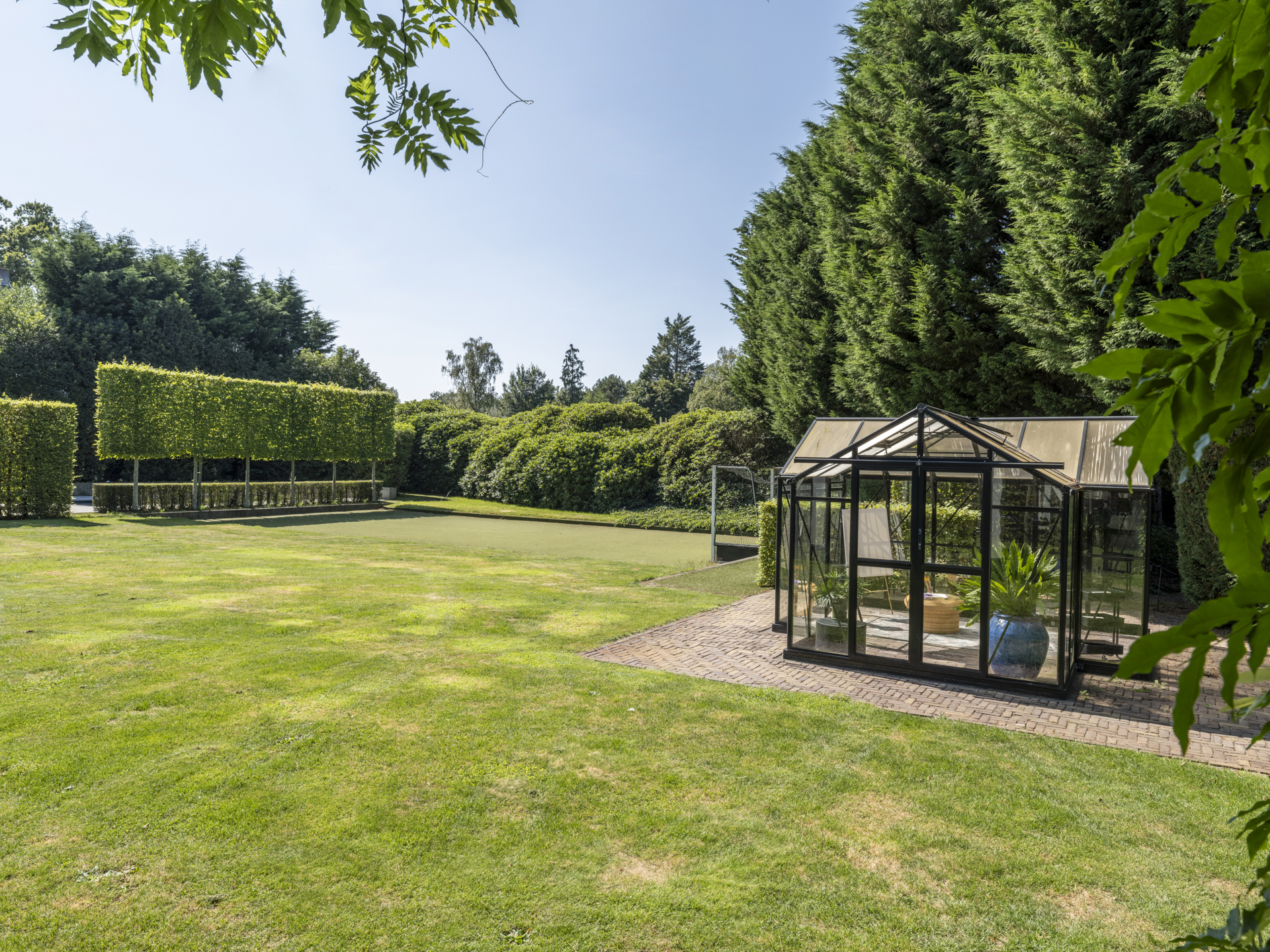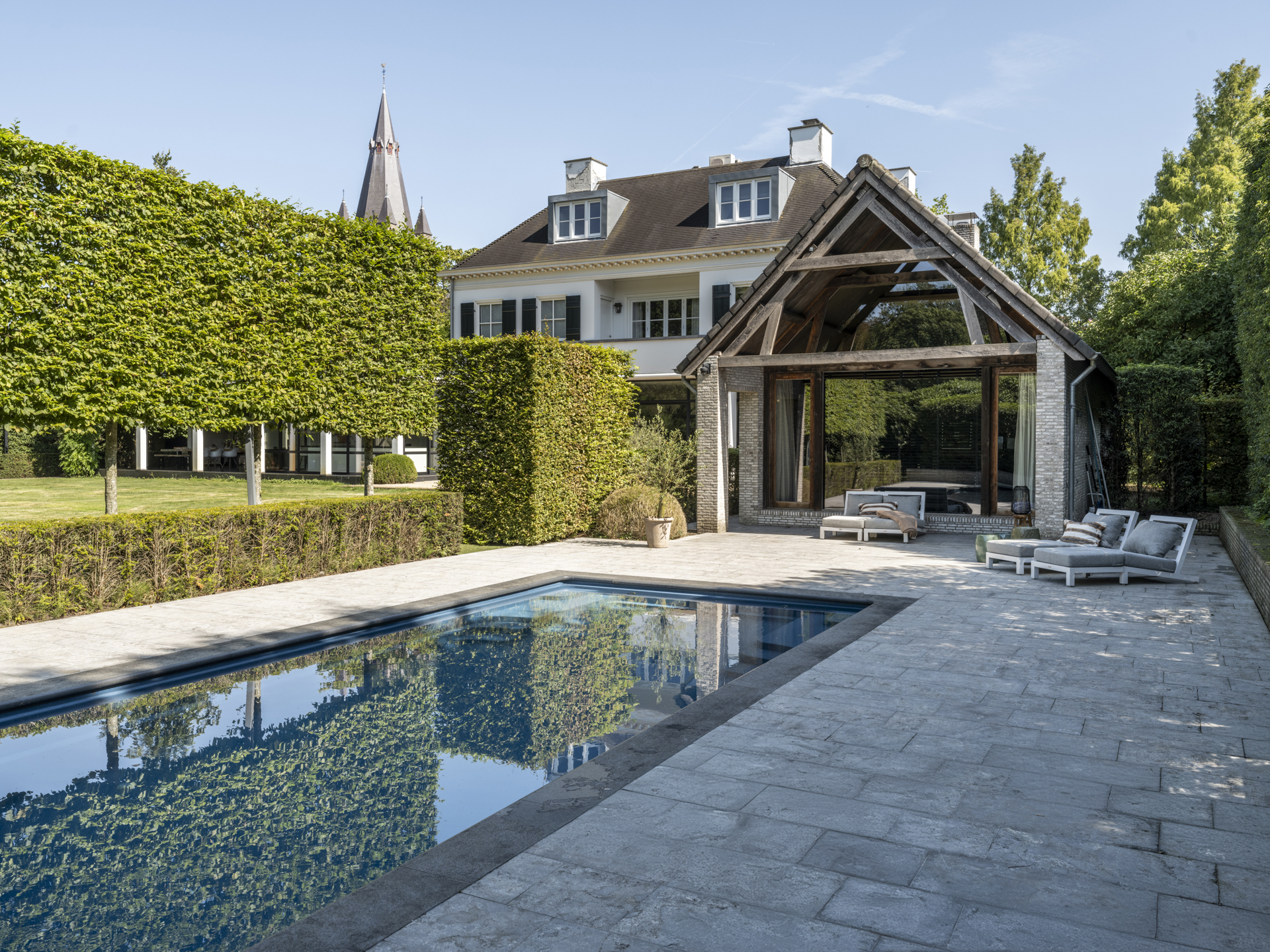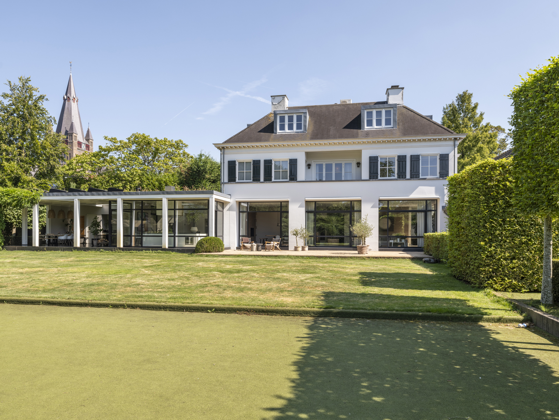 Villa Breda sits discreetly within walking distance of Ginnekenmarkt, the Mastbos, and Markdal, embodying understated grandeur through a fusion of classical and modern architecture. This 850 m² villa for sale in Breda, constructed in 2011, is nestled behind gates in a private courtyard, shaded by plane trees, where a carriage house accommodates four cars and a wooden shed completes the arrival sequence. On a 3,188 m² secured plot, the home offers an atmosphere of cultivated seclusion, heightened by a lush garden, a private swimming pool, and a synthetic grass hockey field, seamlessly blending outdoor leisure with elegant living.