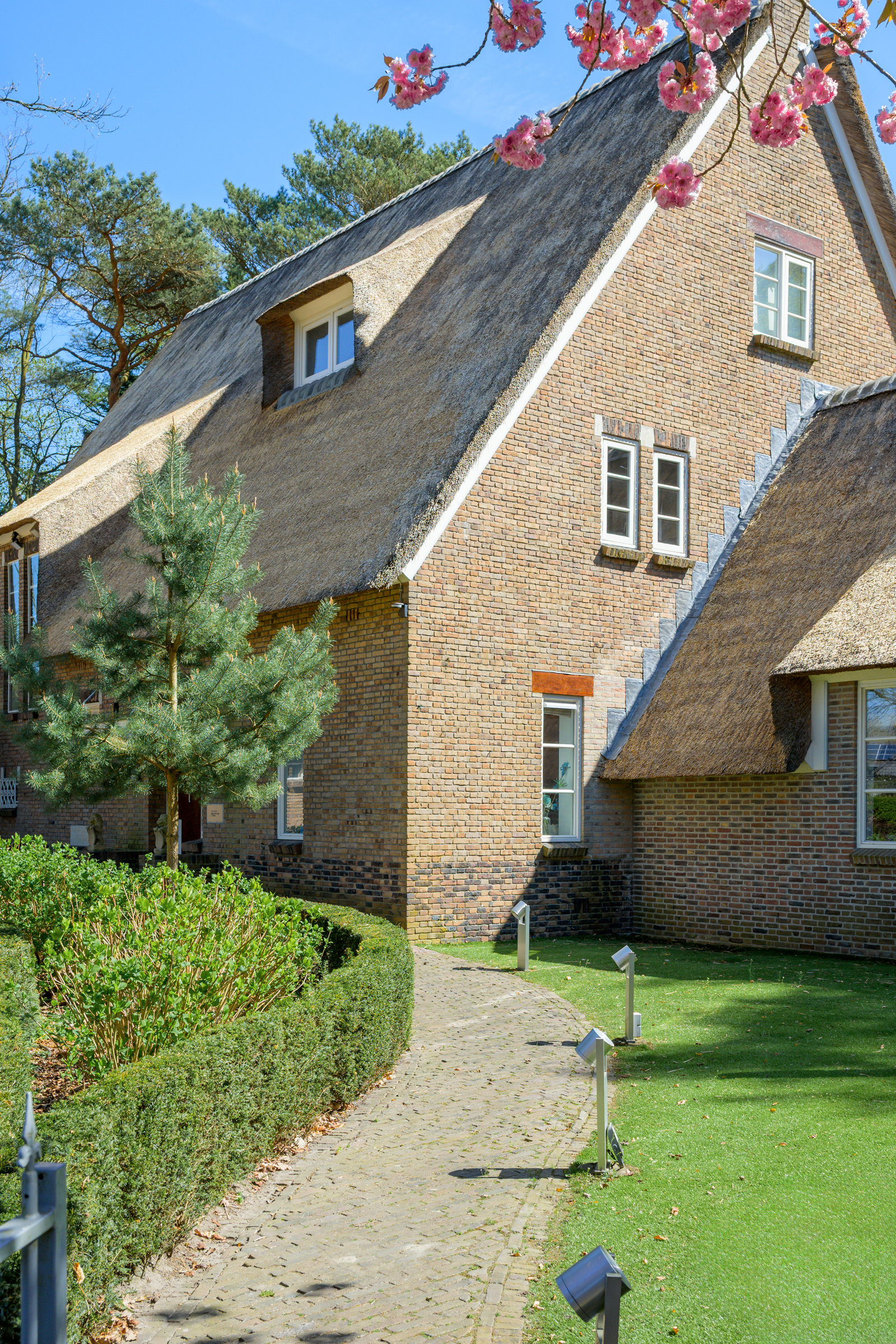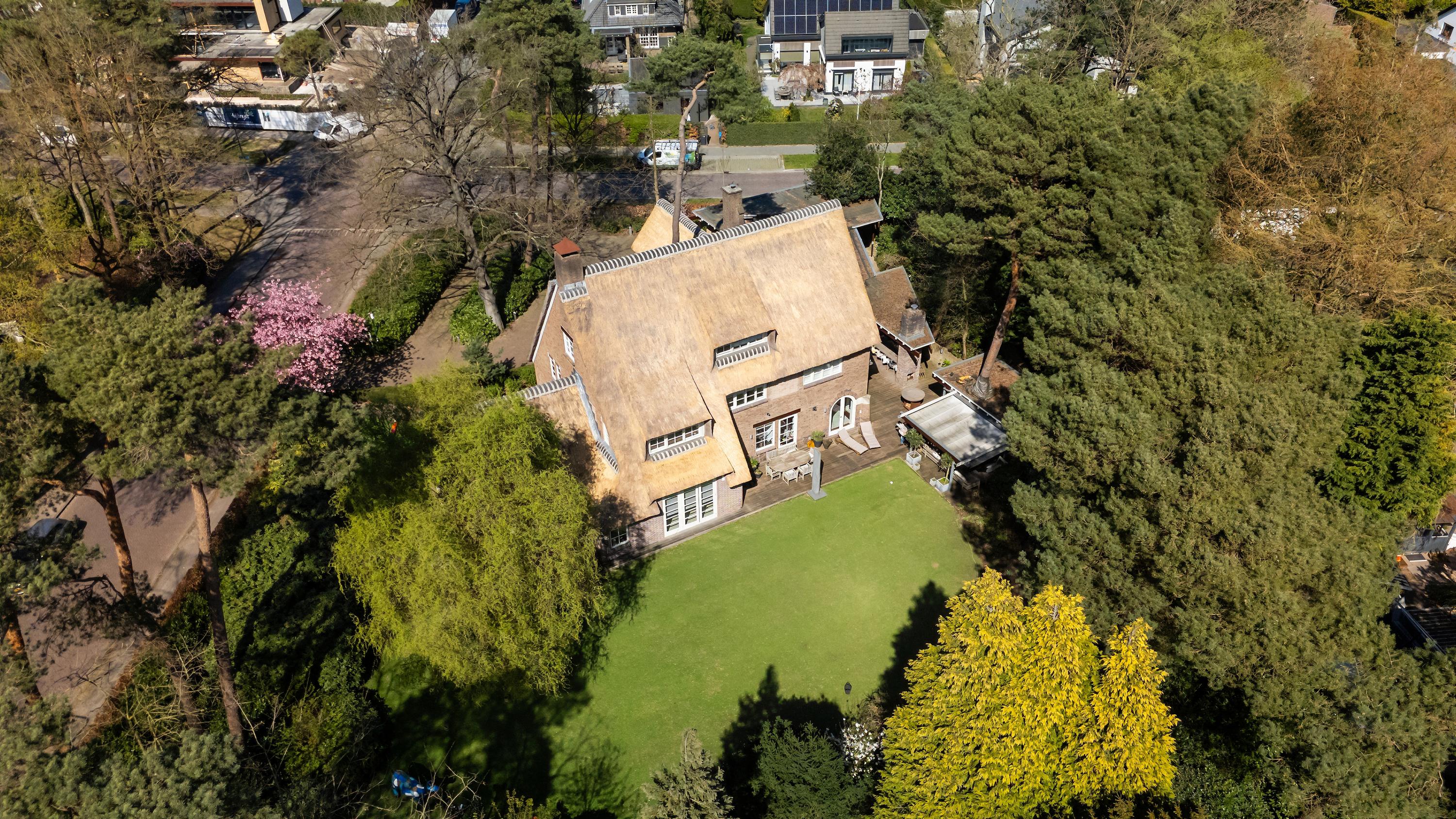 Villa Breda is an expansive country house set on 2,830 m² of wooded land in the stately Ruitersbos district, where privacy meets quiet grandeur. This villa offers 521 m² of living space, seamlessly blending original 1932 details with modern craftsmanship. The thatched roof and stained glass articulate its heritage, while extensive renovations support contemporary comfort.